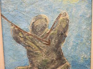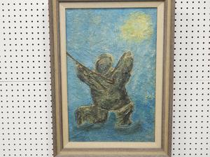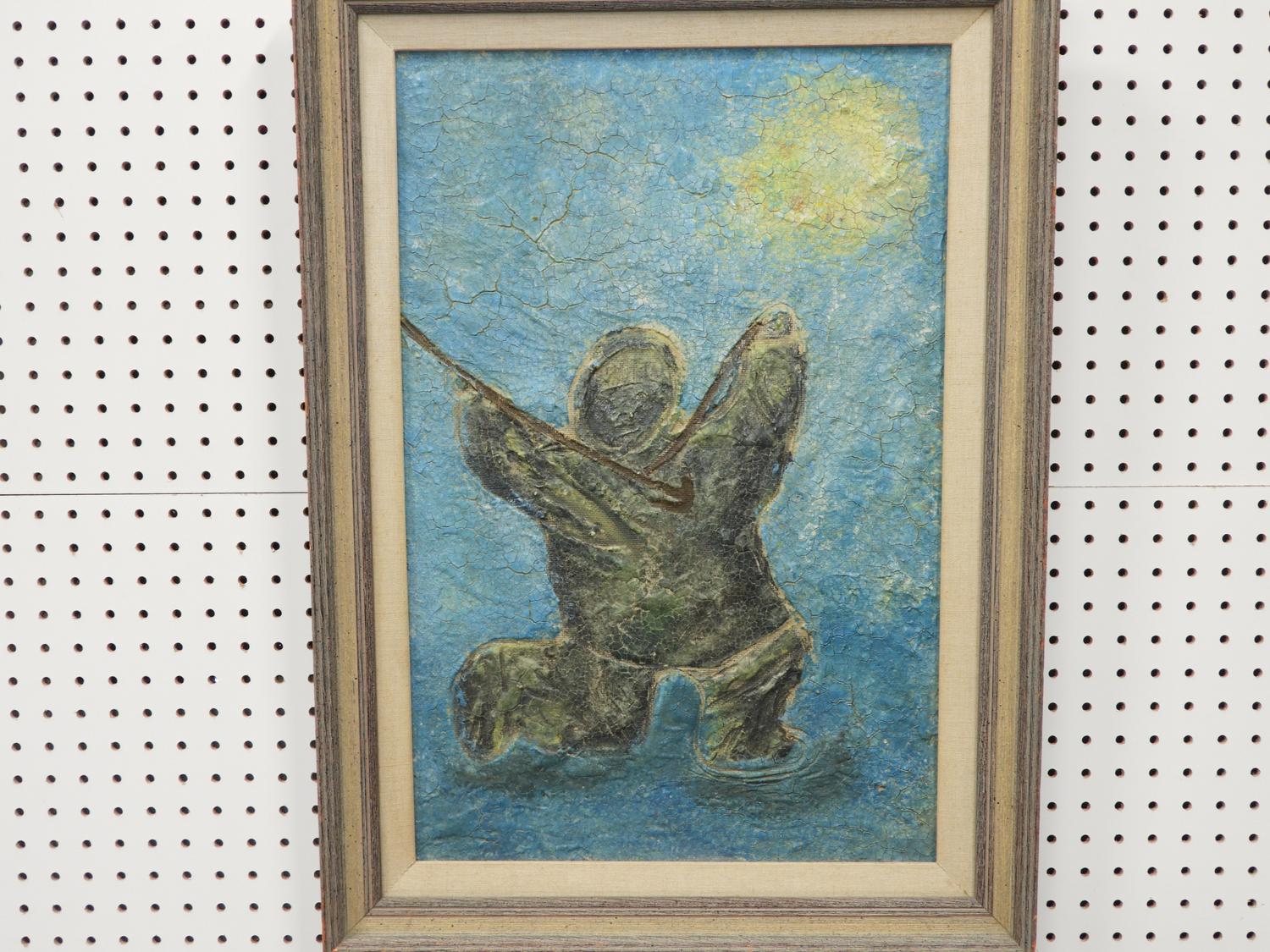 canadian school egonostic on board, 23" x 16', "inuit hunter"