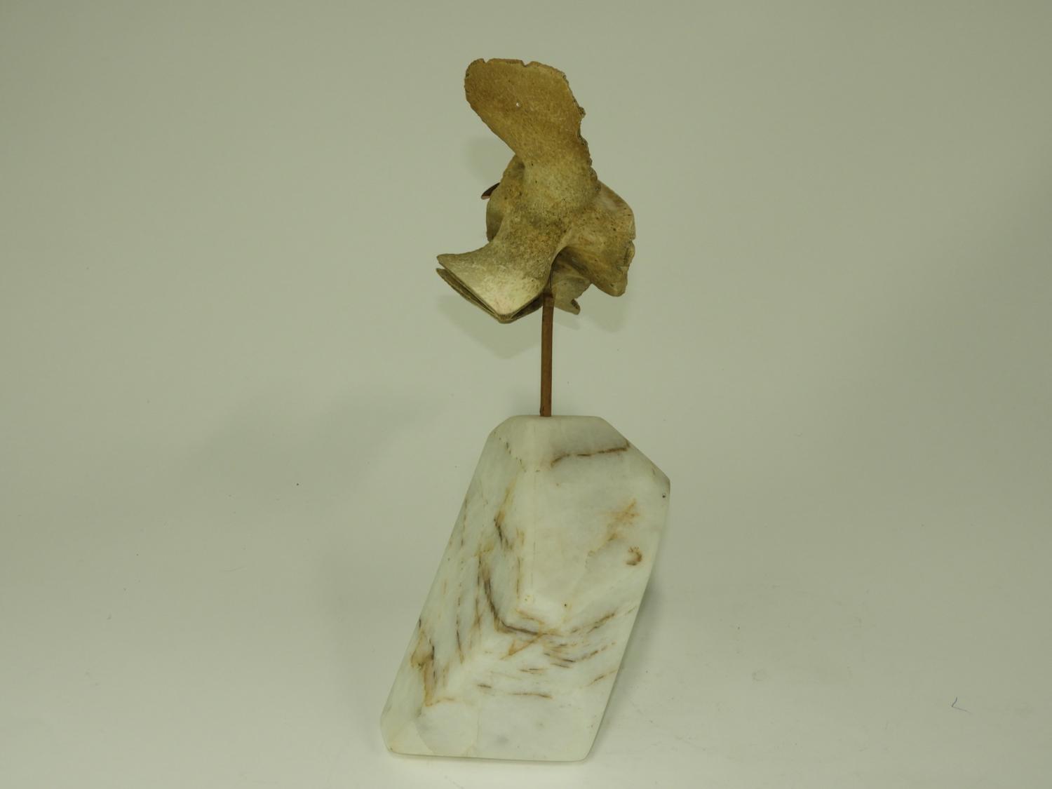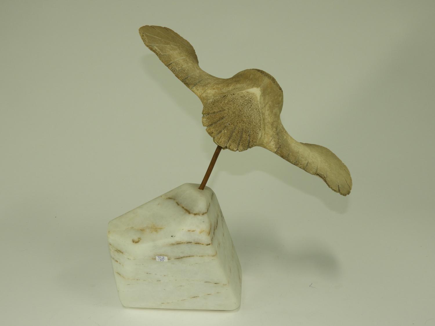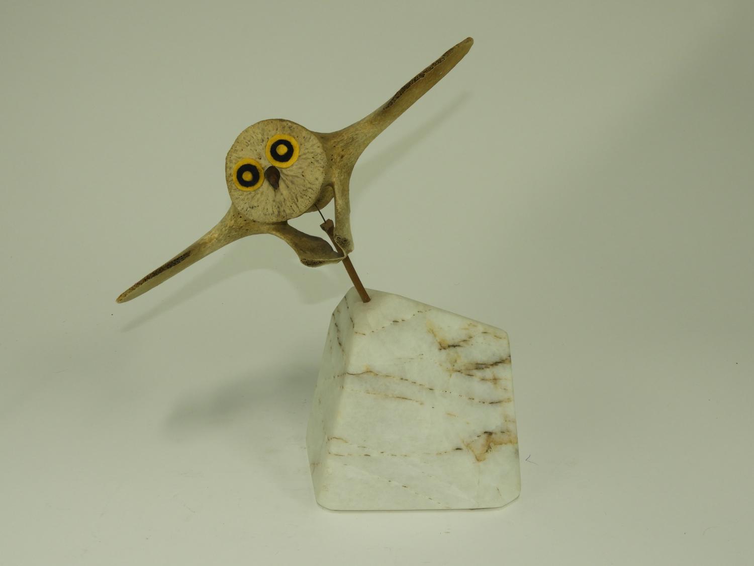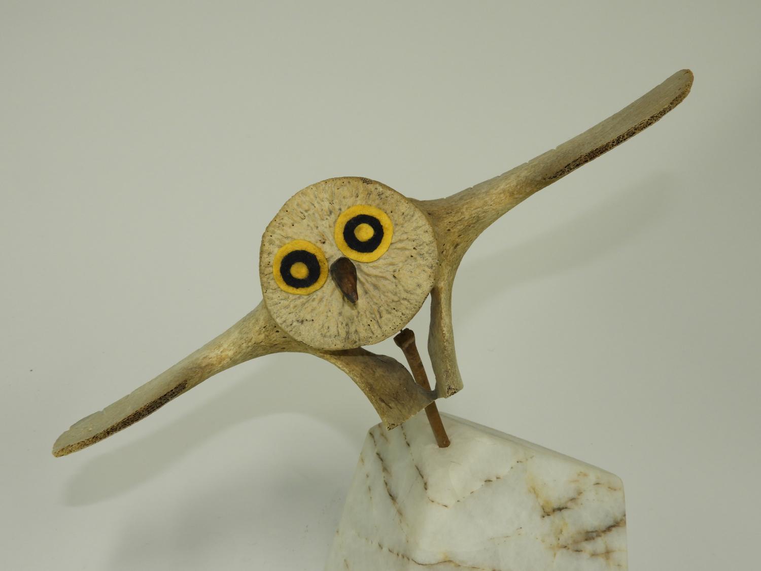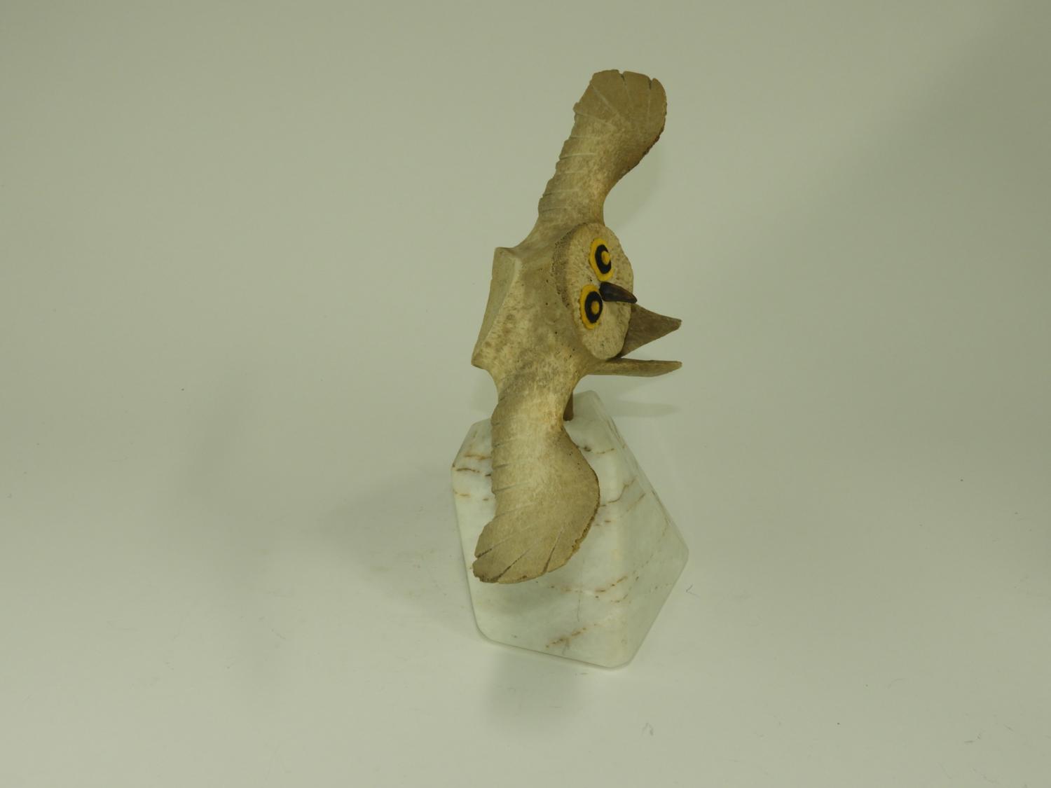 carved whale bone owl on stand, , ht. 17"