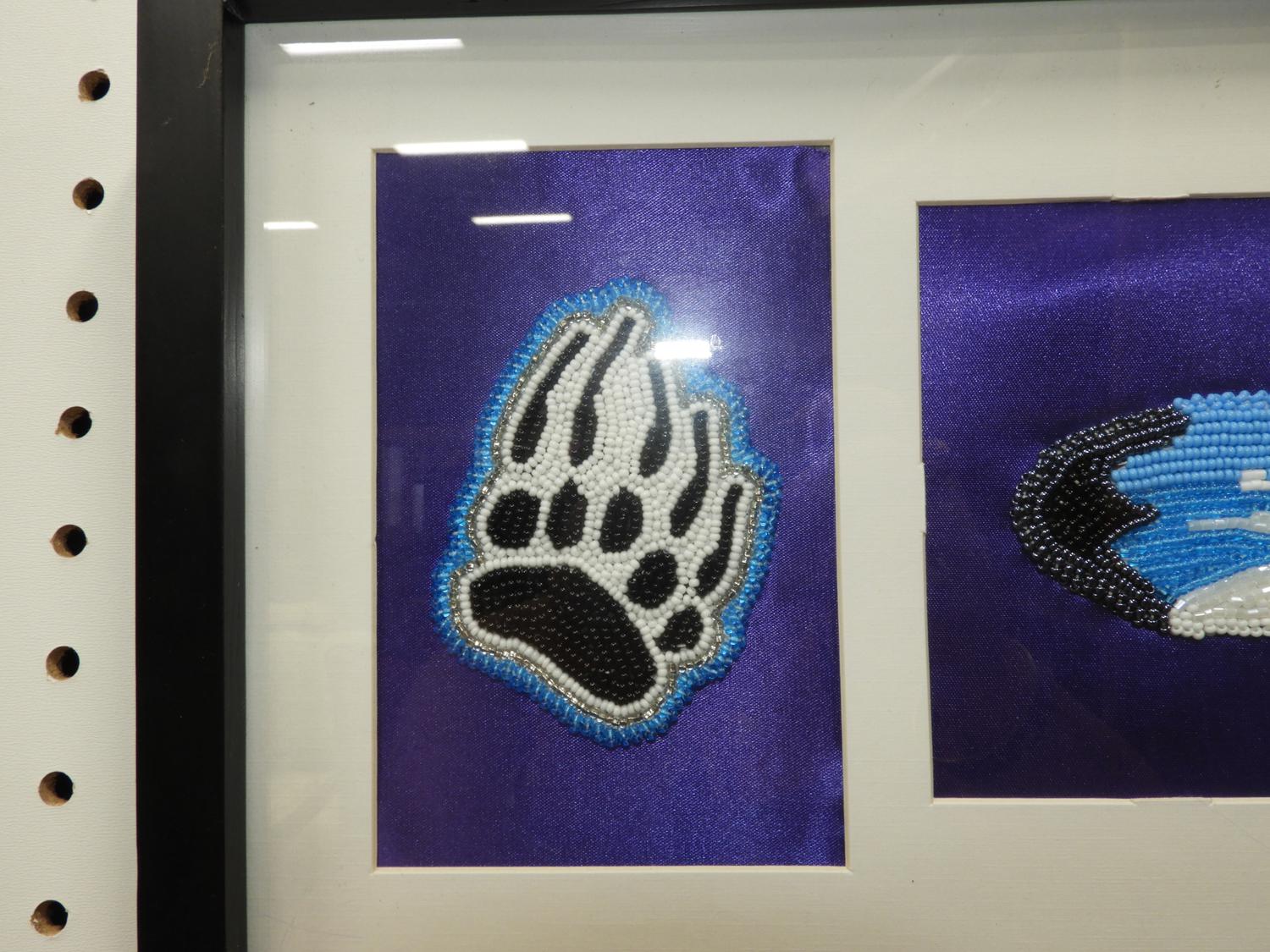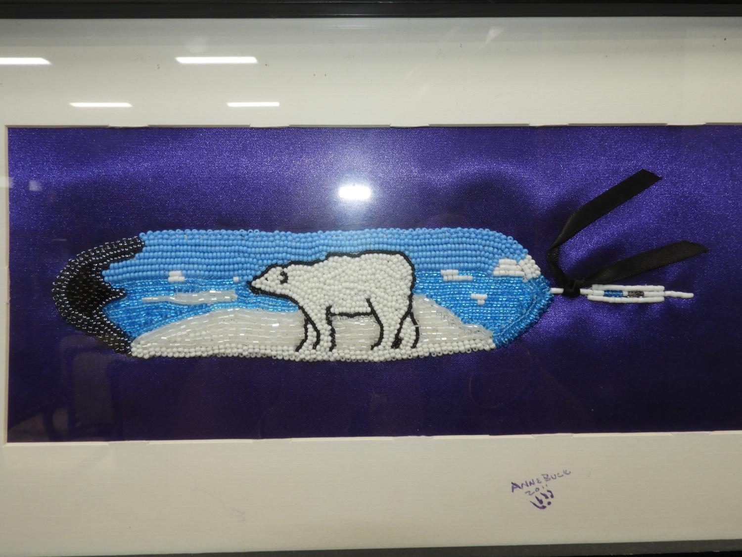 anne buck, d. 2011, beaded dyptych, 5" x 15", "bew"