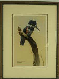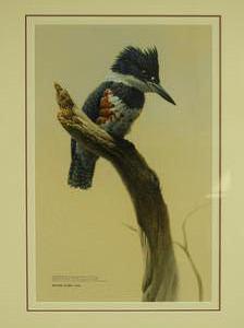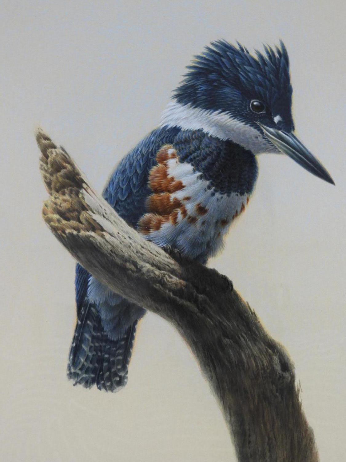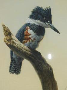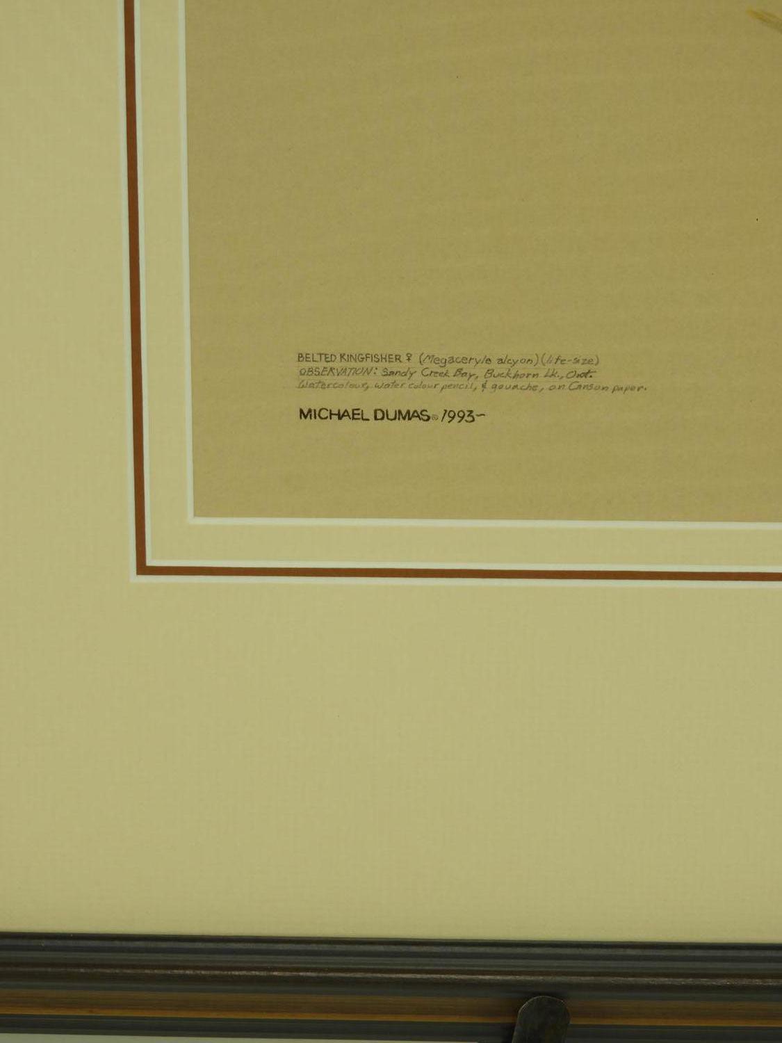 michael dumas, b. 1950, watercolor, d. 1993, 15" x 10", "belted kingfisher"