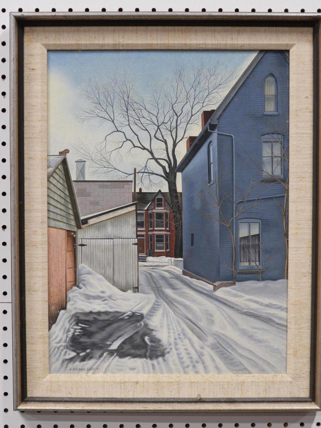 a. nelson dancy, tempura, 20" x 15", "back alley in cabbagetown #3".