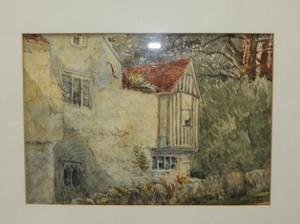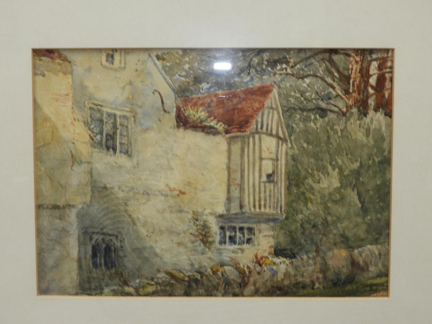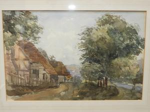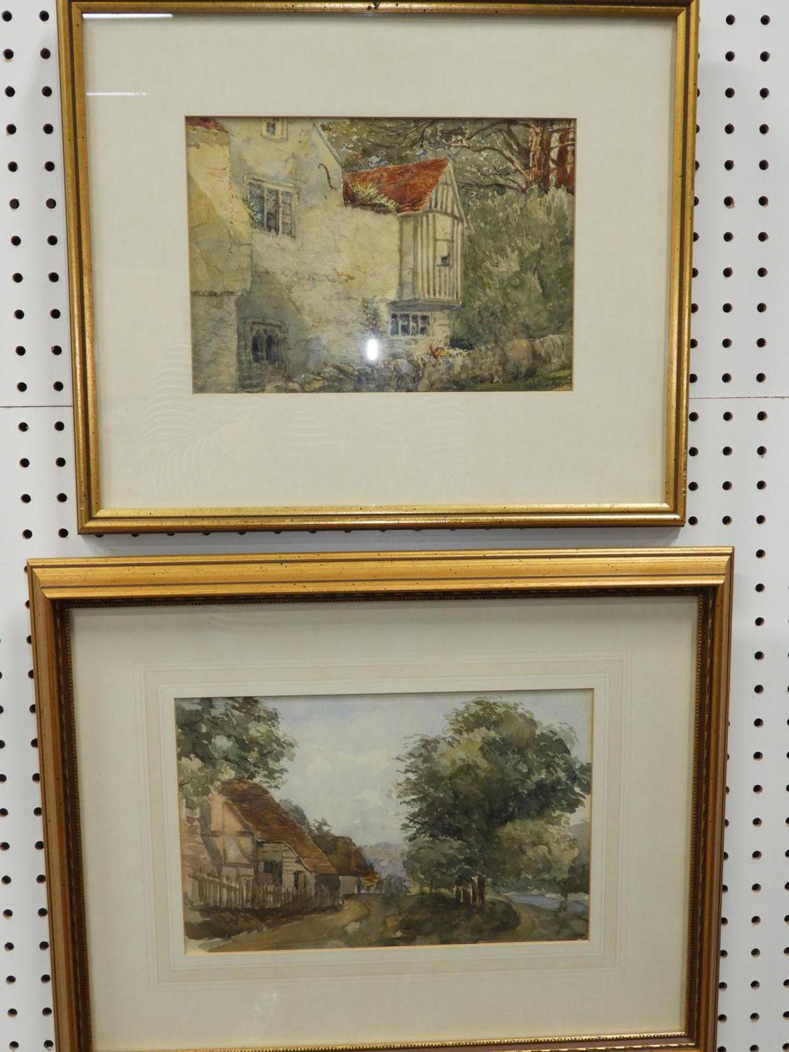 early 20th century english school two water colors, 7 1/2" x 10", "architectural & rural road scene".
