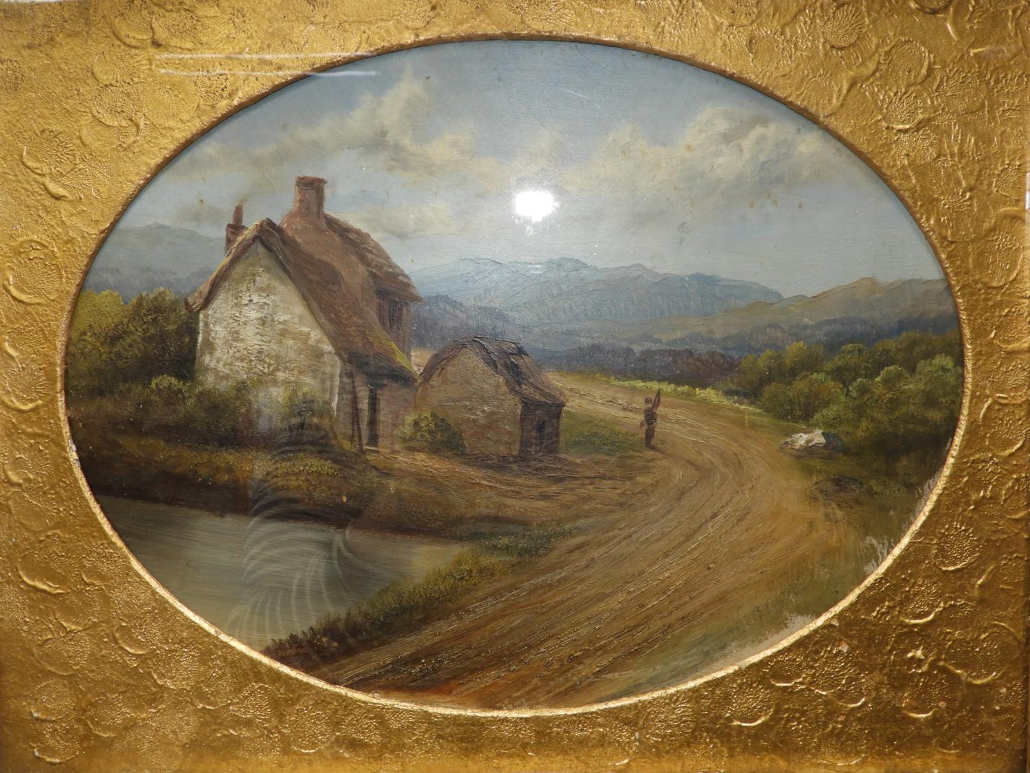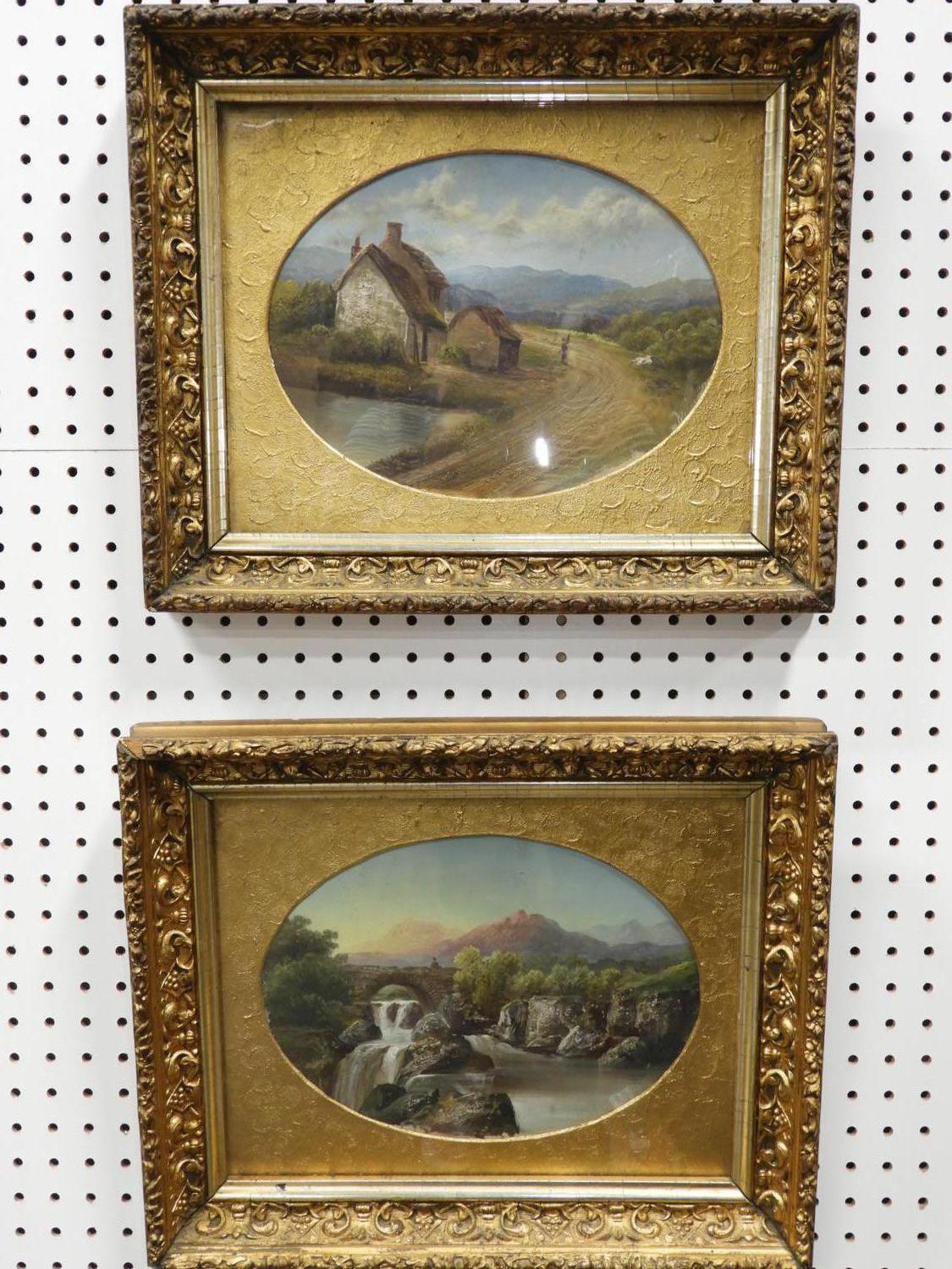 19th century english school pair of oil on board, 9" x 12", "scenes of wales", 19th century frames.