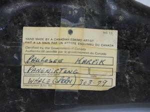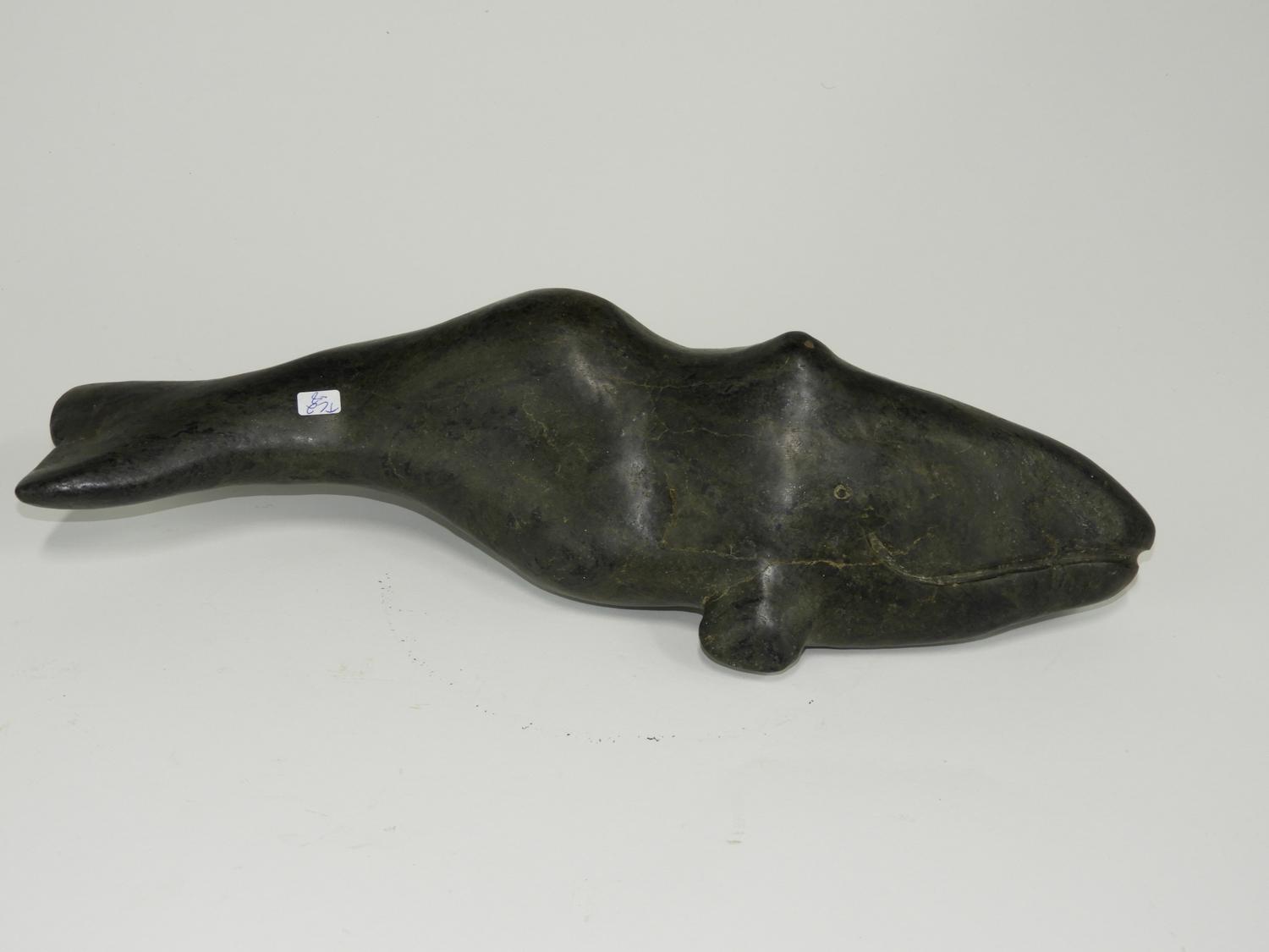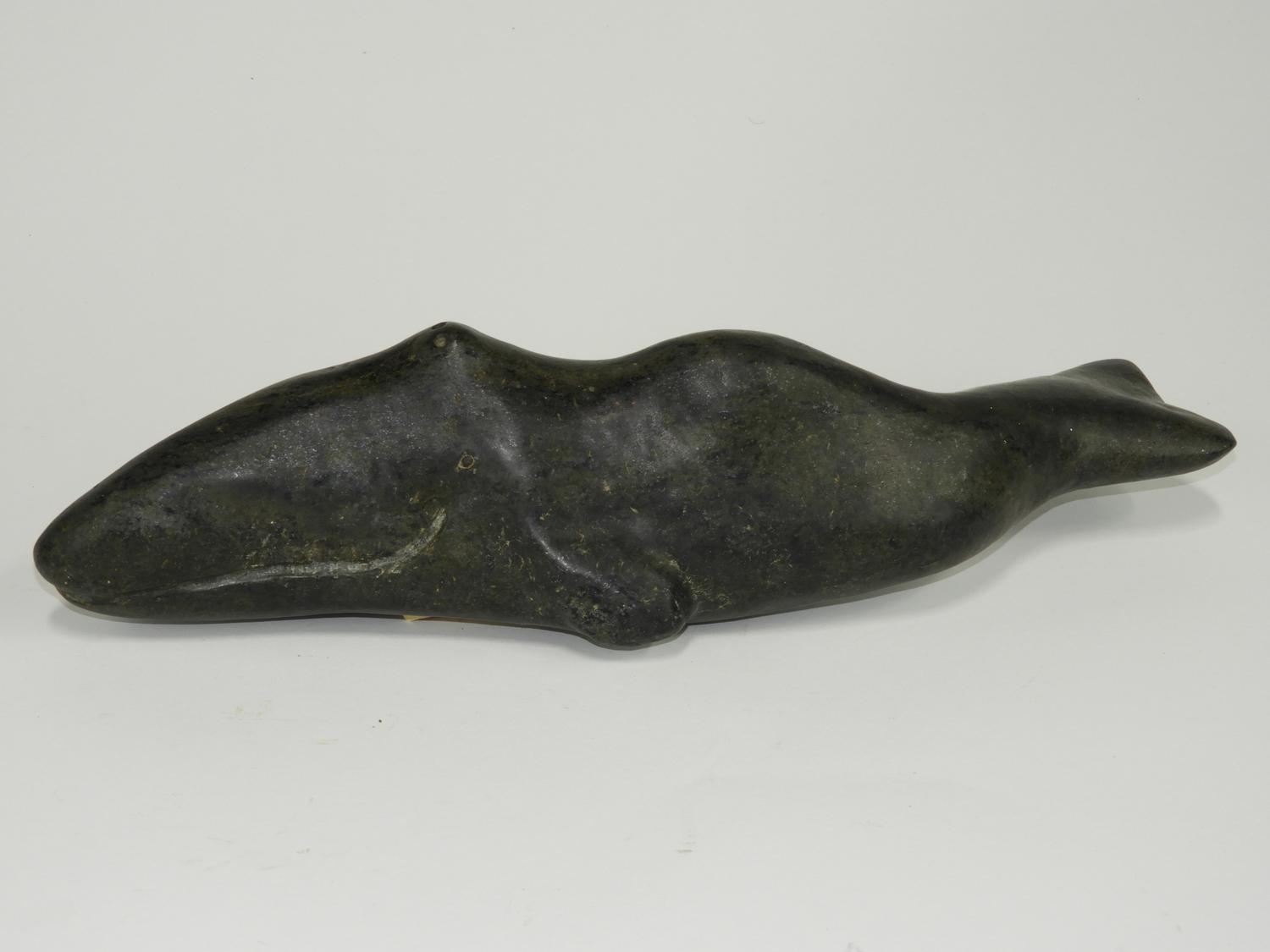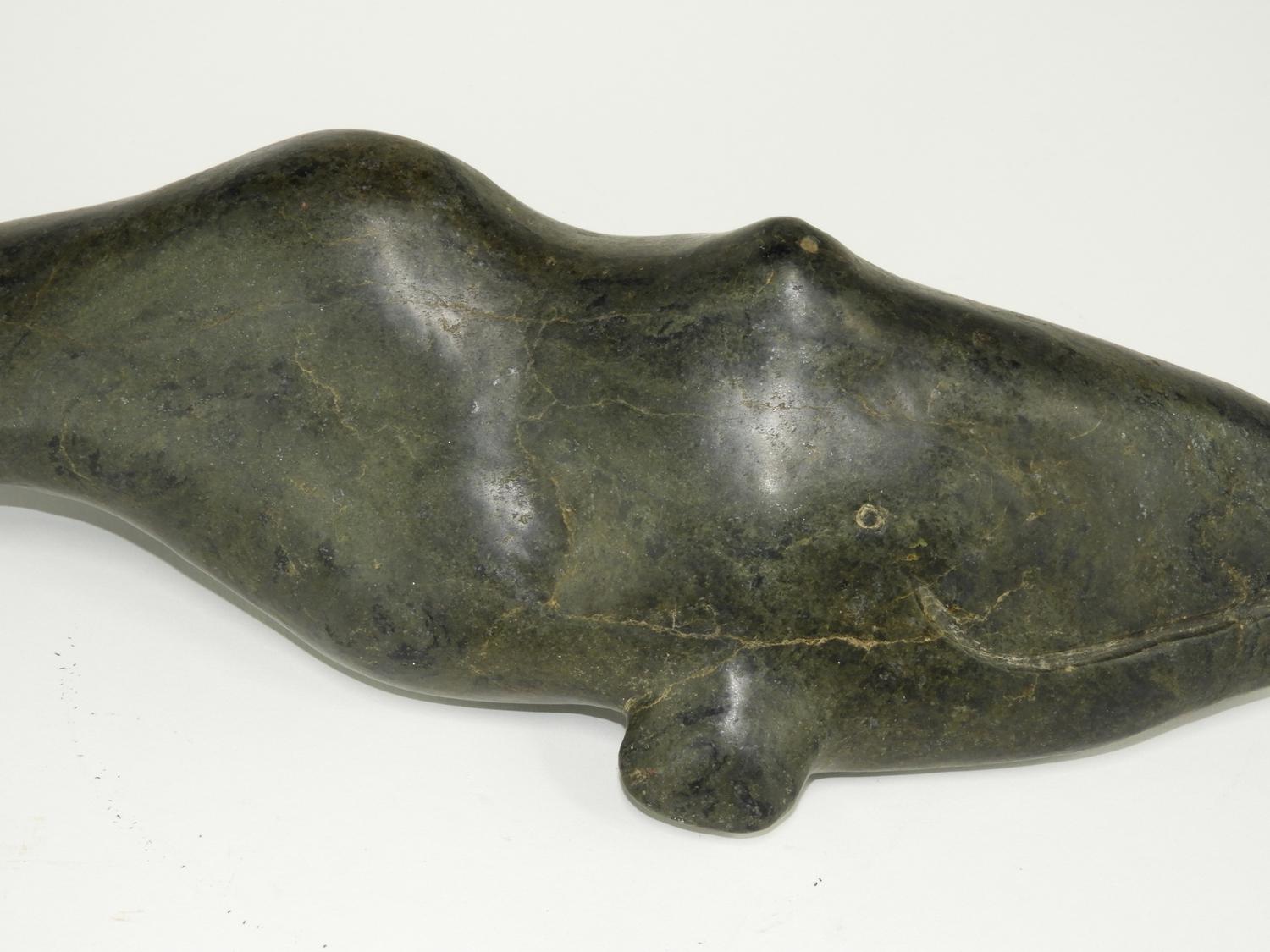 inuit stone whale paulosee karpik, 18" x 4 1/2"