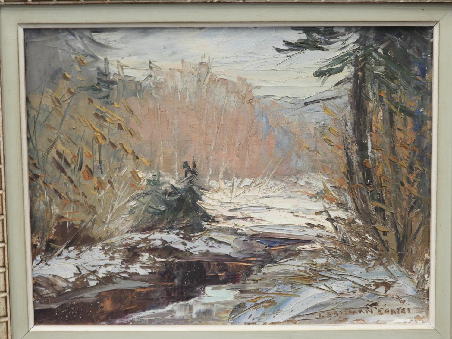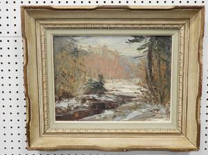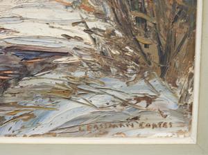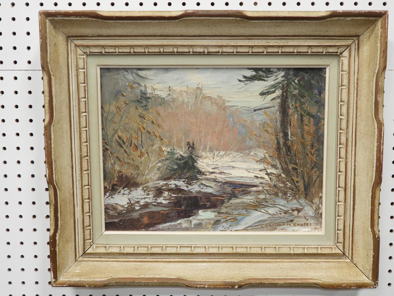 lois eastman coates, oil on board, 12" x 16", winter scene".