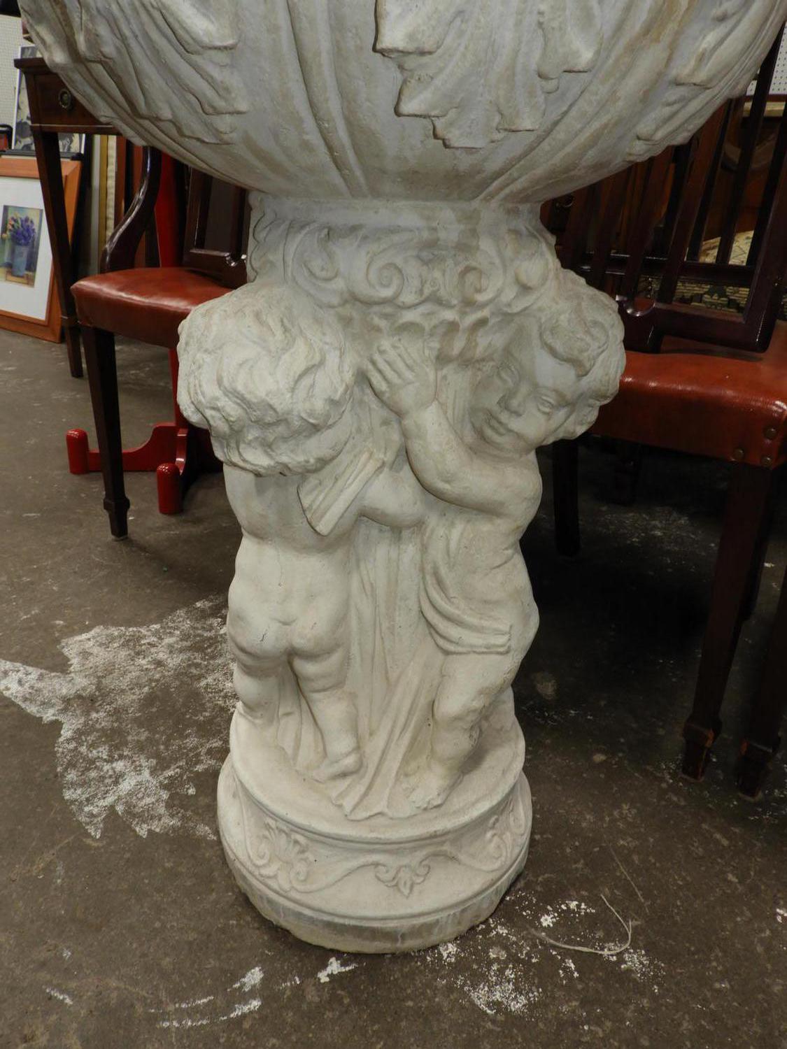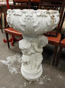 cast cement cherub pedestal garden planter/bird bath, ht. 32".