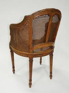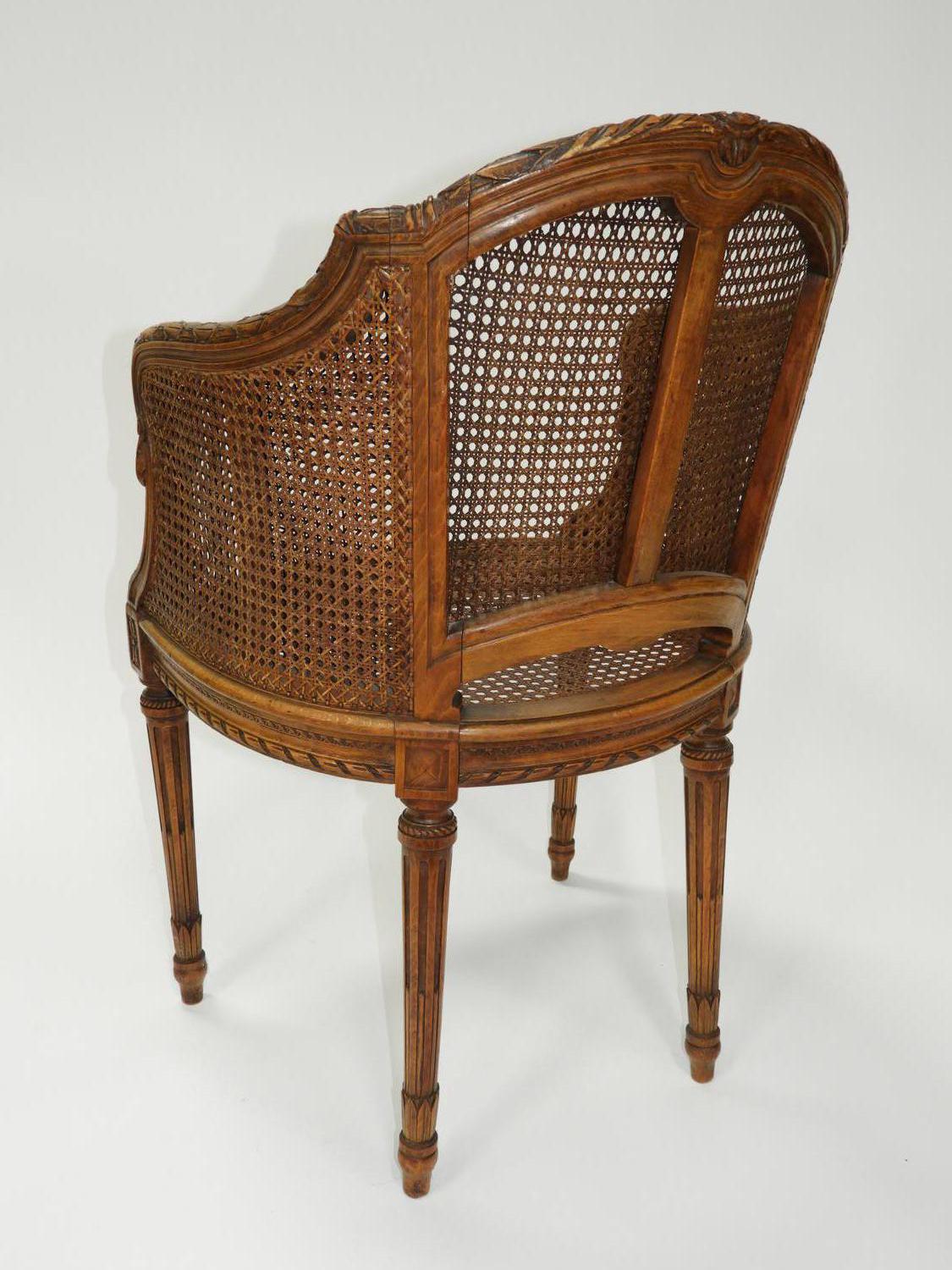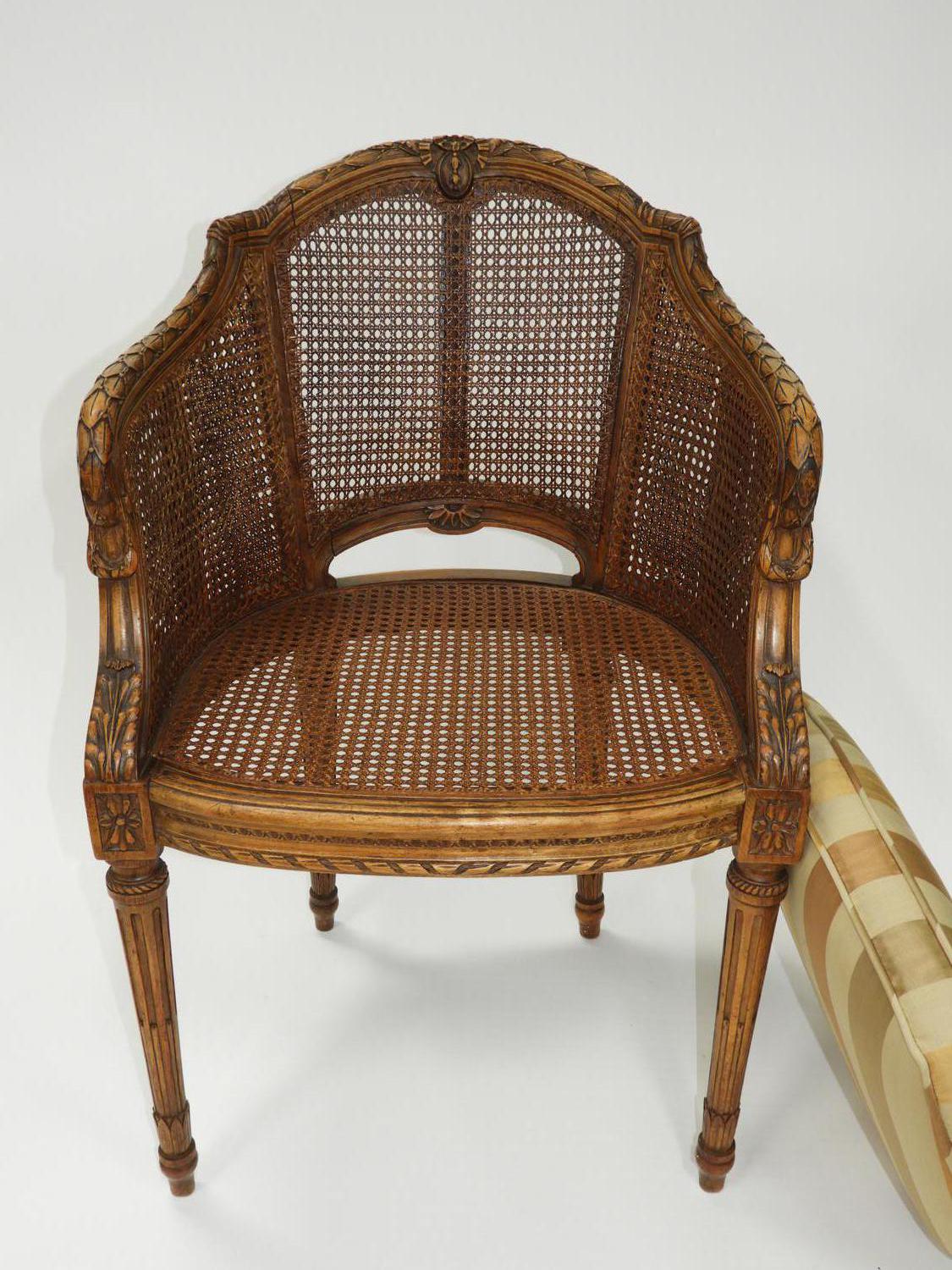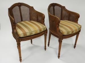 pair of louis xvi style caned back armchairs.