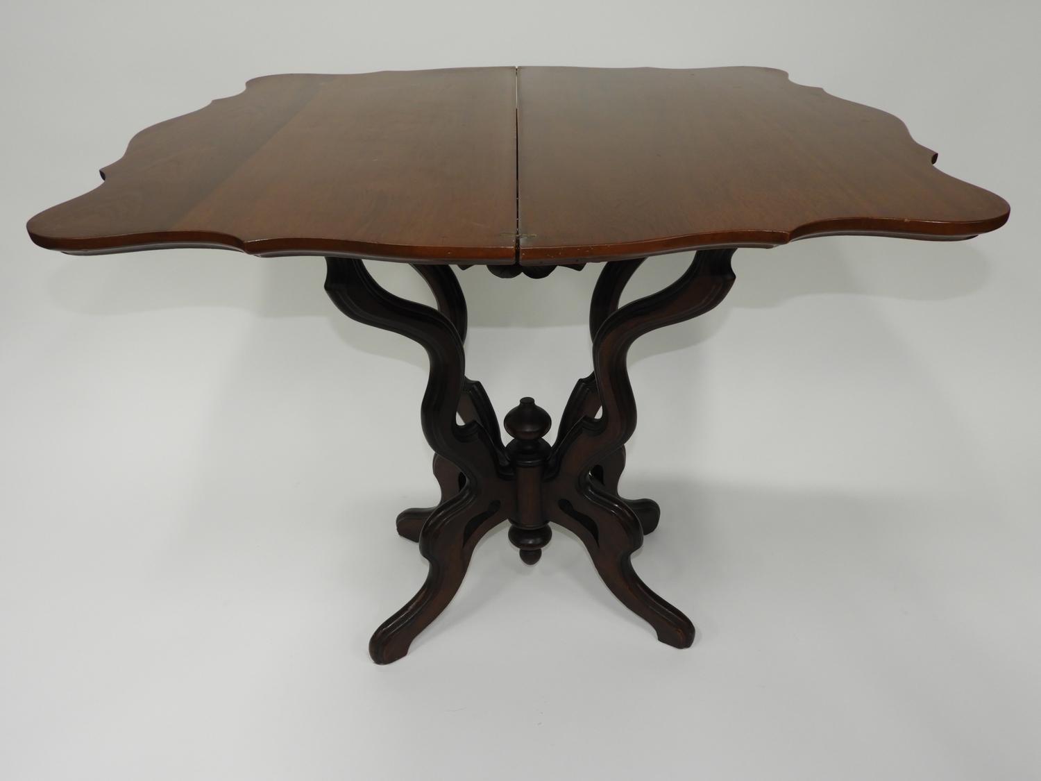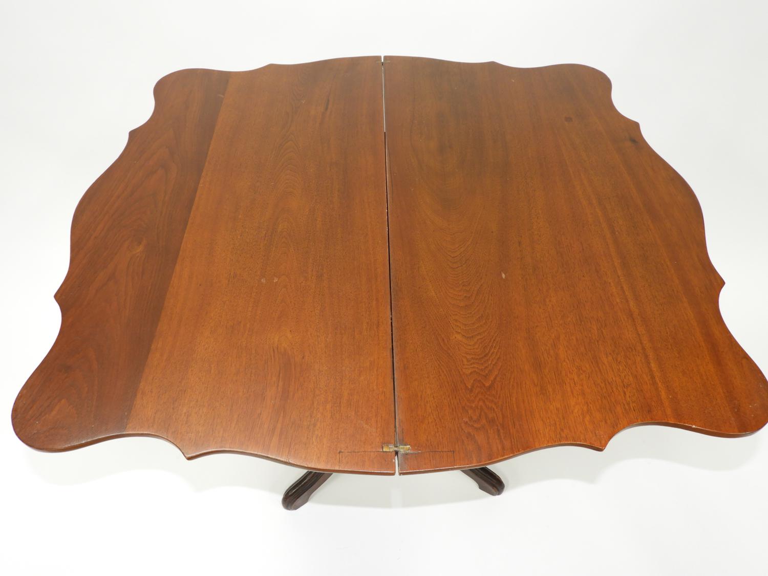 late 19th century walnut fold-over pedestal tea table, 30" x 32" x 17".