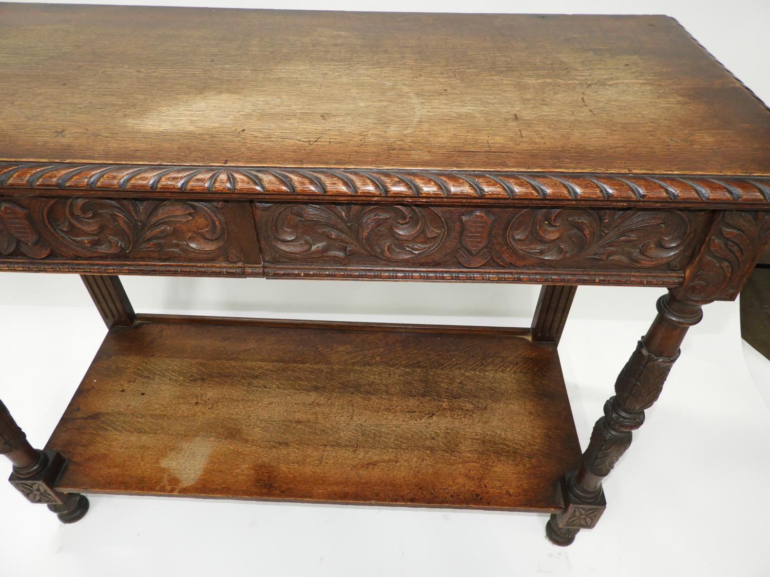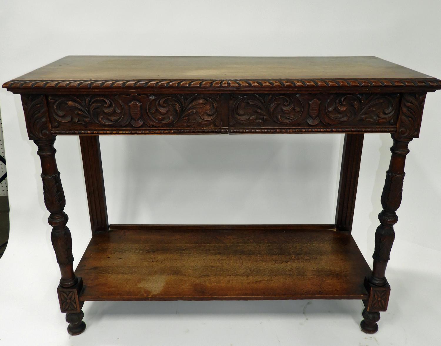 late 19th century carved oak server sideboard, 37" x 48" x 20".