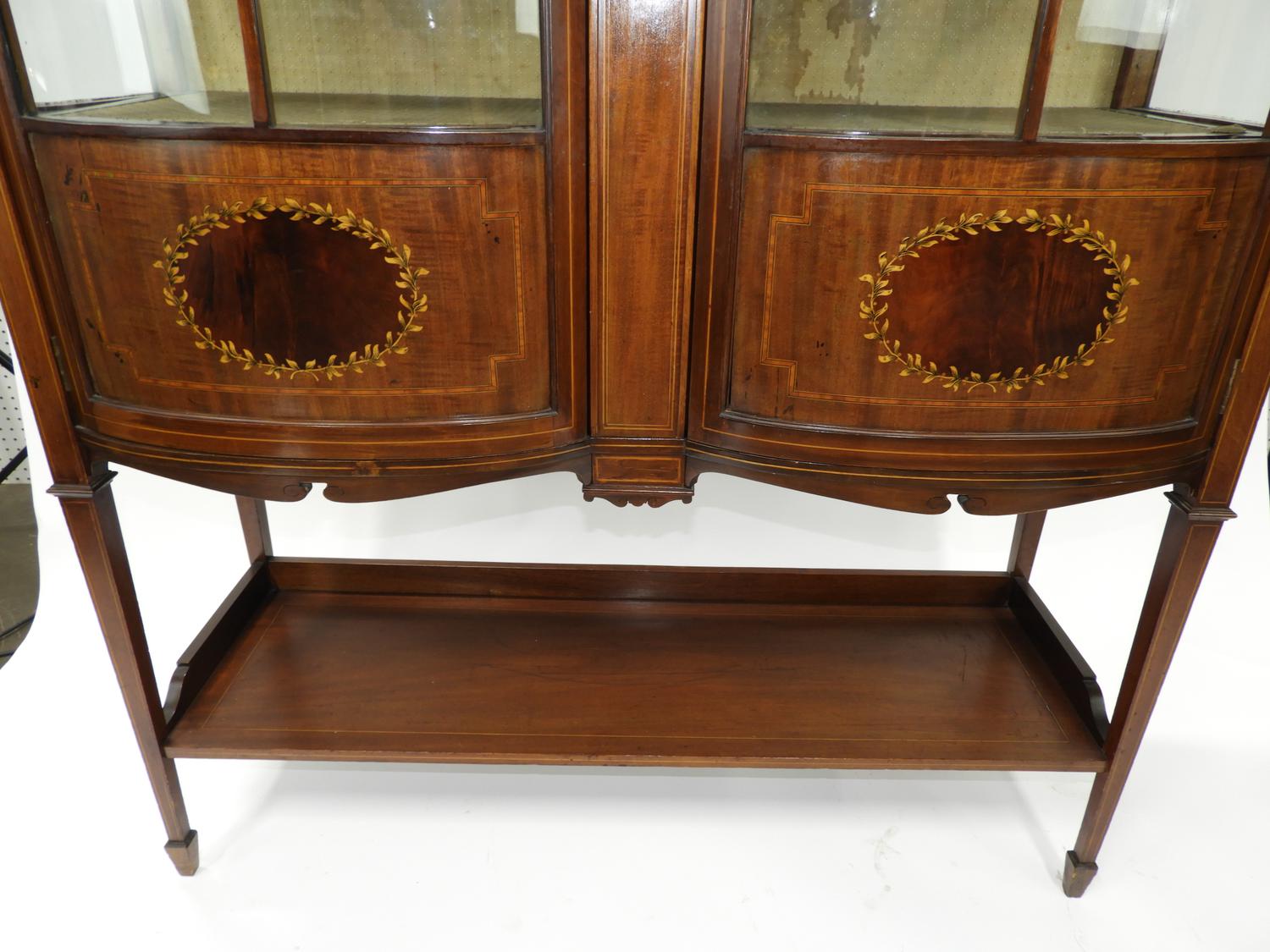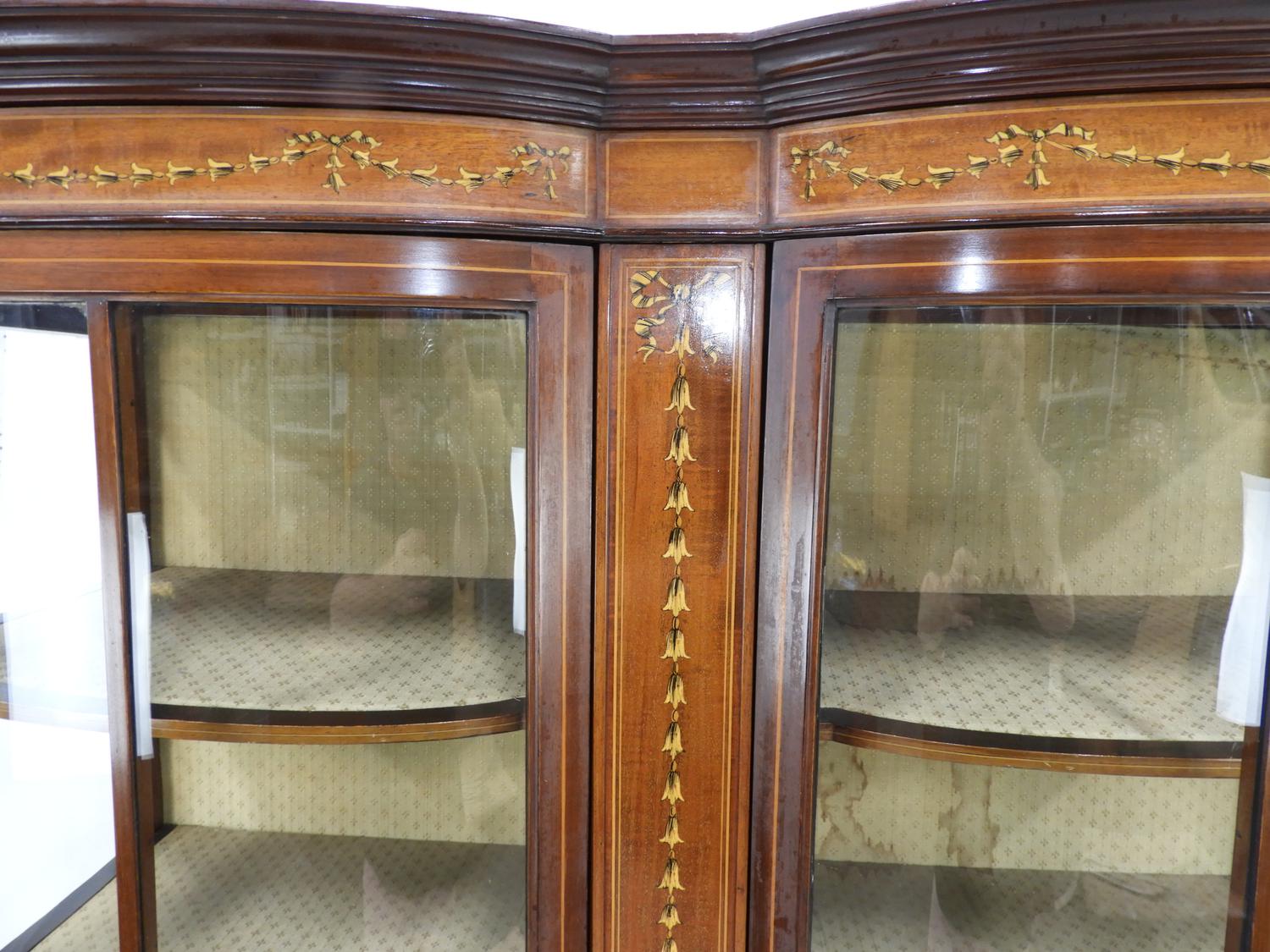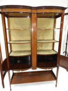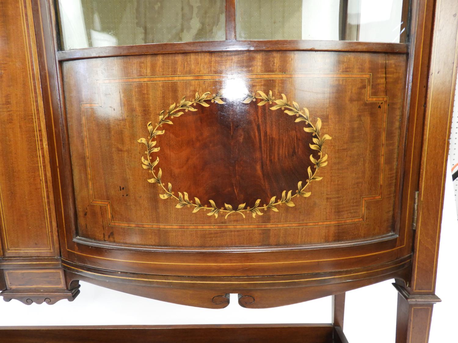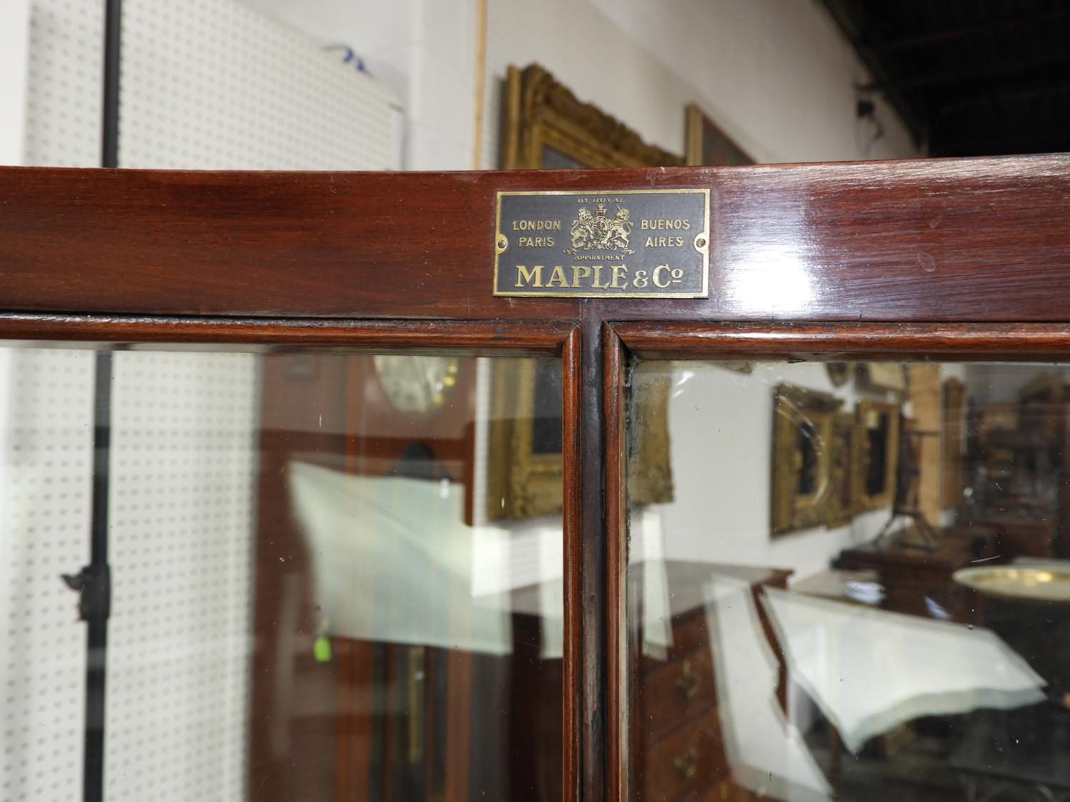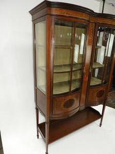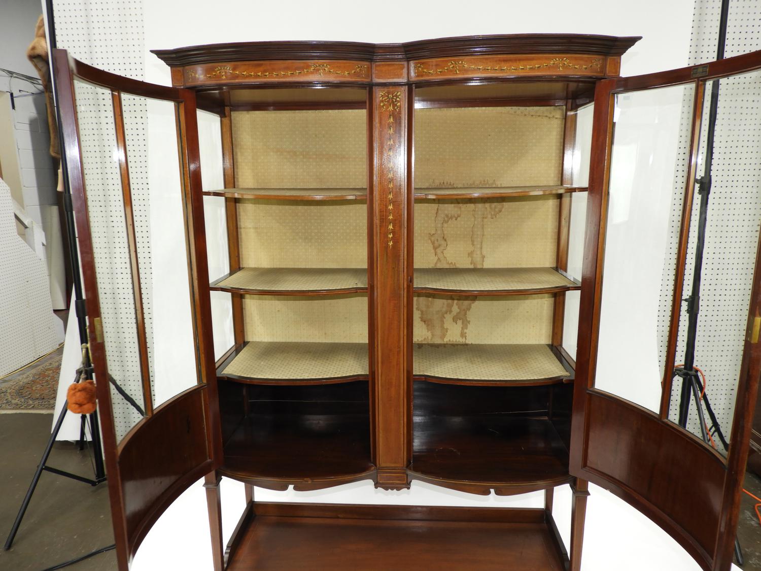 edwardian inlaid mahogany curio cabinet, maple & co., london, 69 1/2" x 48" x 20".