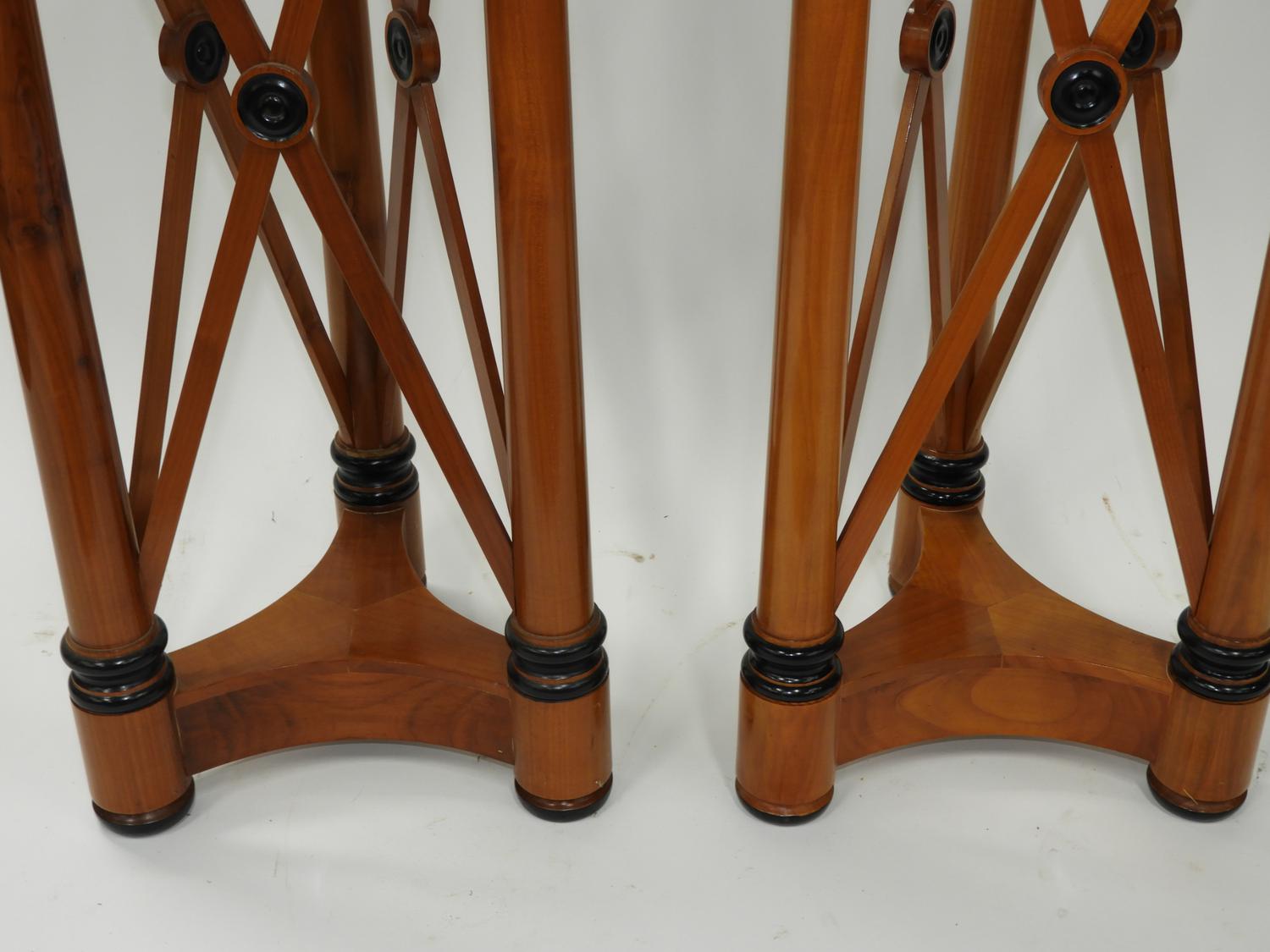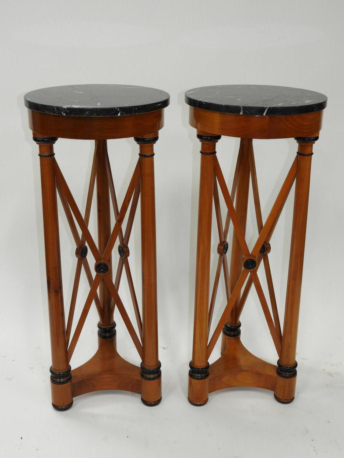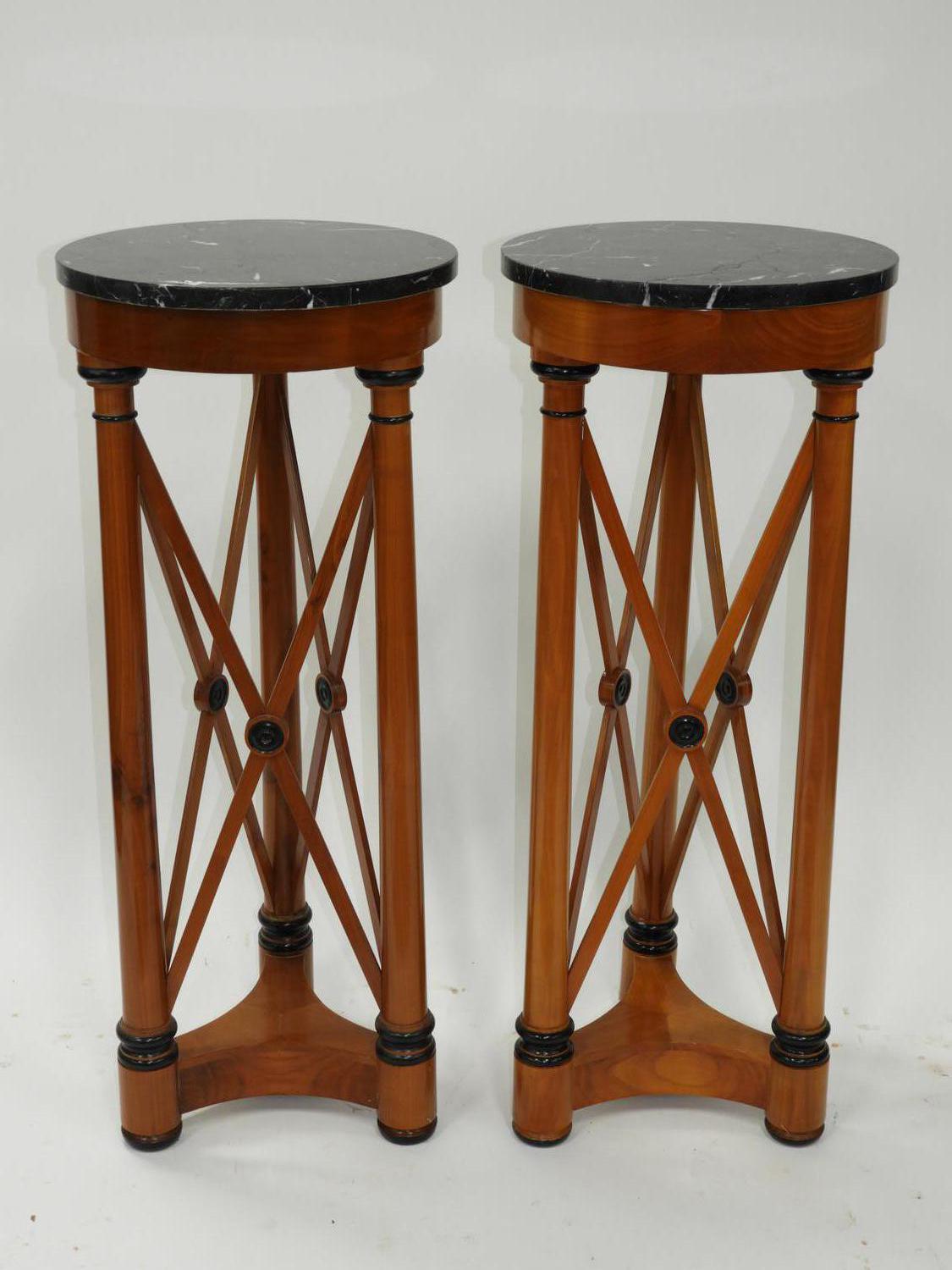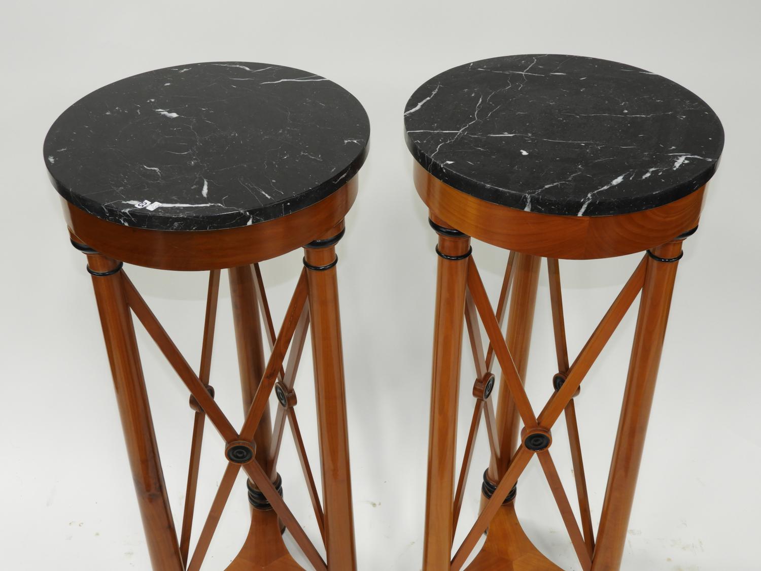 pair of neo-classical style marble top pedestals, 38" x 15 1/2".