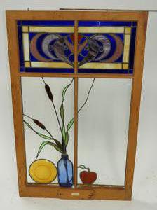 stained glass window, bearing plaque potter 1976, 48" x 31".