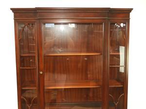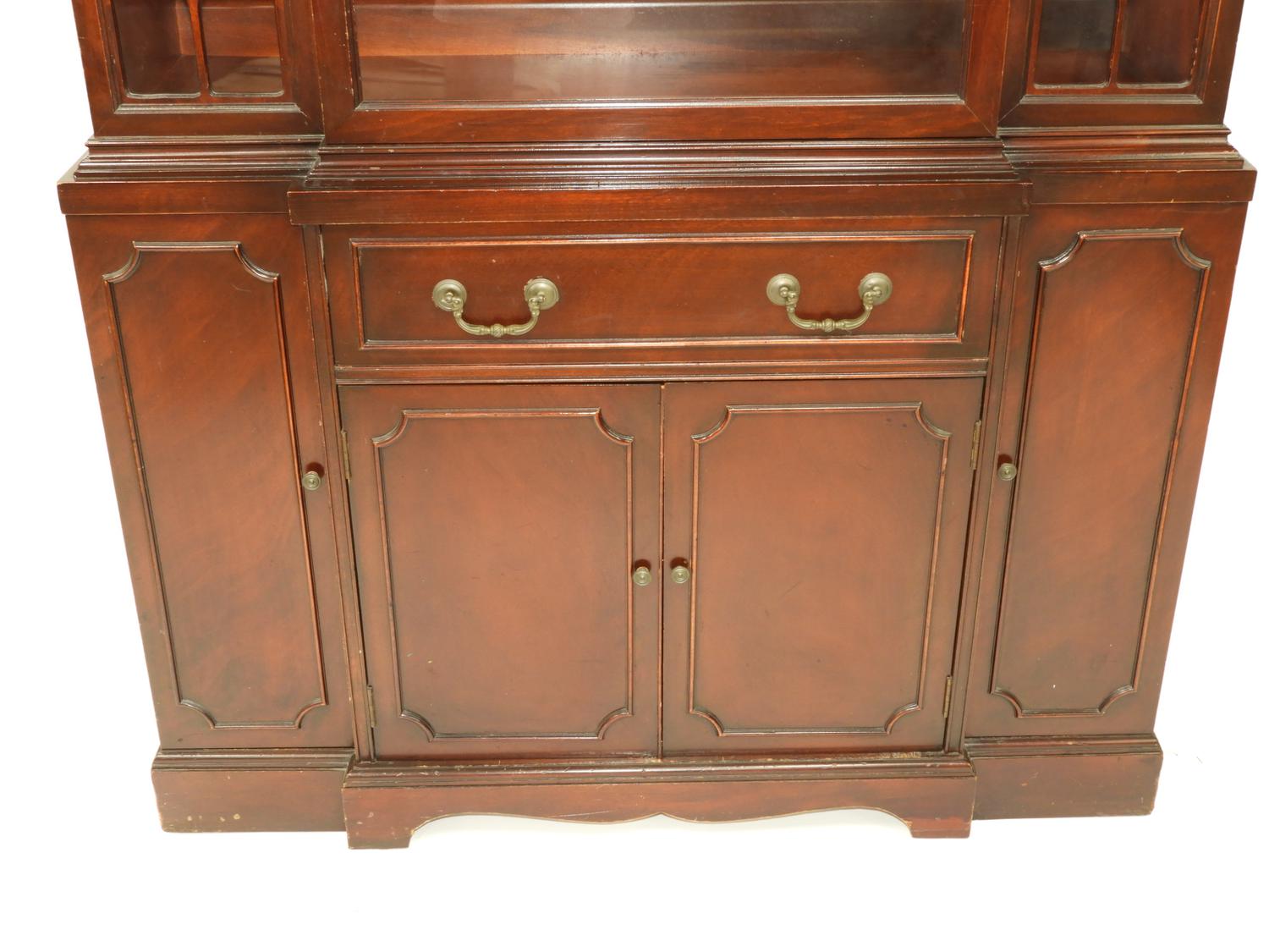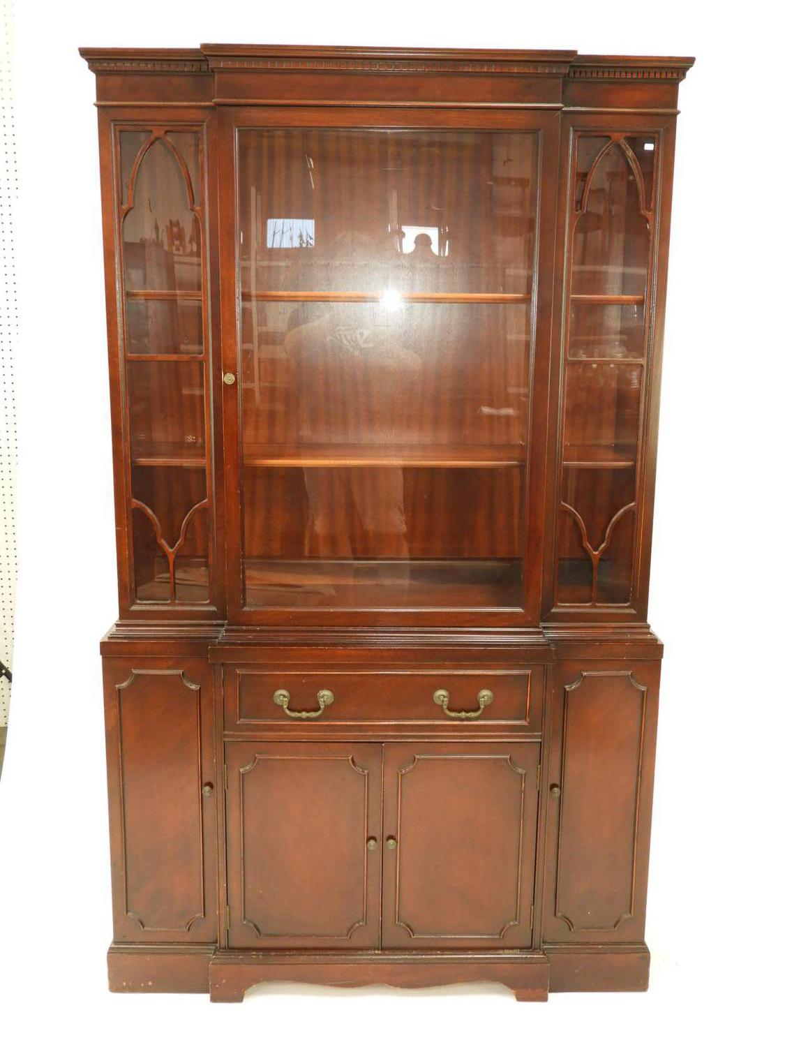 mahogany breakfront china cabinet, 74" x 42" x 14".