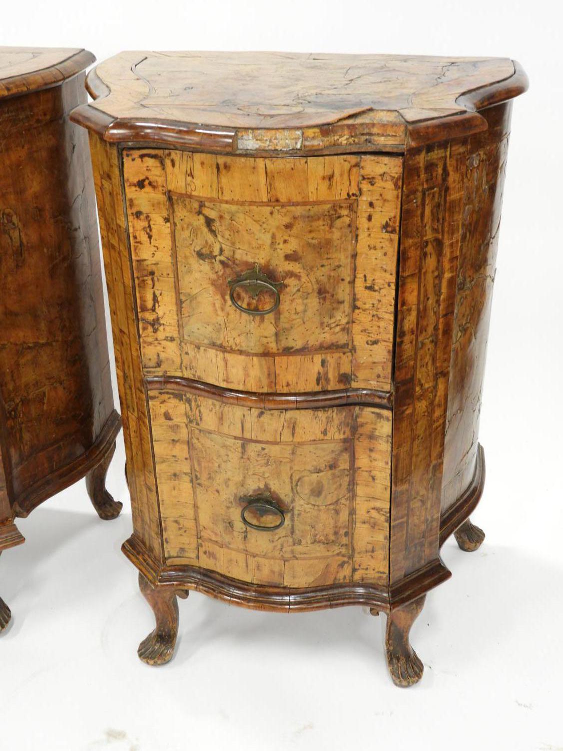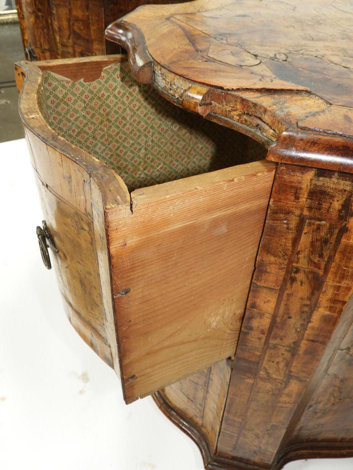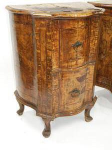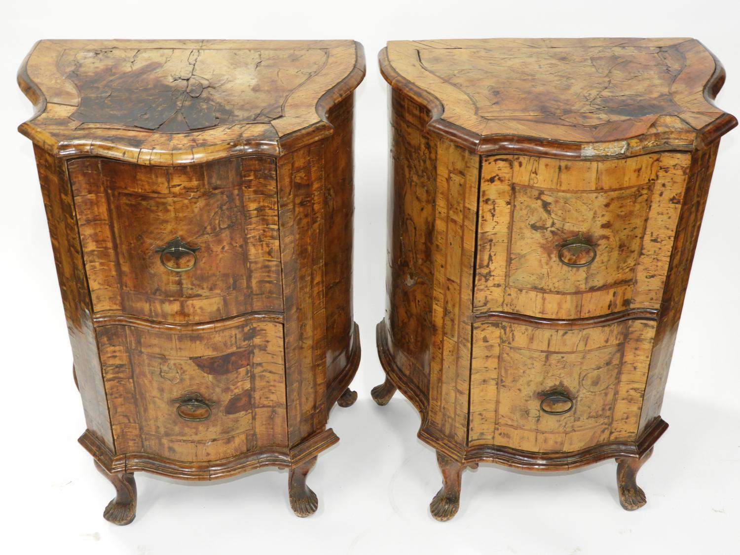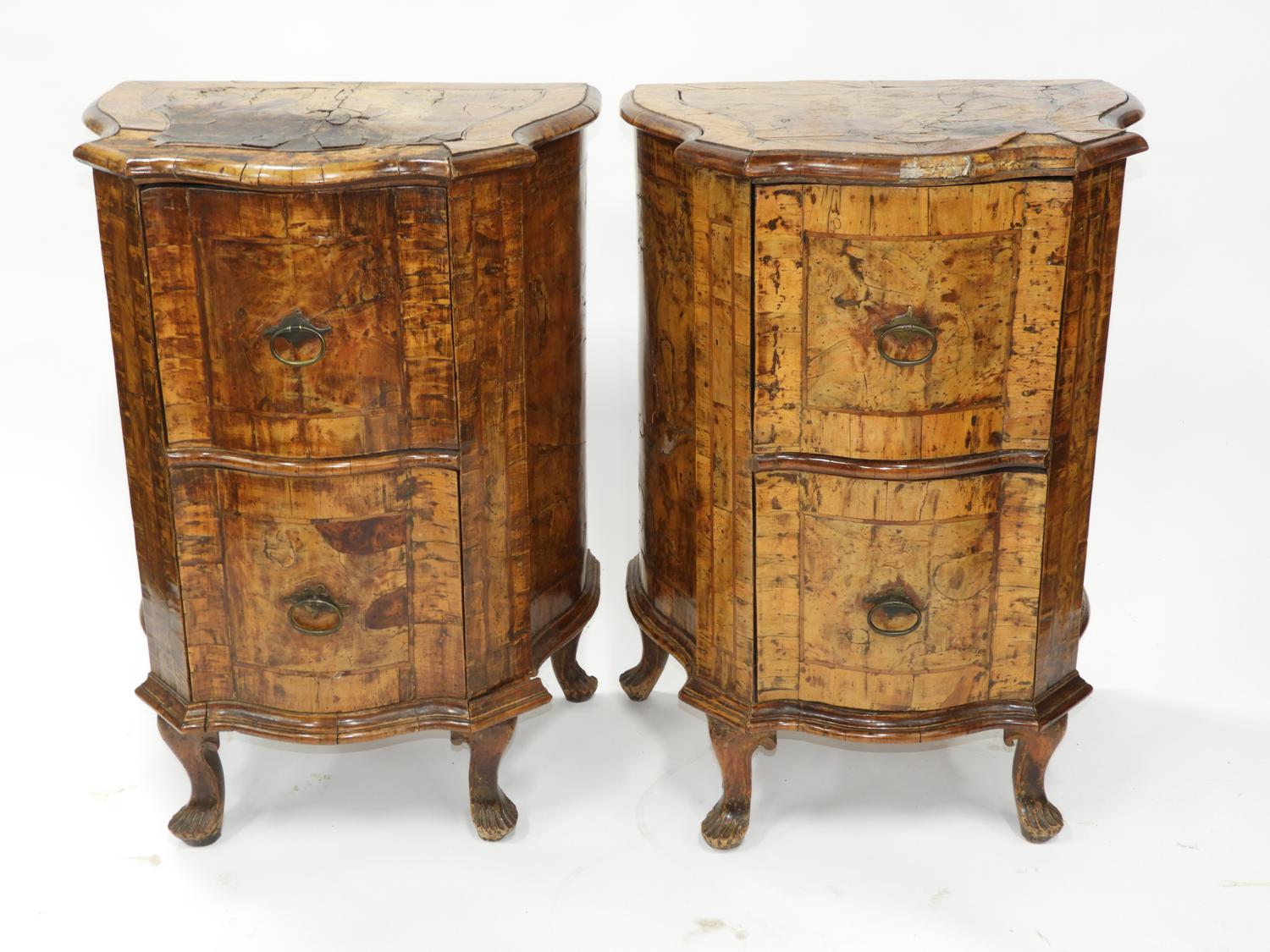 pair of 18th century italian burl walnut commodes, 33" x 23" x 17 1/2".