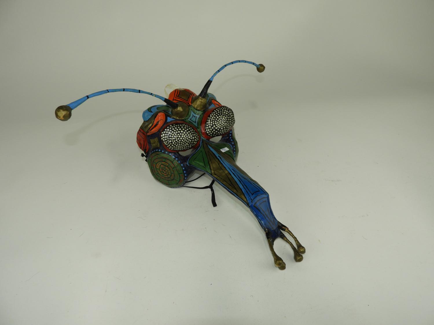 polychrome painted insect mask.