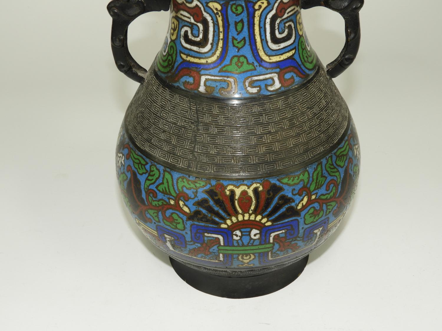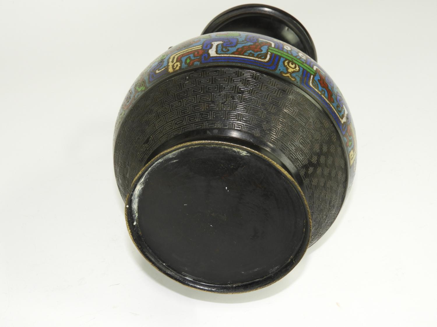 chinese cloisonne enamel bronze vase, ht. 11 1/2".