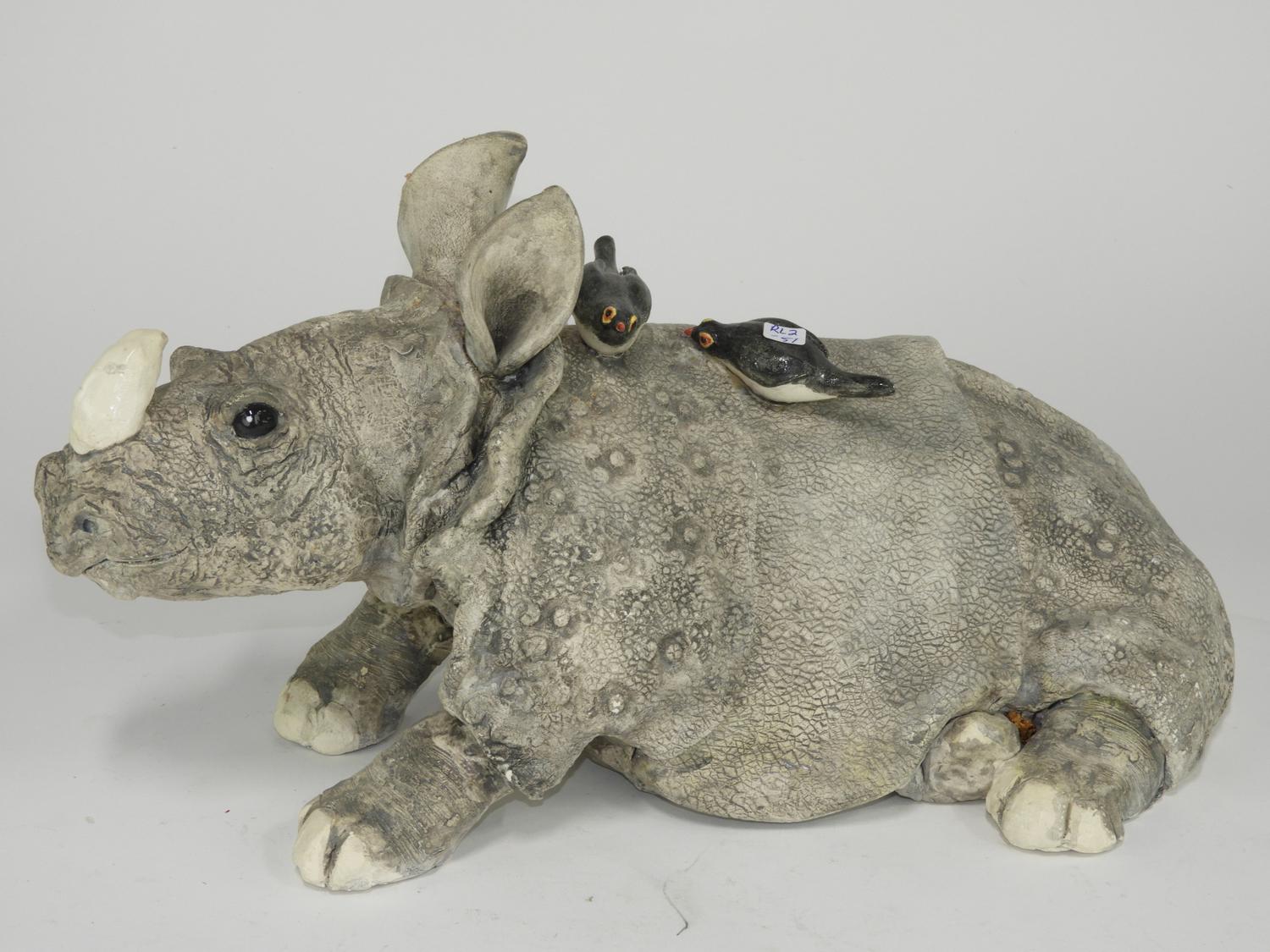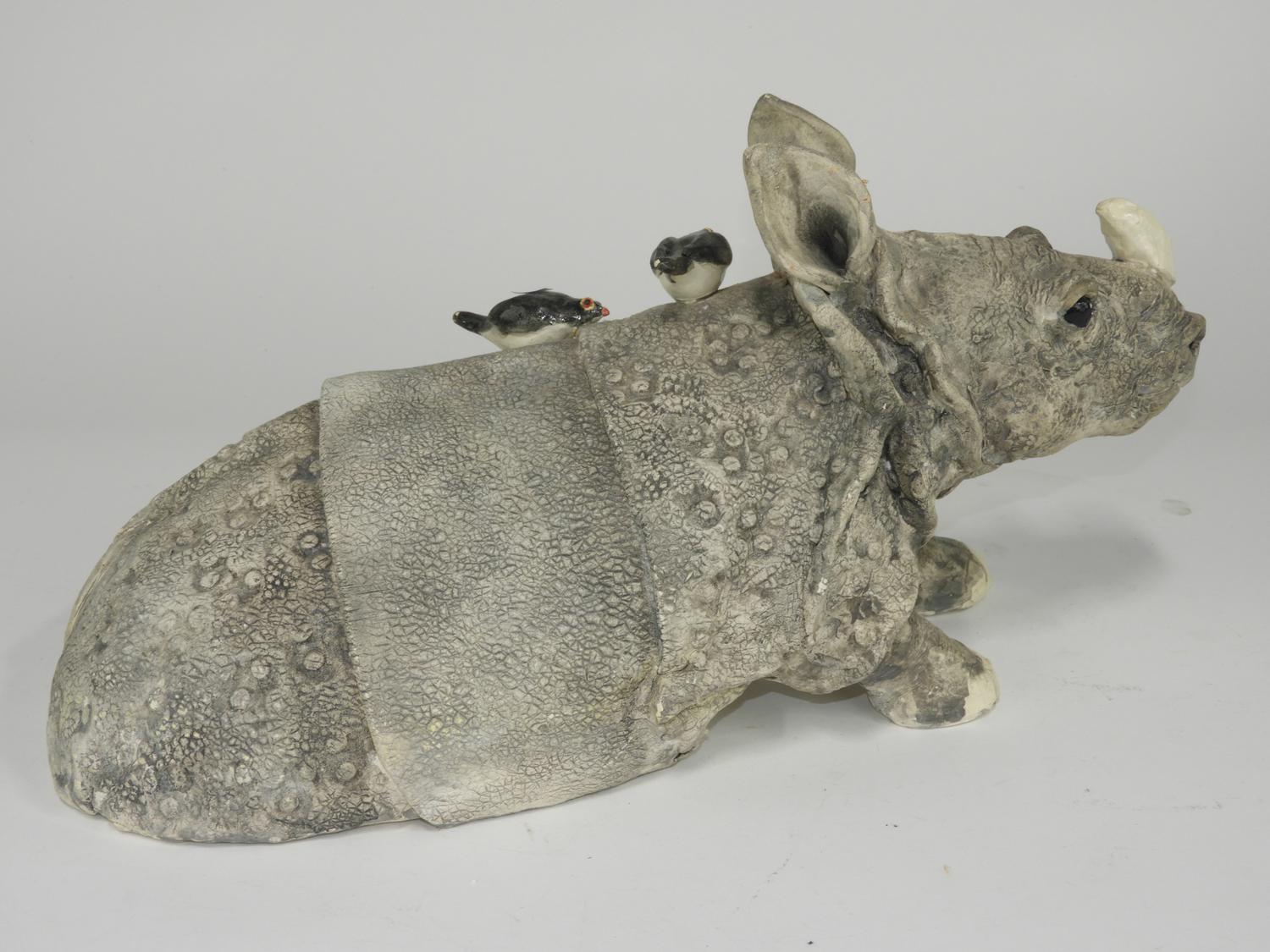 florence chik lau, art pottery rhinocerous, 18" x 9" x 13"