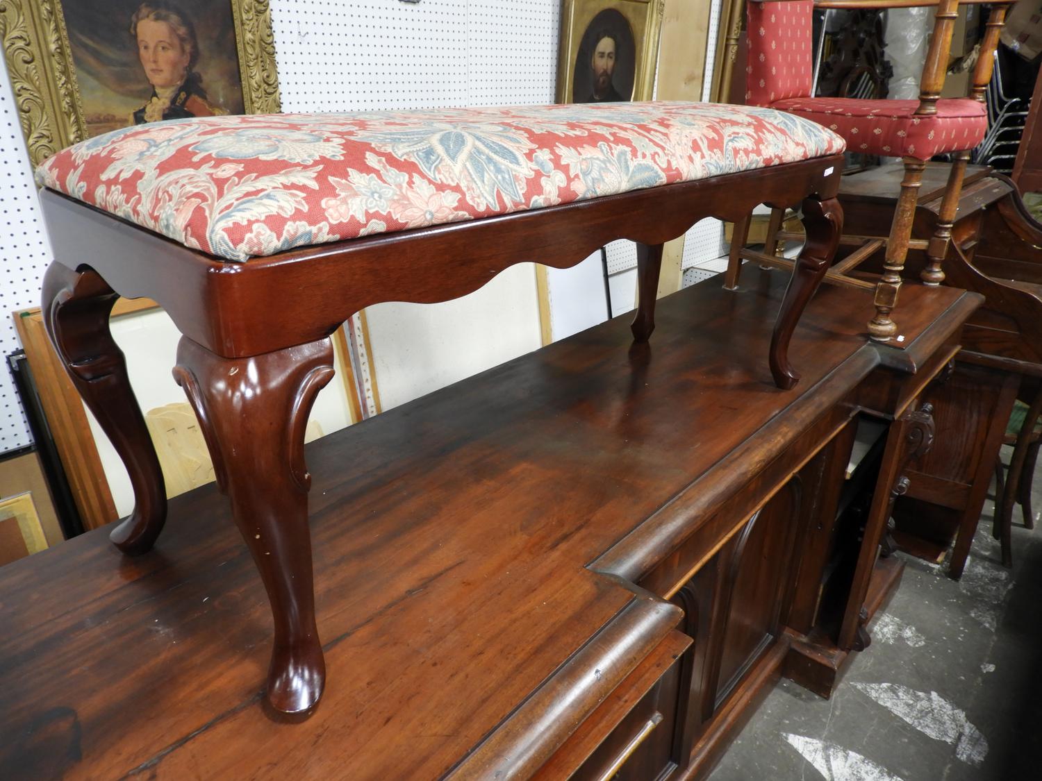 queen anne style upholstered bench.