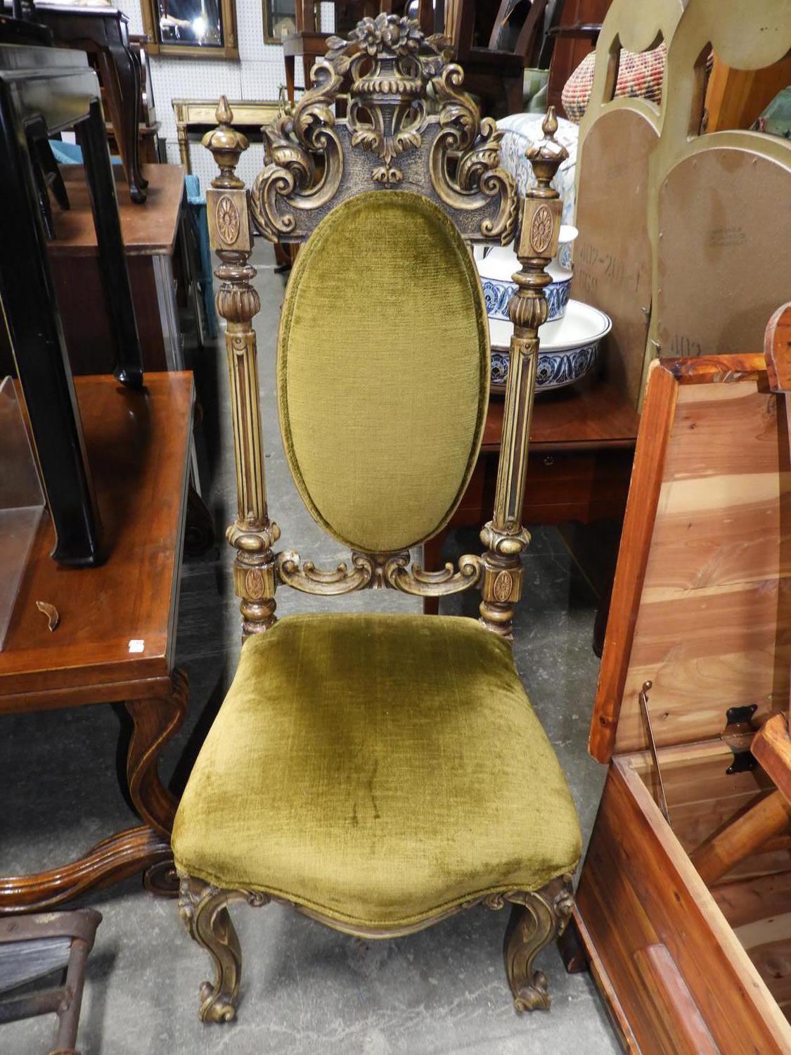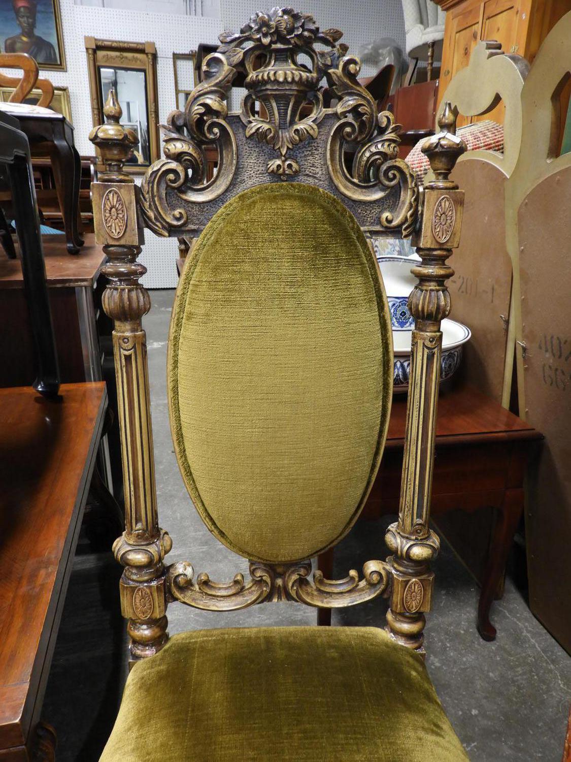 carved faux finish cameo back hall chair.