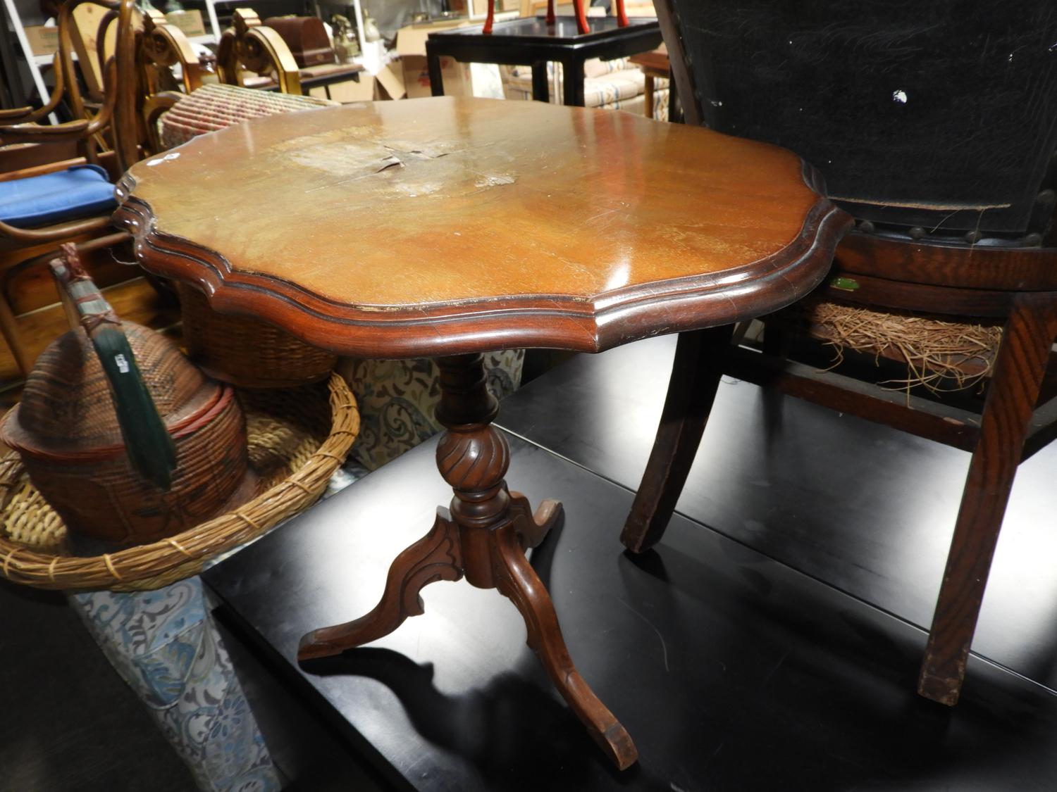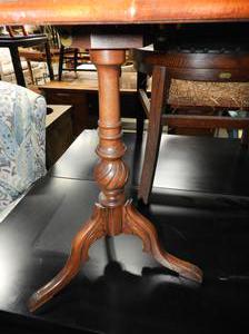 walnut tilt top pedestal table, 20" x 25" x 17".