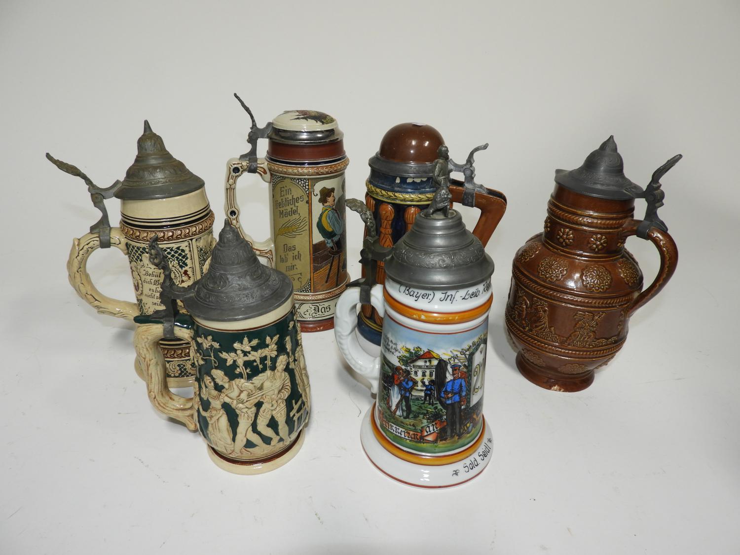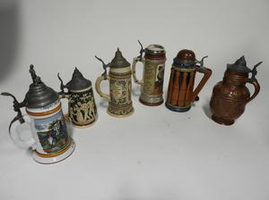 lot of beer steins with lids