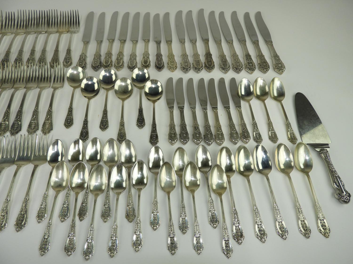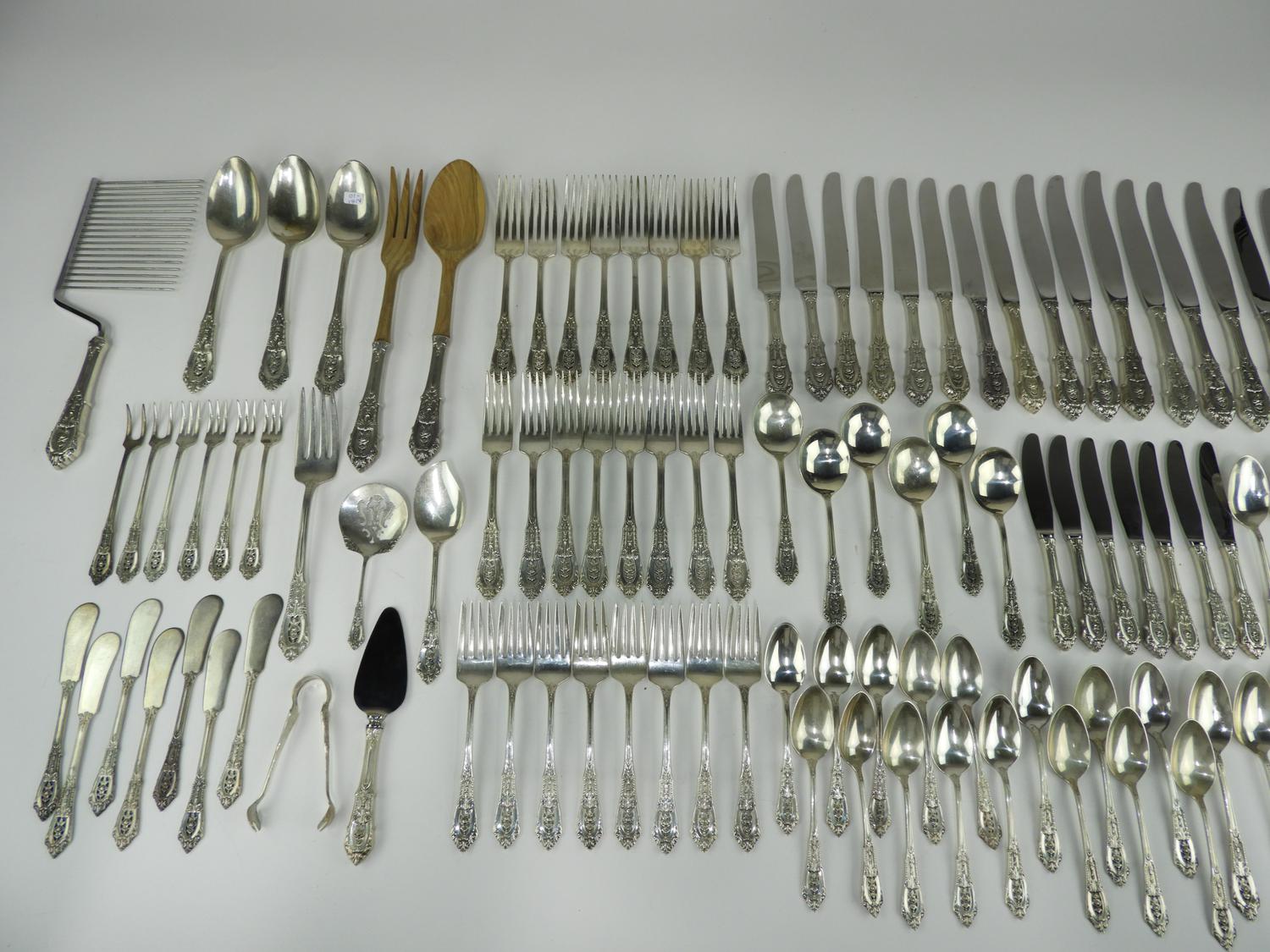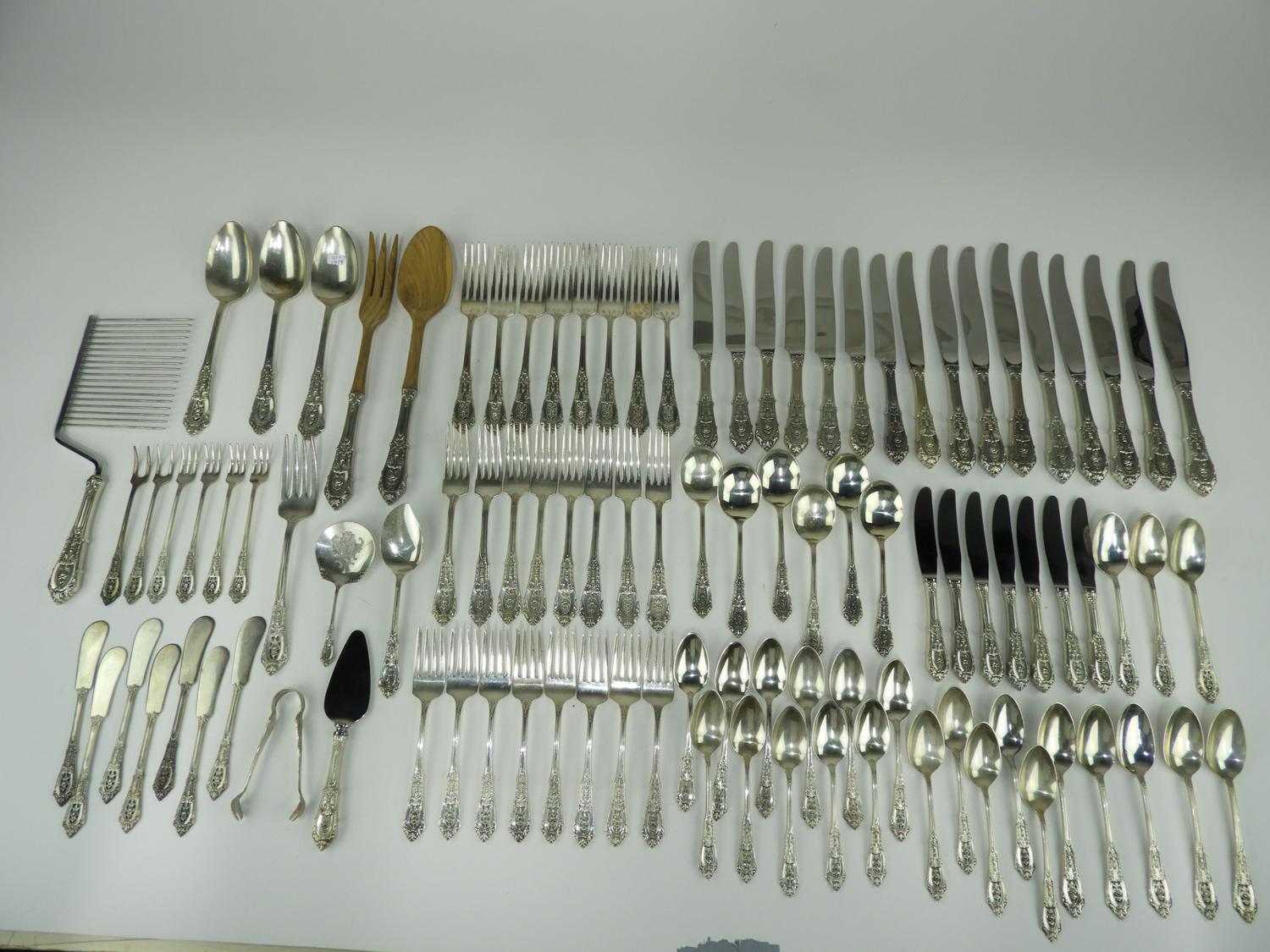 wallace sterling silver "rose point" pattern flatware, 102 pieces.