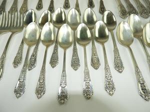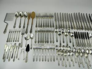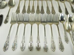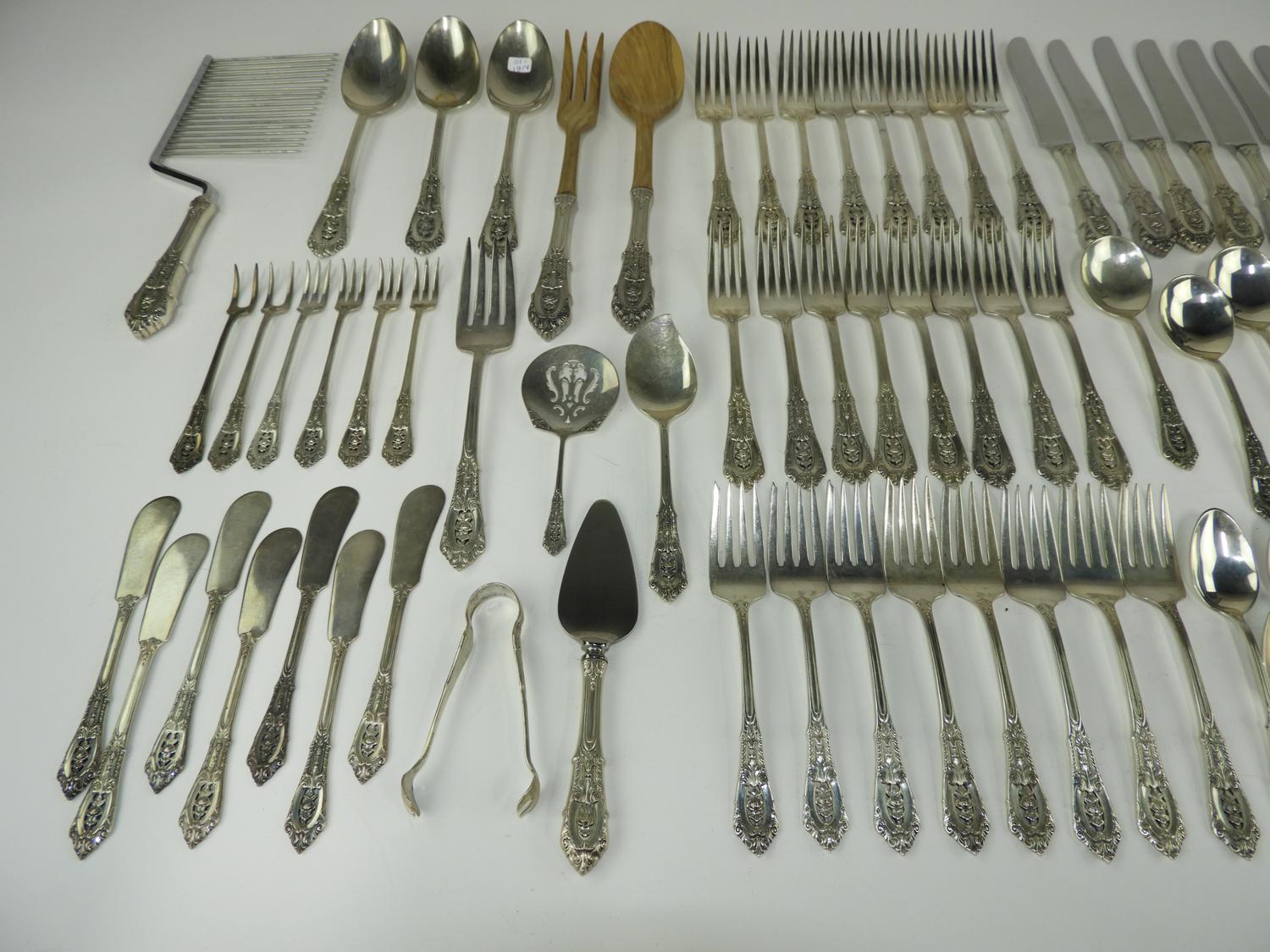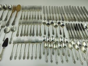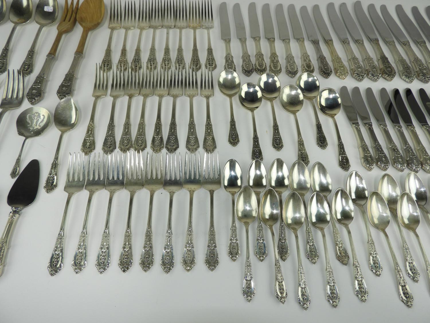 wallace sterling silver "rose point" pattern flatware, 102 pieces.