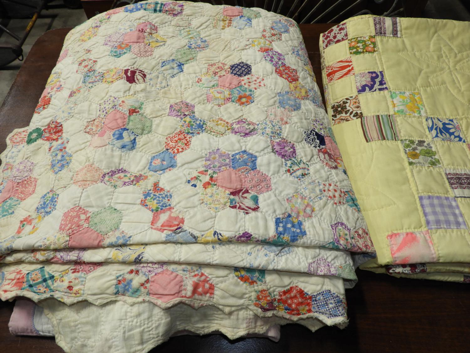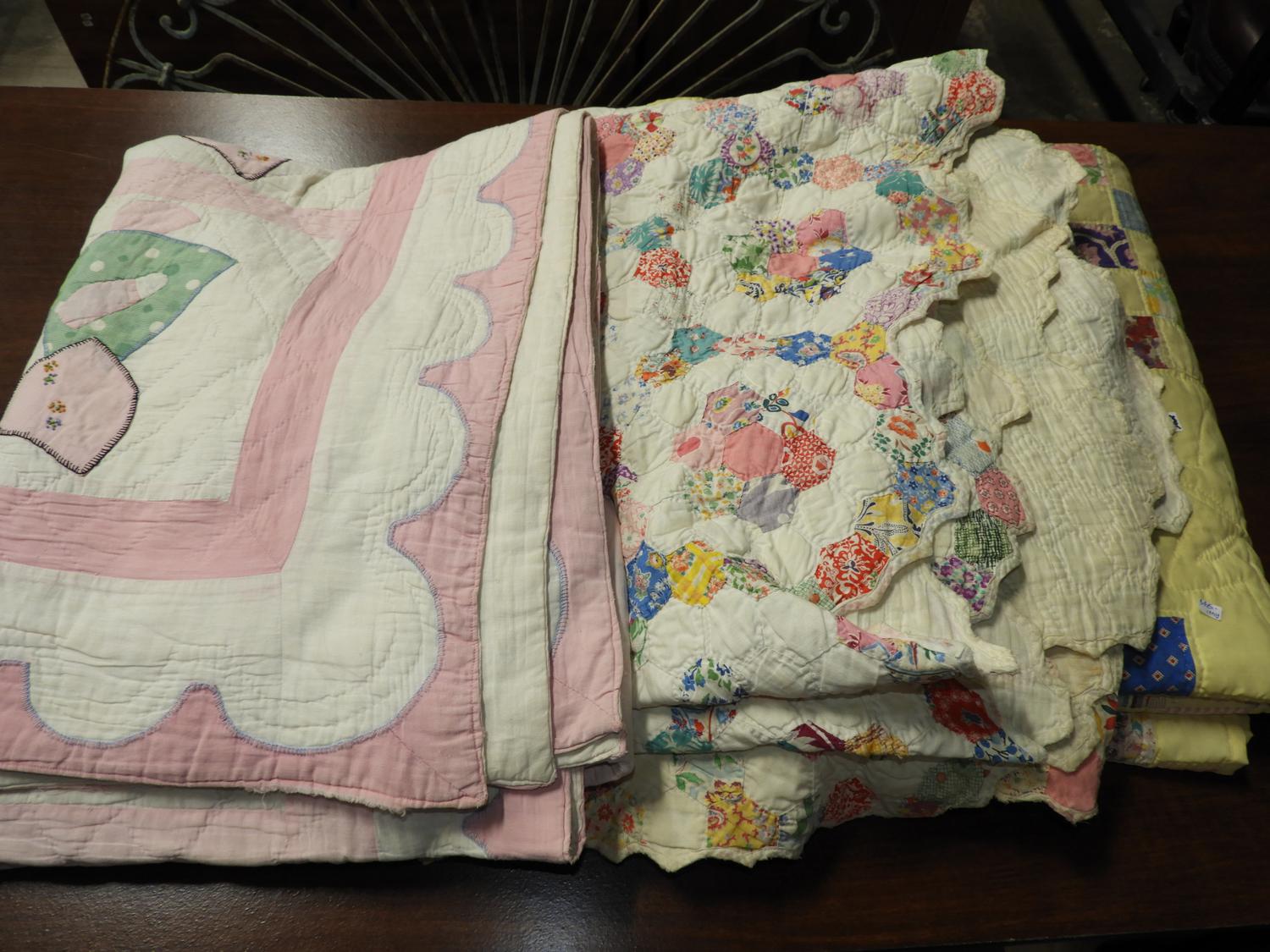 three vintage quilts