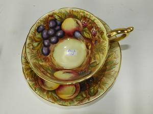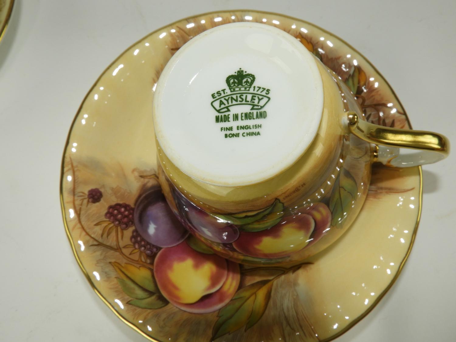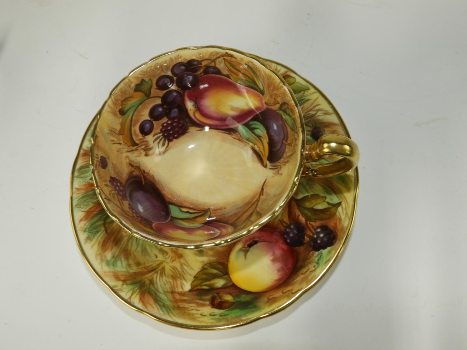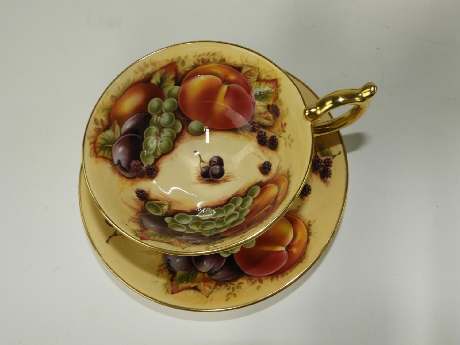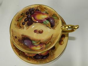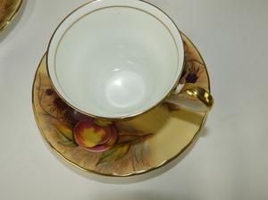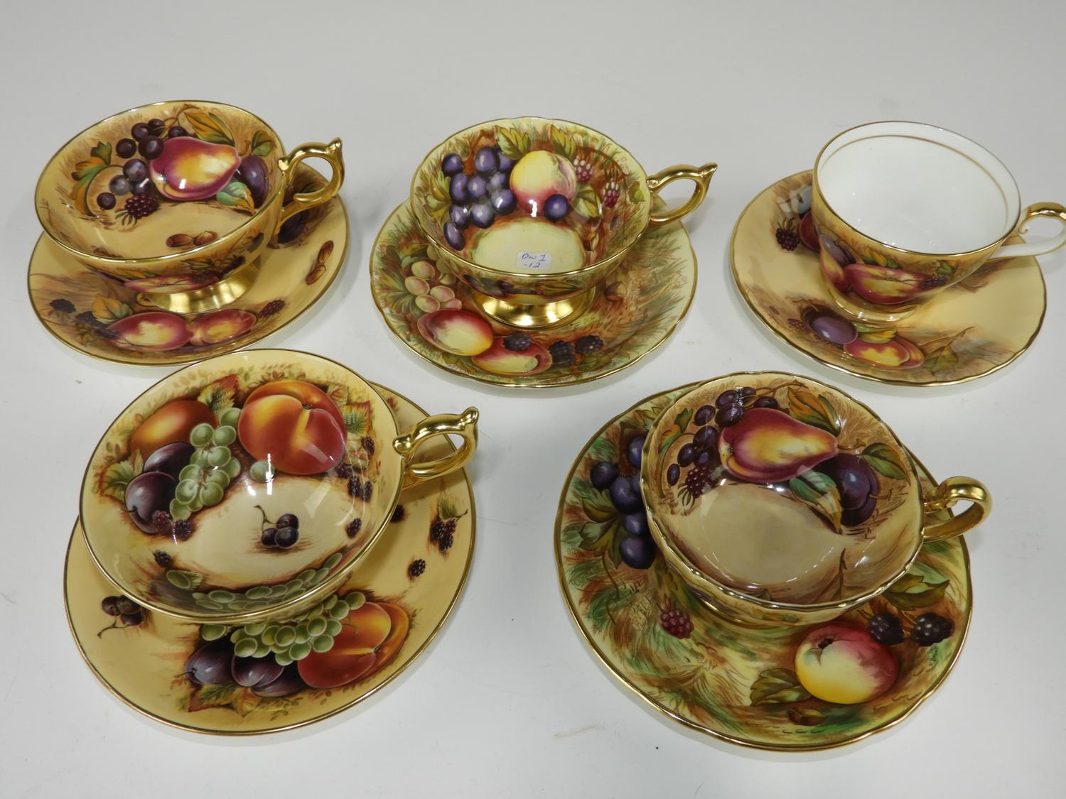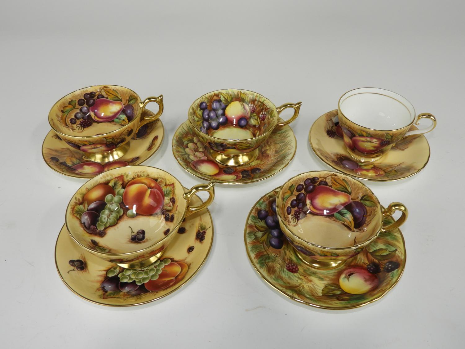 5 aynsley fruit pattern tea cups and saucers.