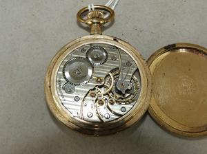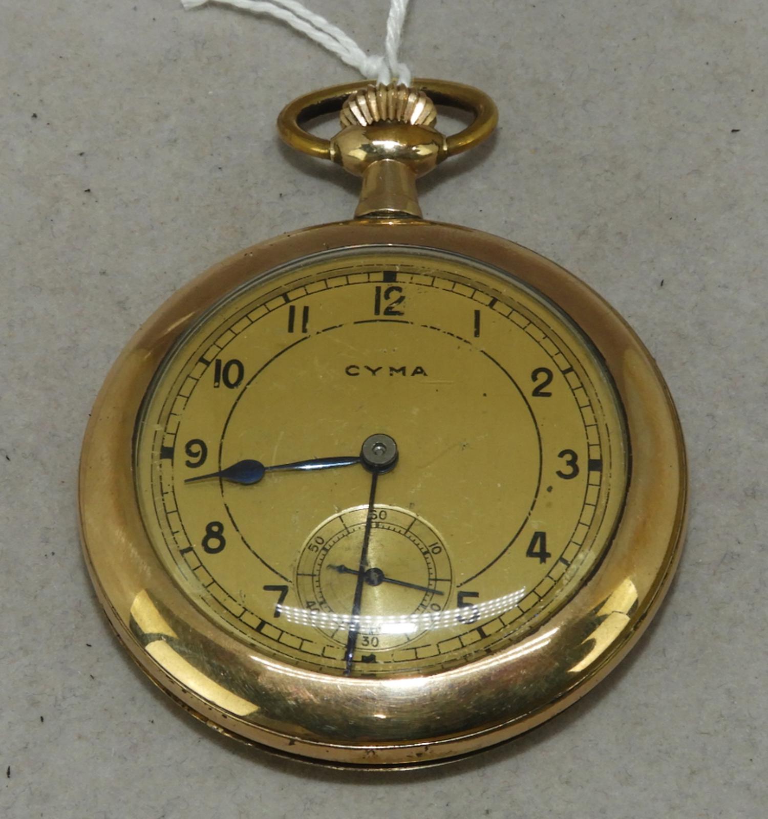 cyma pink gold filled openfaced pocketwatch, 17jewel, 4 adjusment, #17518