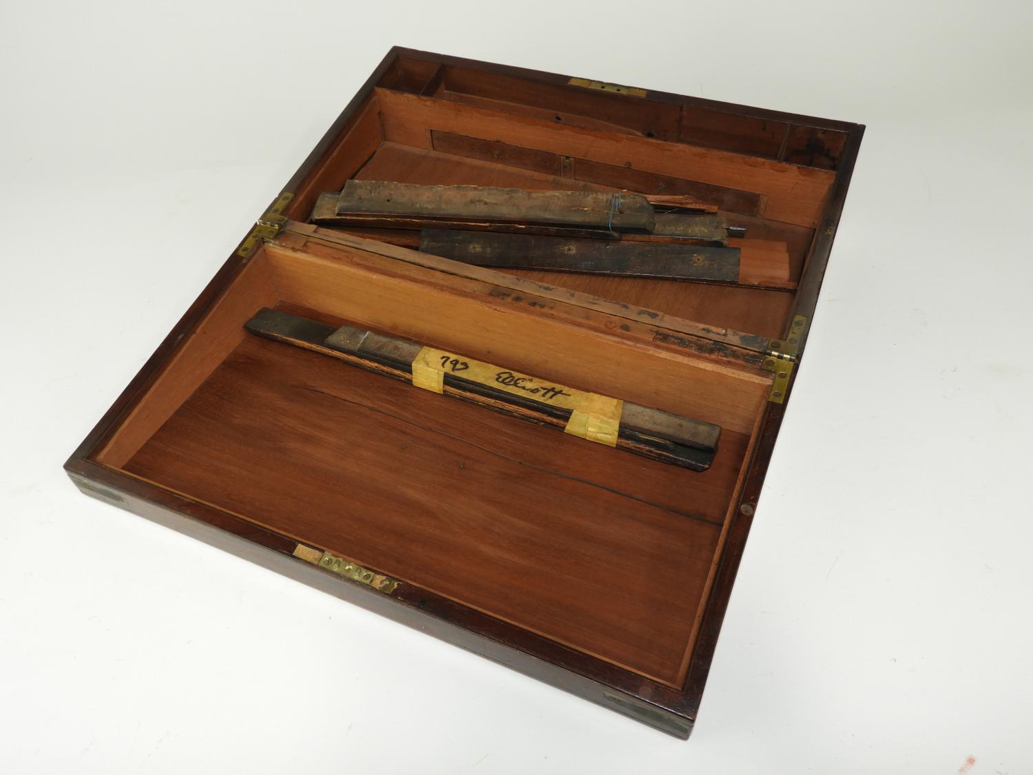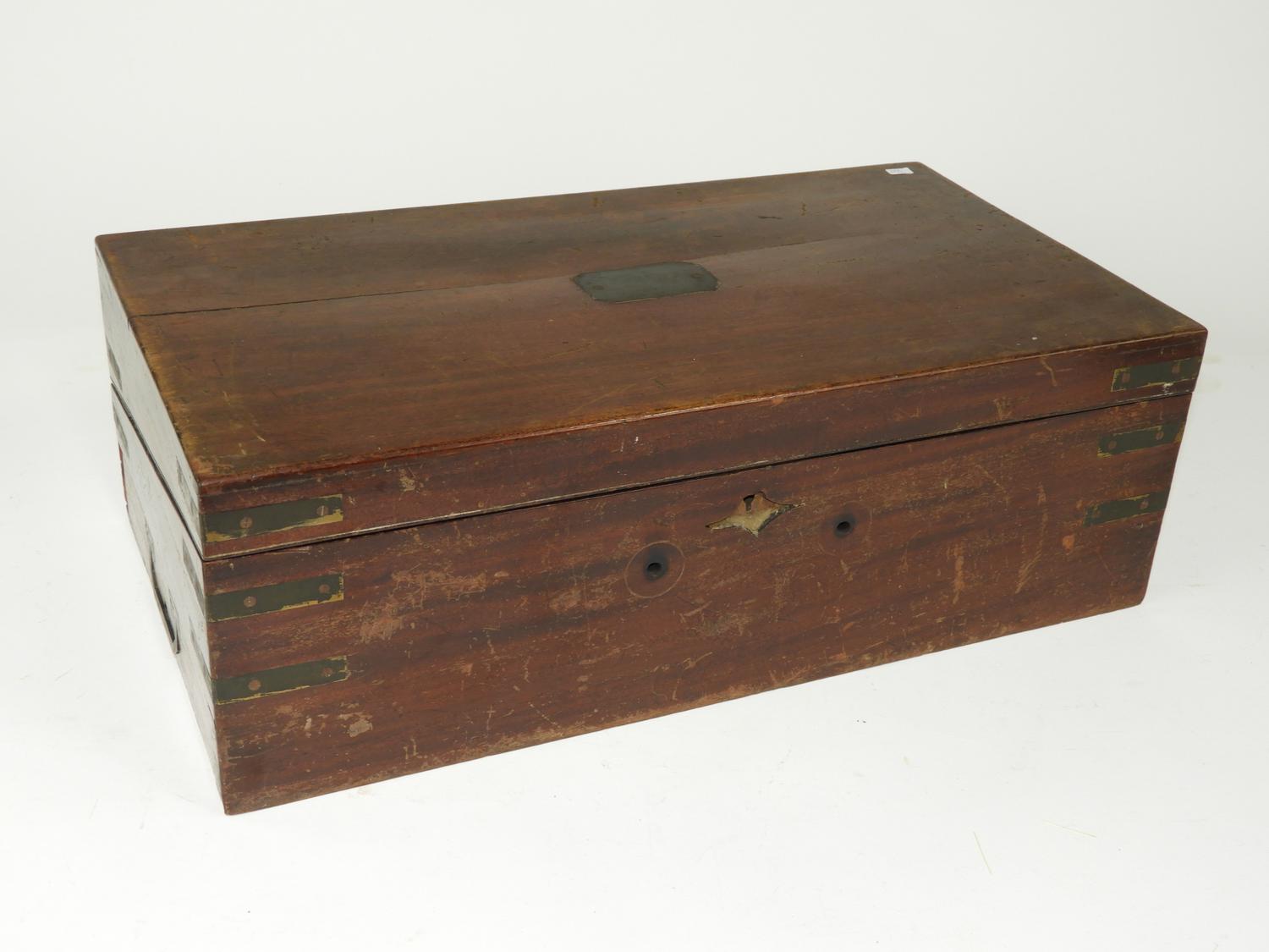 19th century mahogany writing box, 7" x 20" x 11"