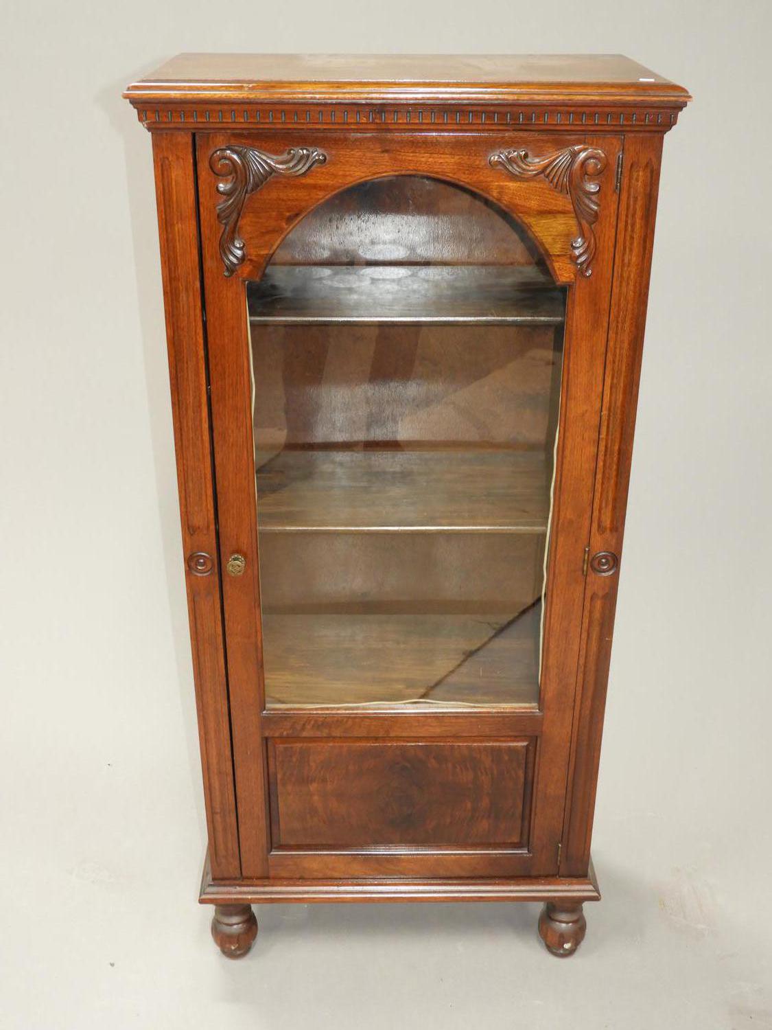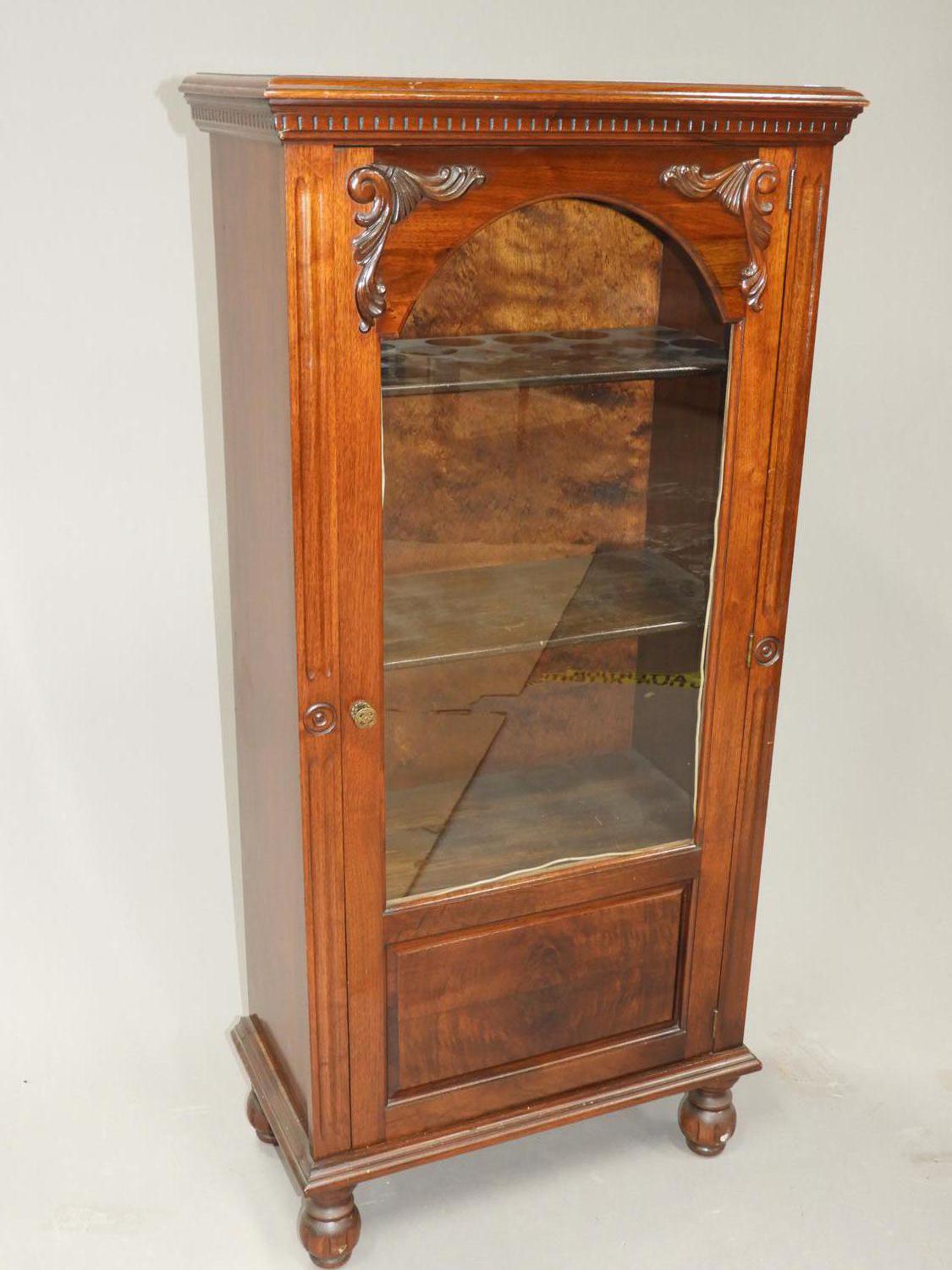 walnut bookcase with glazed glass door, 53" x 25" x 13"