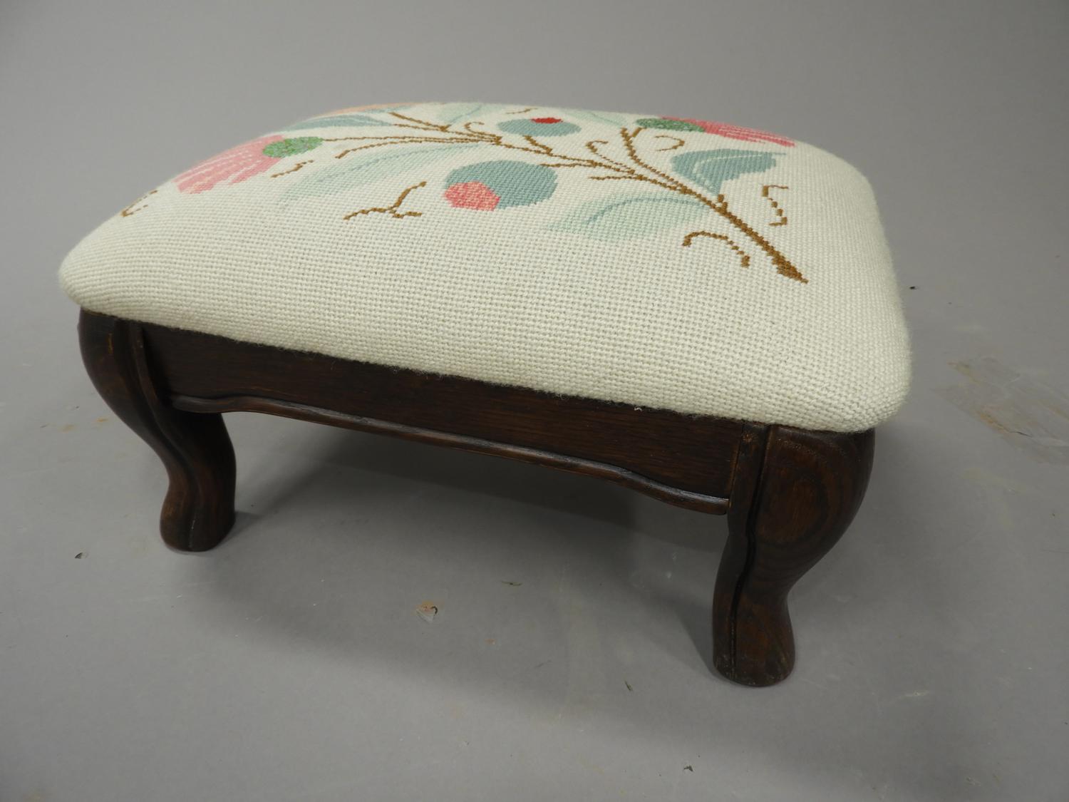 french provincial style needlepoint upholstered footstool