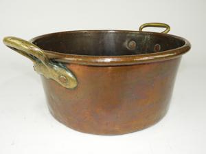 copper jelly pan with brass handles 8" x 20"