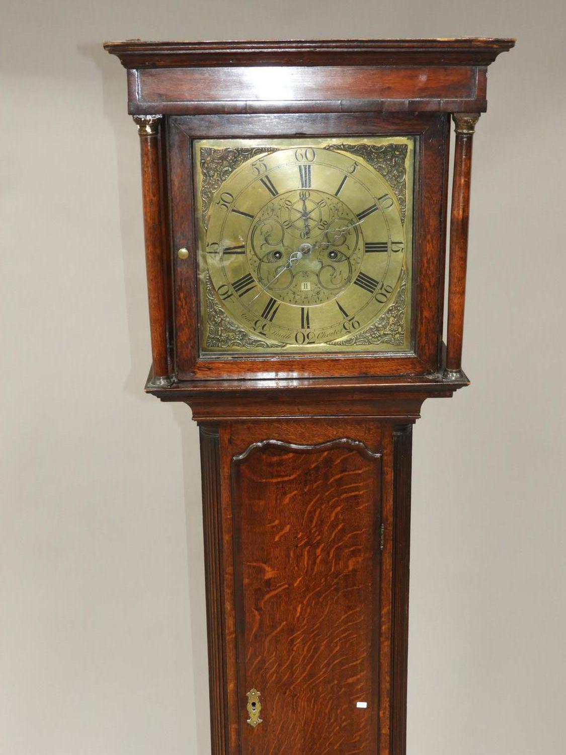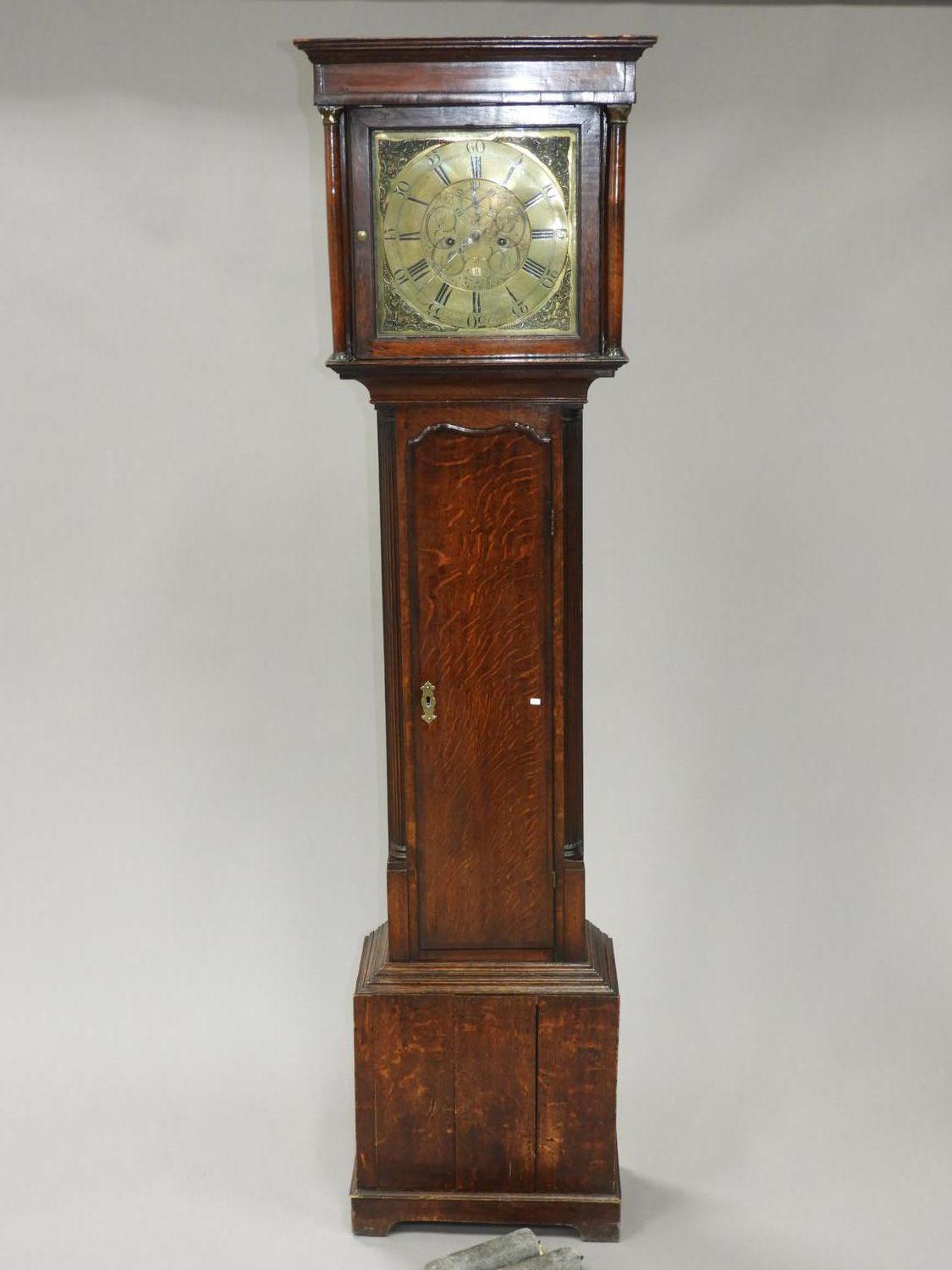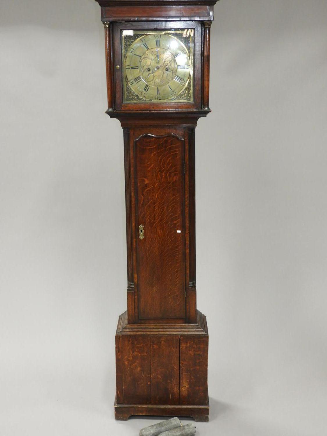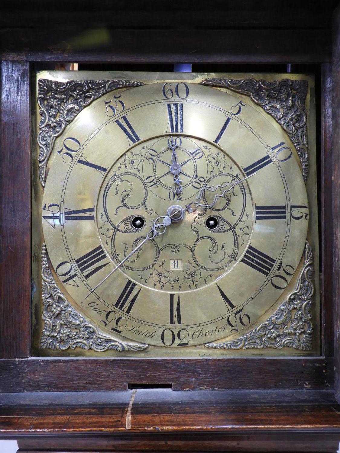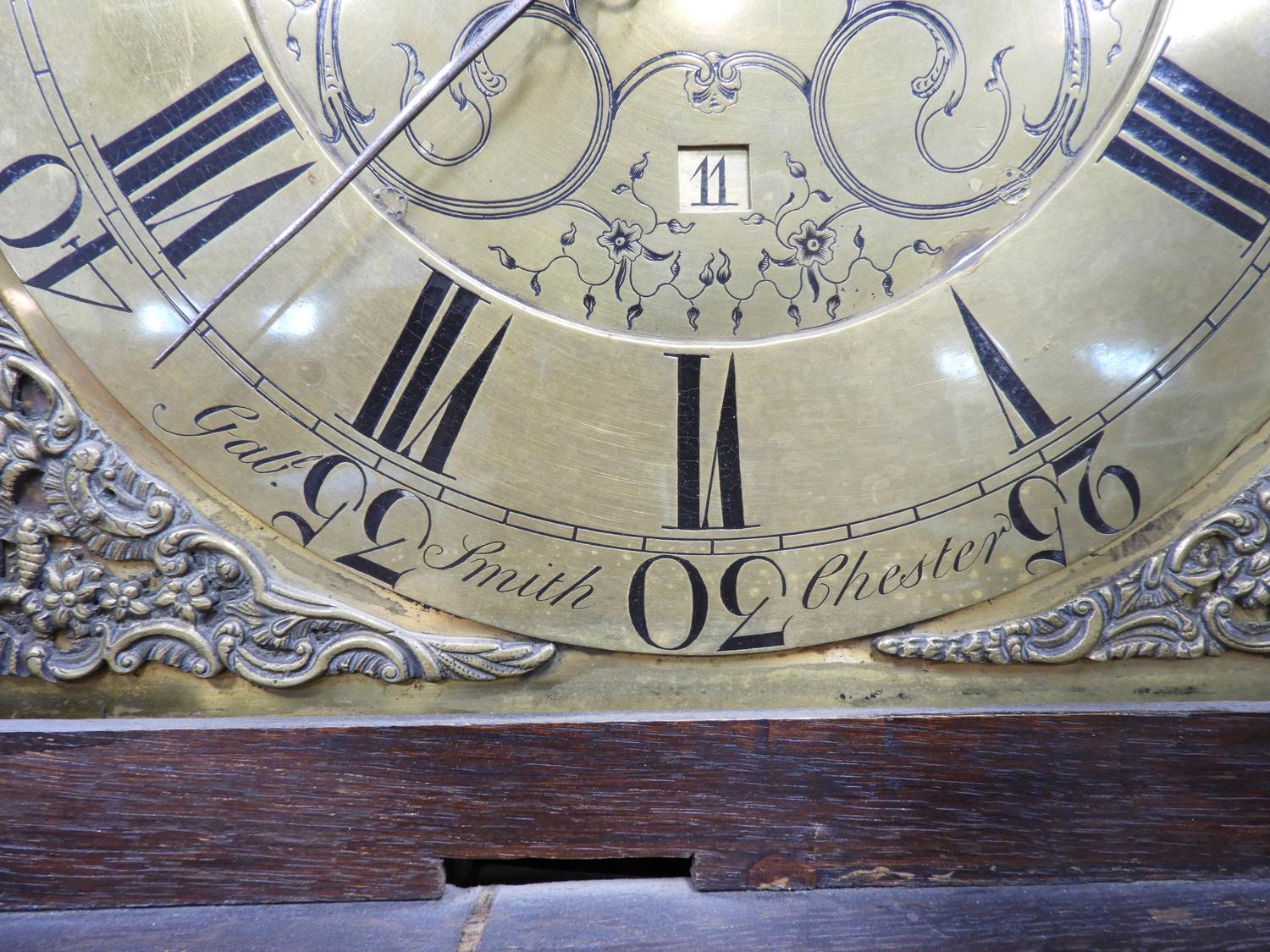 18th century oak longcase clock with brass dial signed gabriel smith, chester