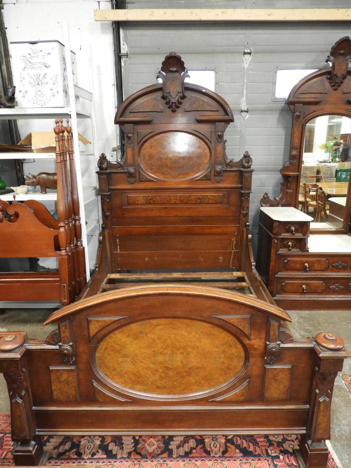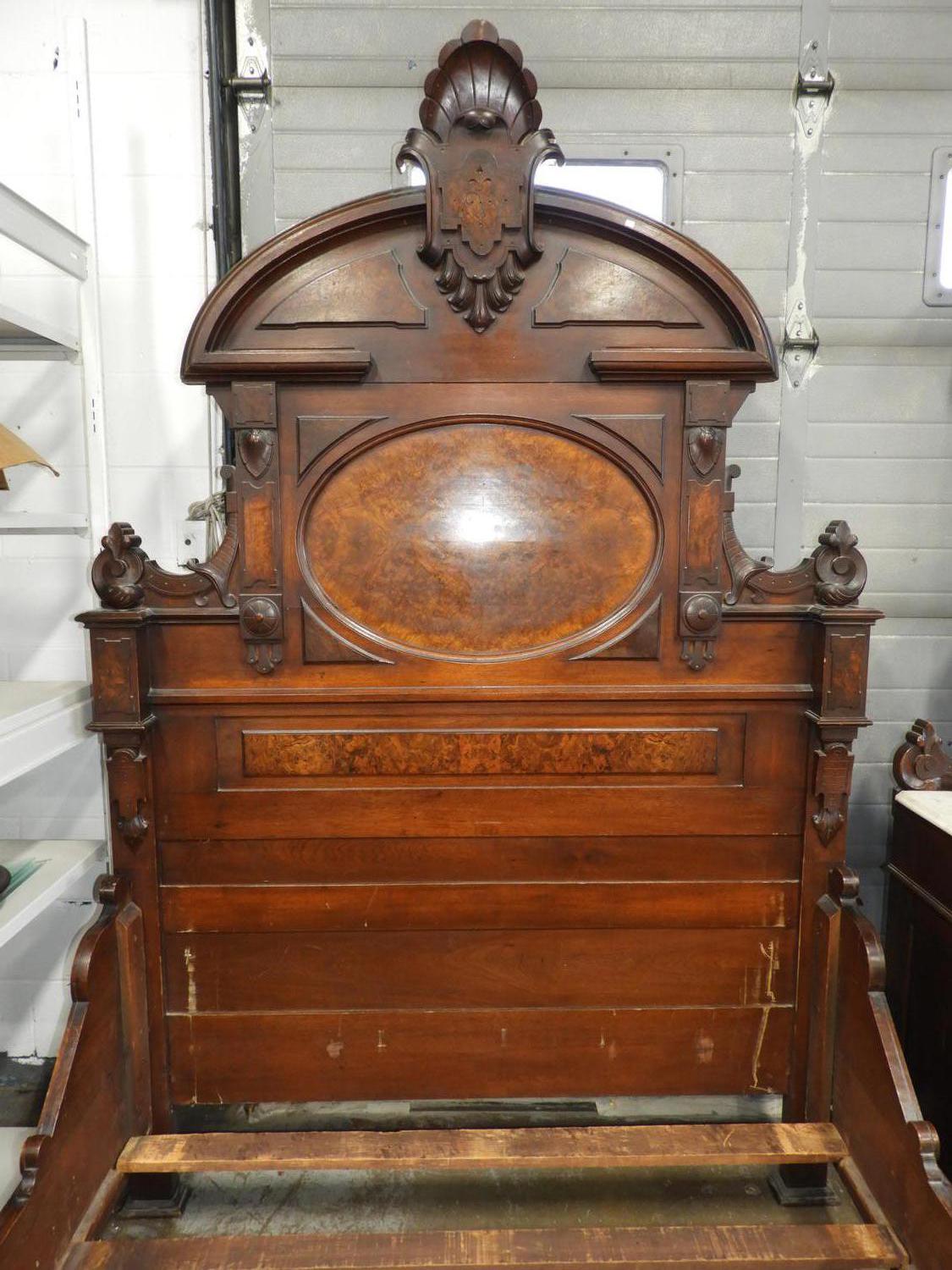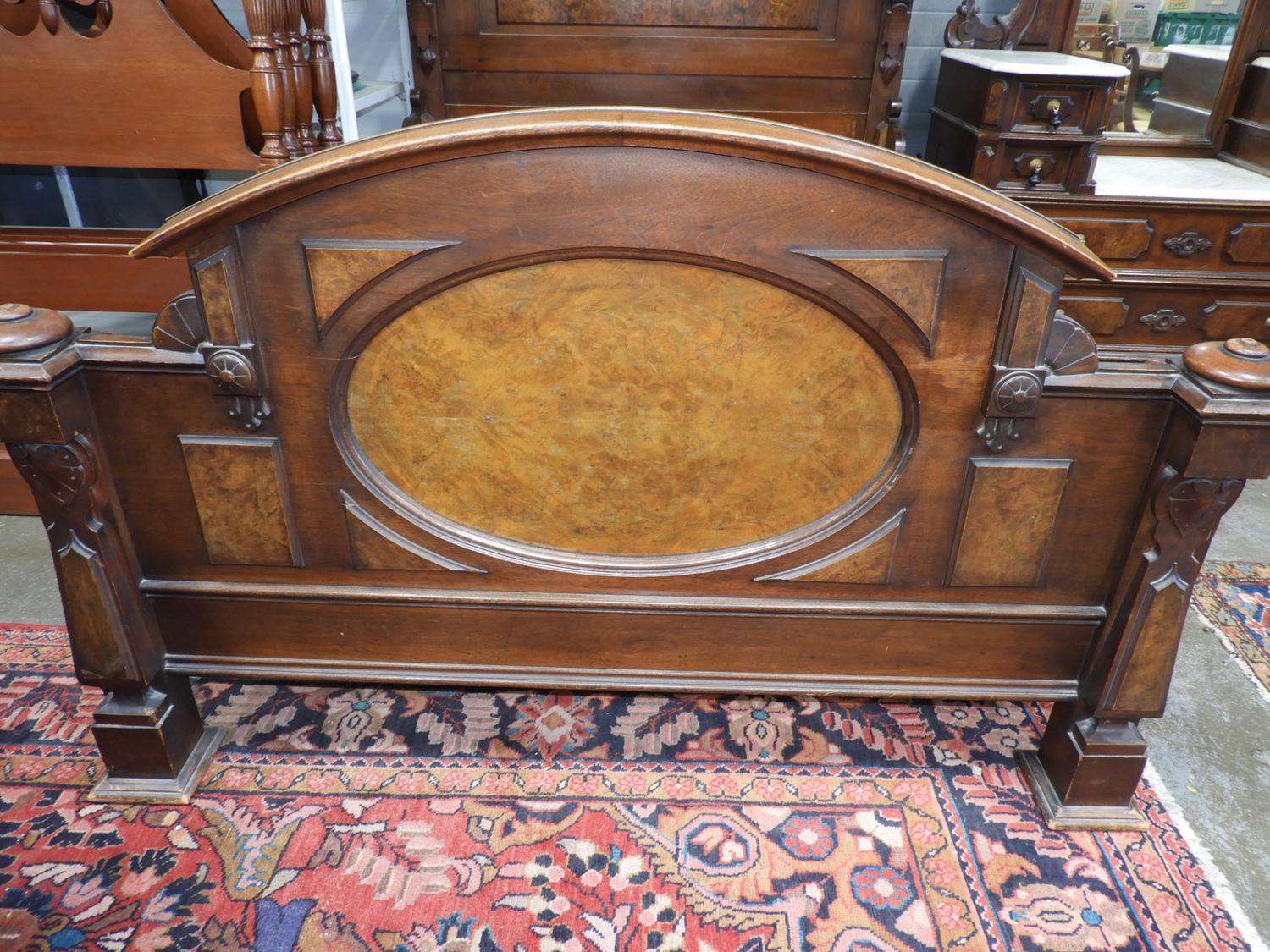 late 19th century walnut bedstead, 98" x 81" x 61"