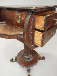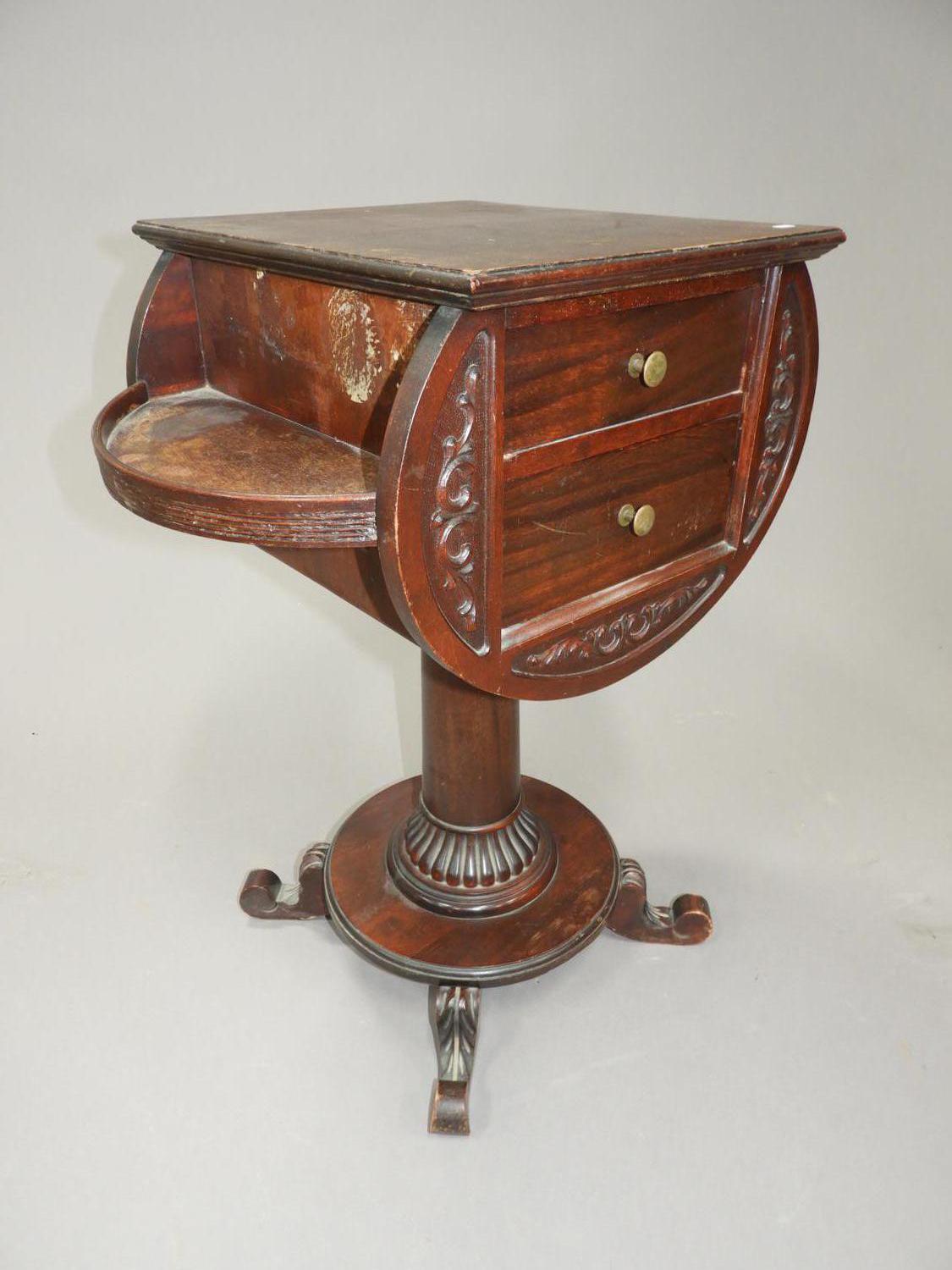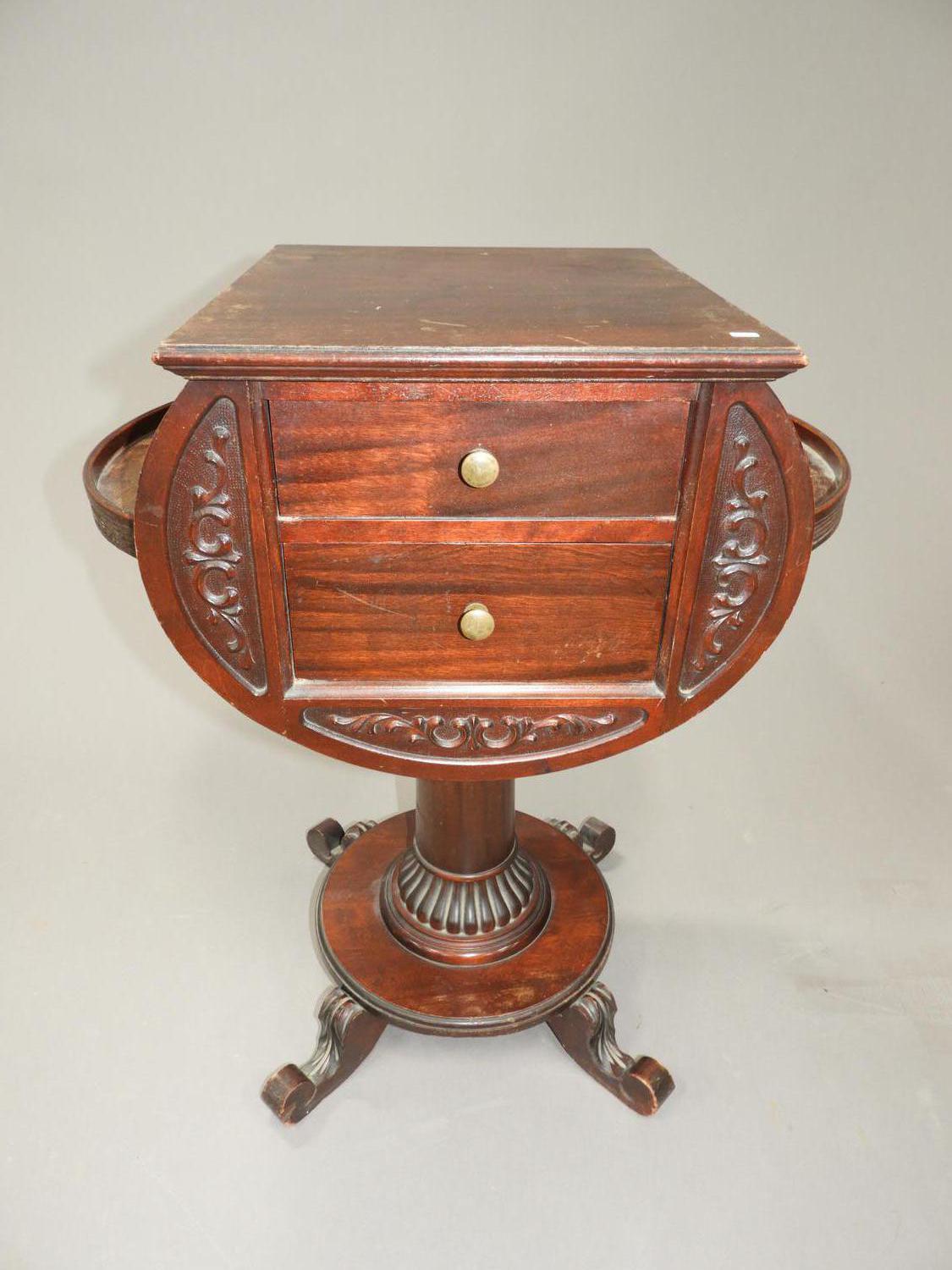 mahogany pedestal side table, 29" x 24" x 16 1/2"