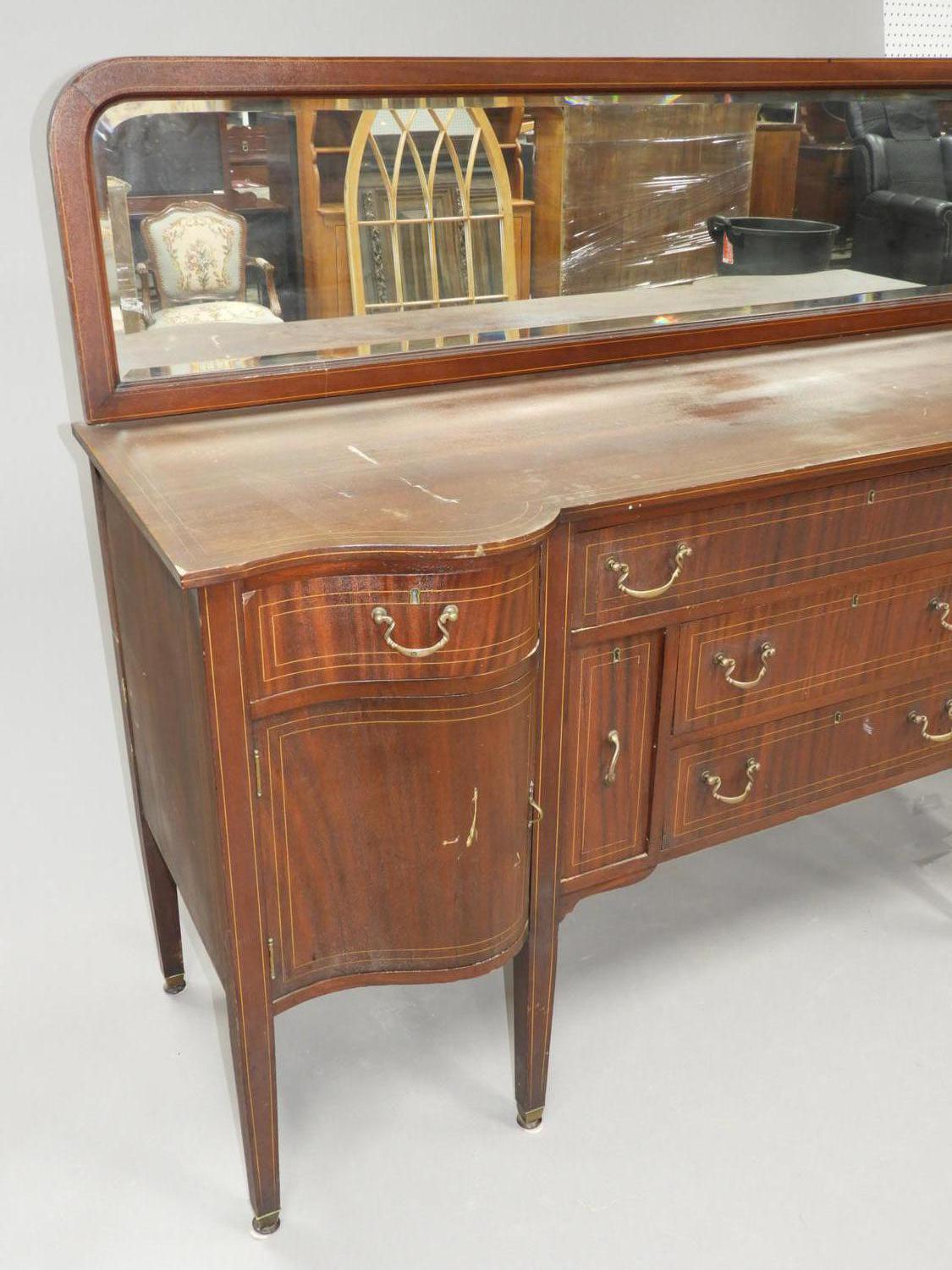 inlaid mahogany sideboard, 39" x 74" x 32"