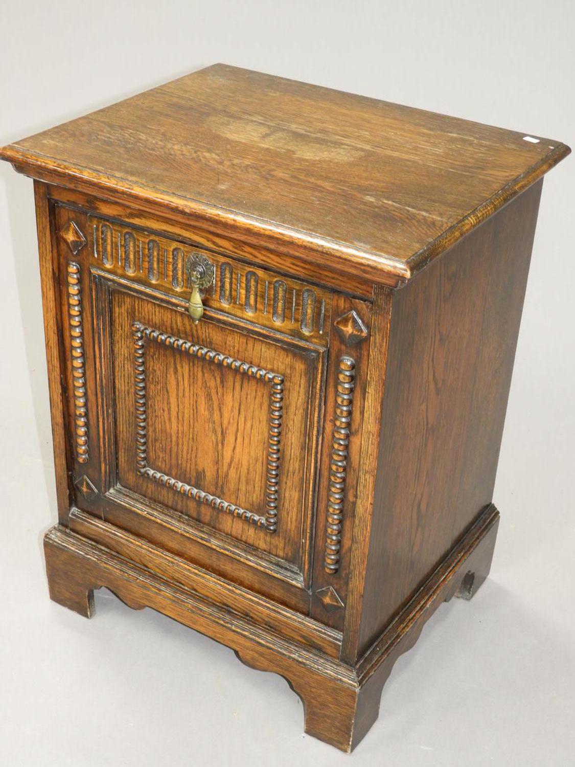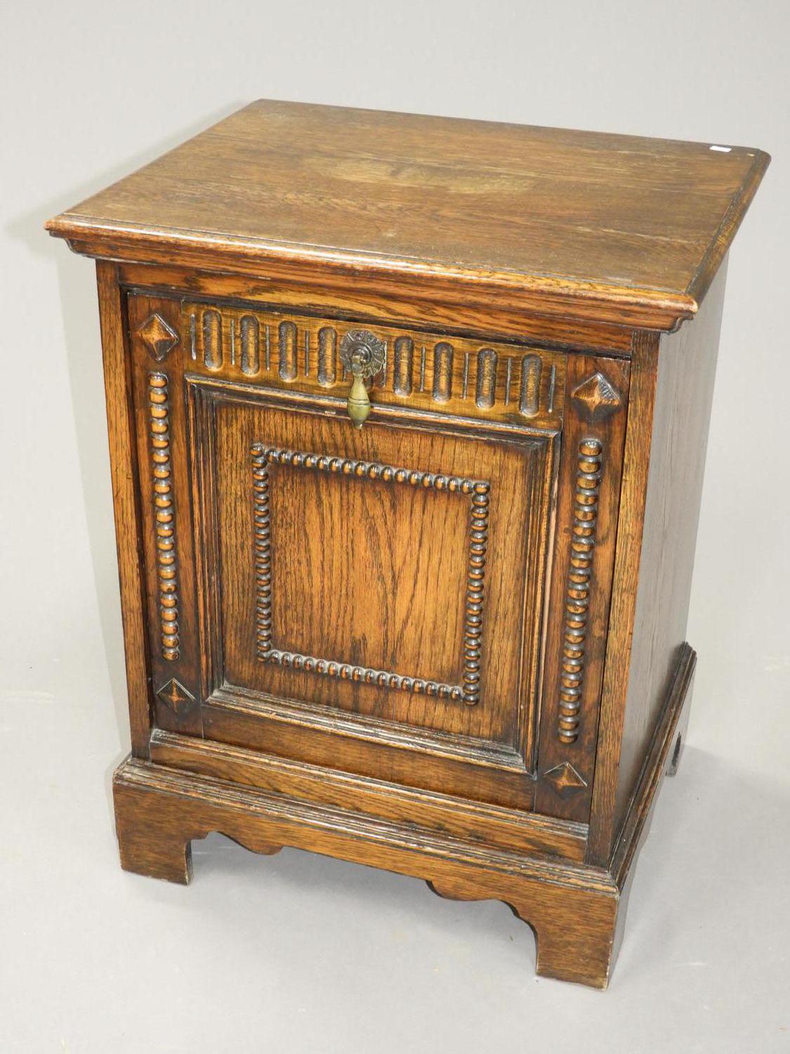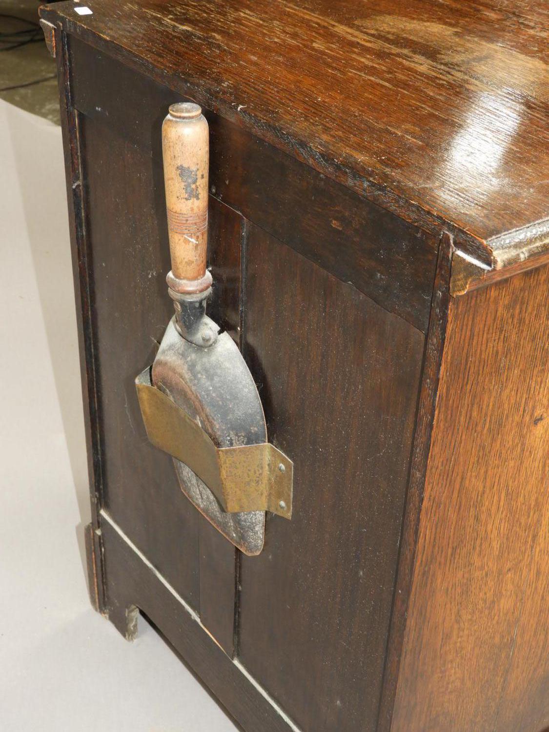 oak coal scuttle with hinged lid, 24" x 18" x 15'