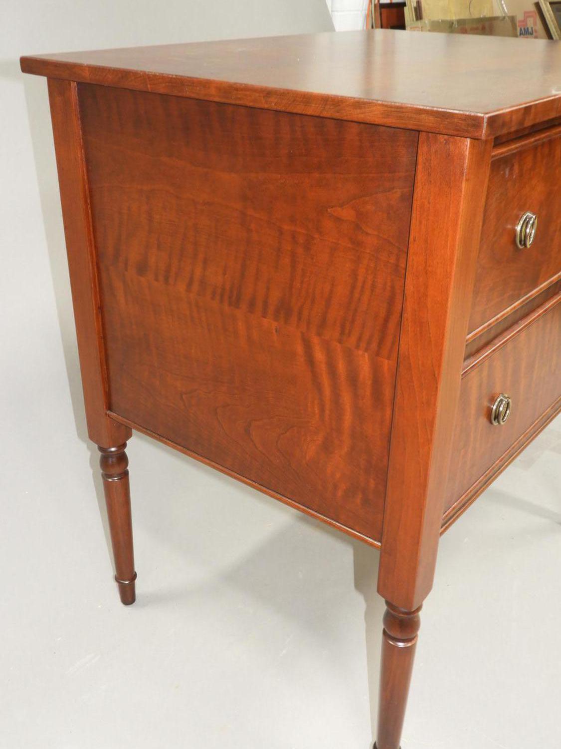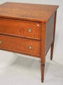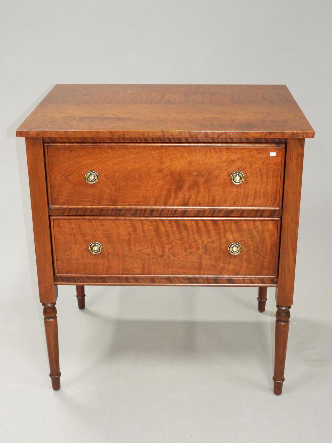 maple two drawer chest with turned legs, 31" x 33" x 22"