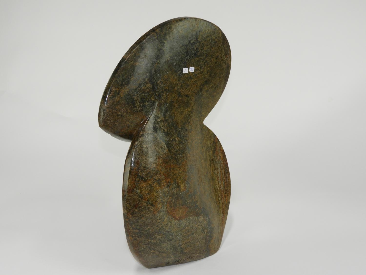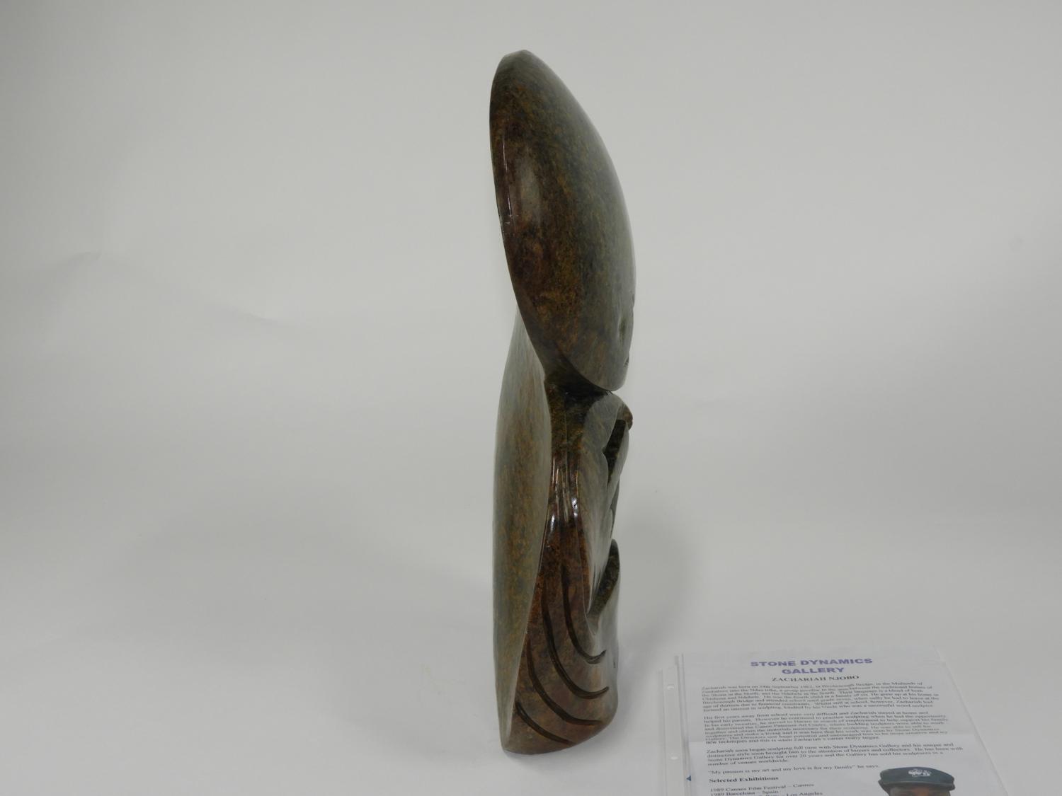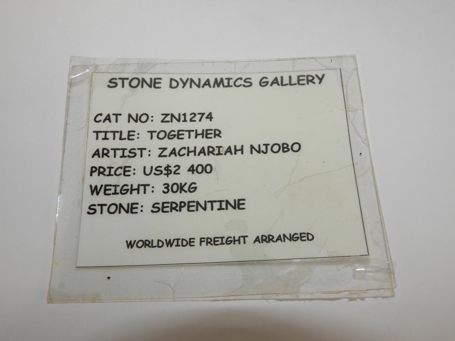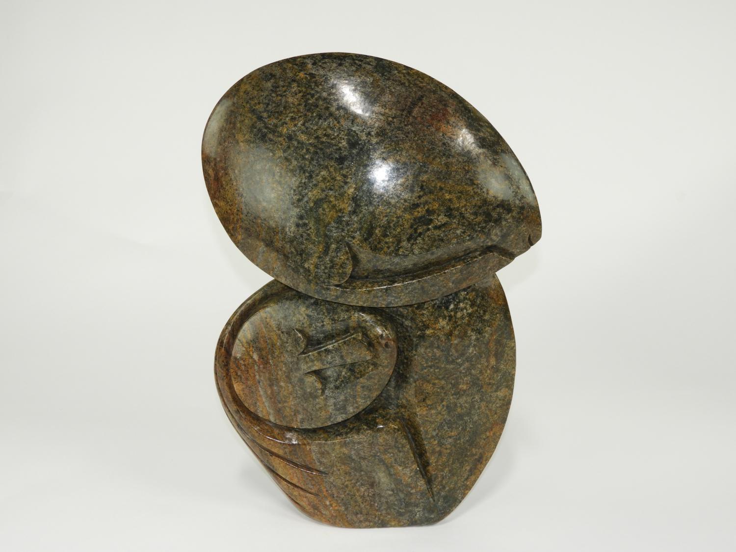 zachariah njobo (b.1962), carved sepentine marble, 20 1/2" x 14", "together"