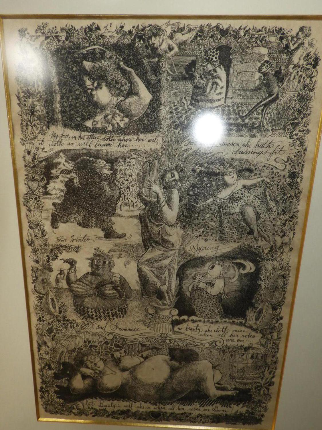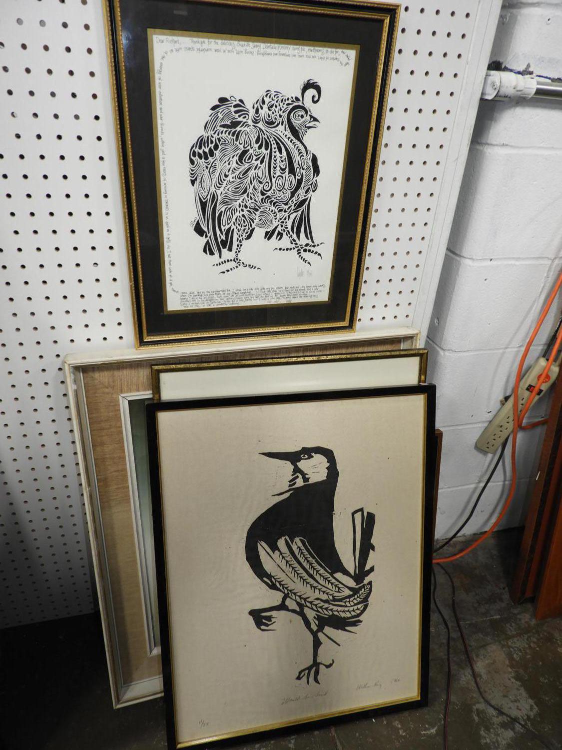 six framed prints and pictures