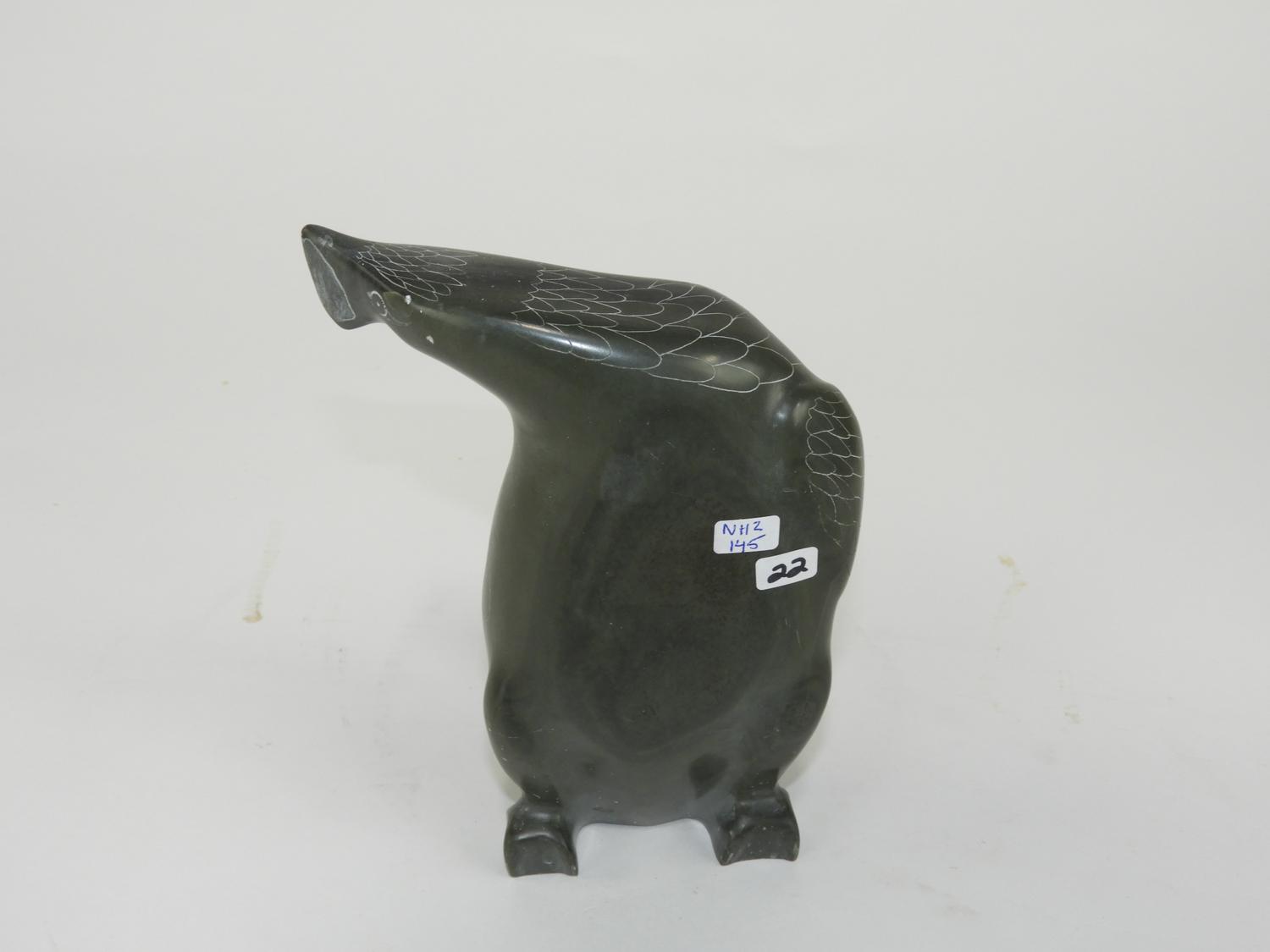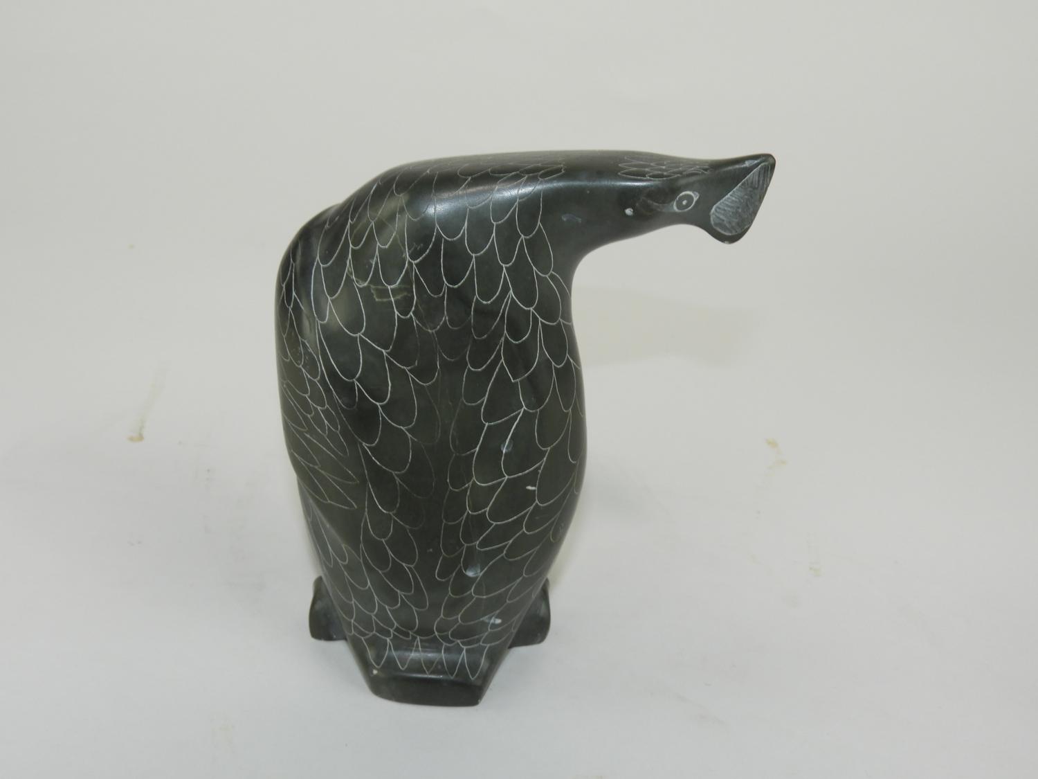 inuit stone carving signed and numbered e-985, ht. 7 1/2", "bird"