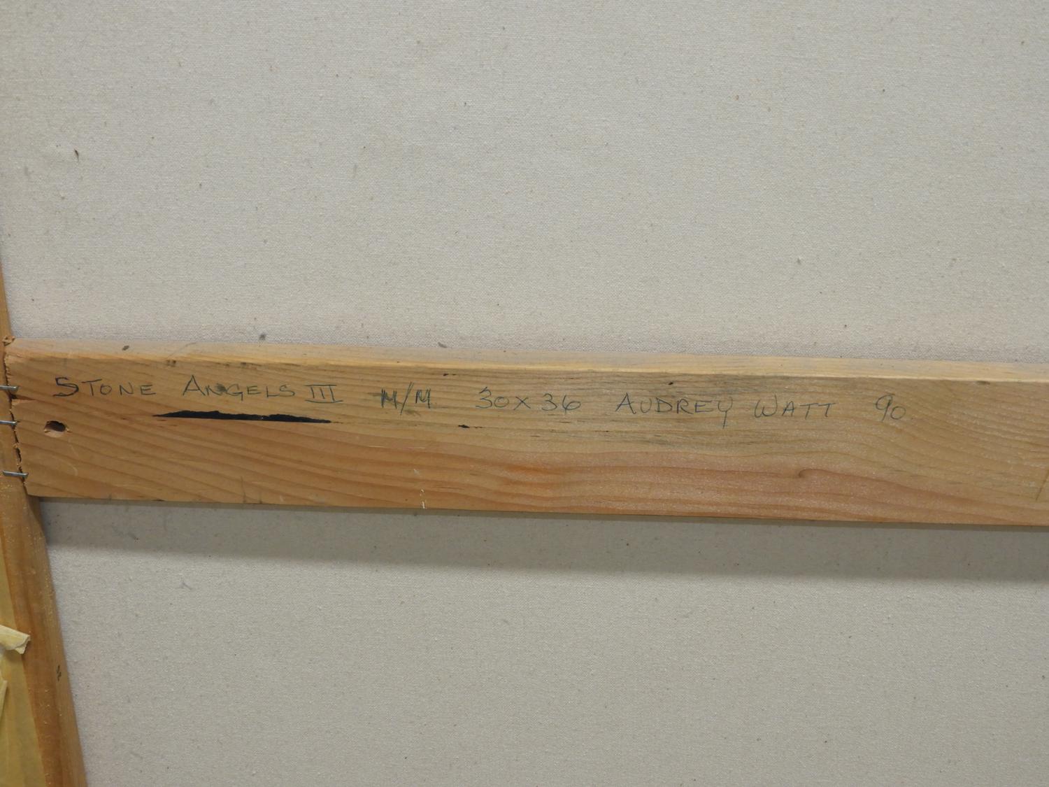 audrey watt mixed media on canvas, 36" x 30", "stone angels iii".
