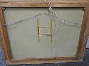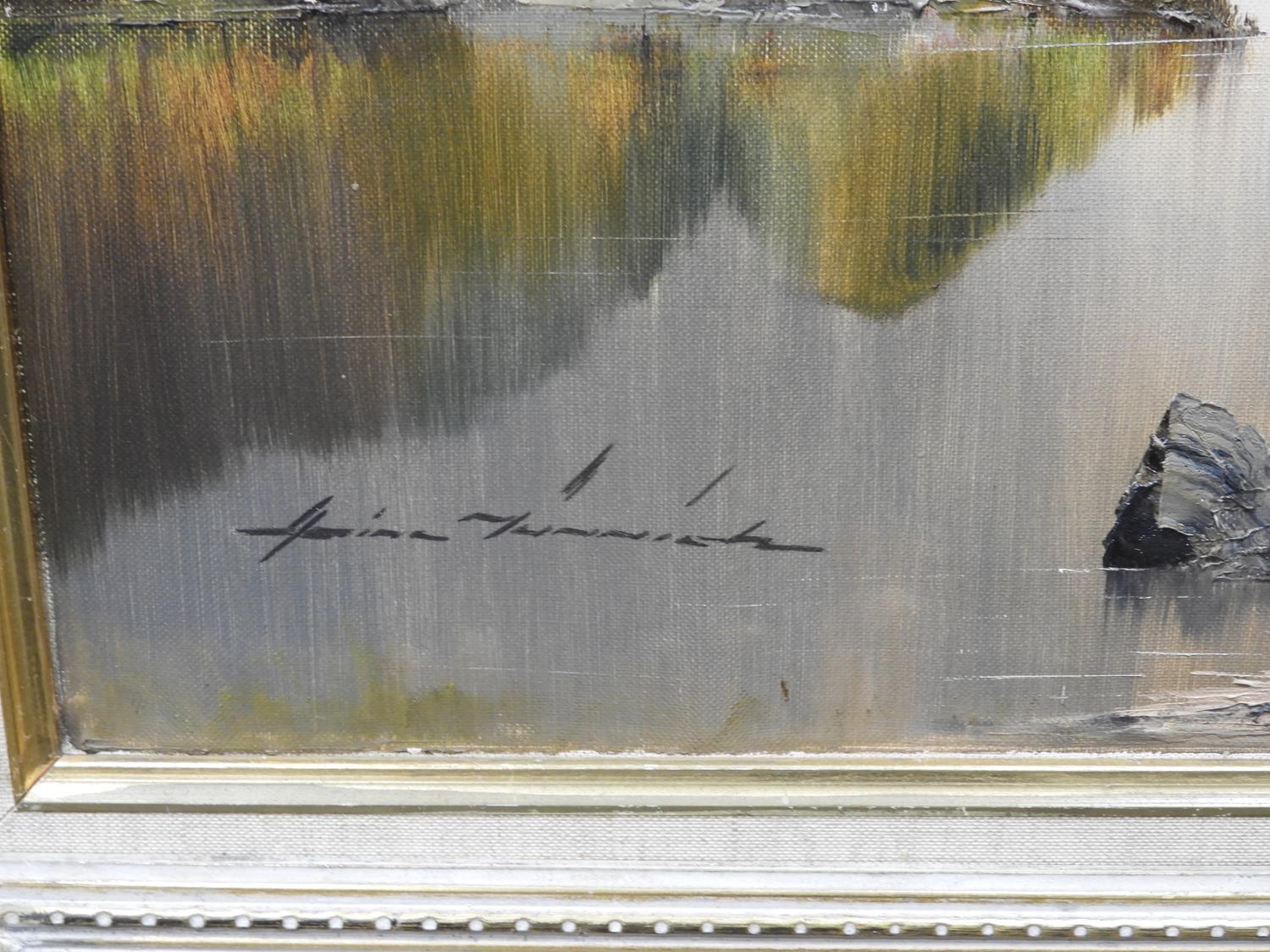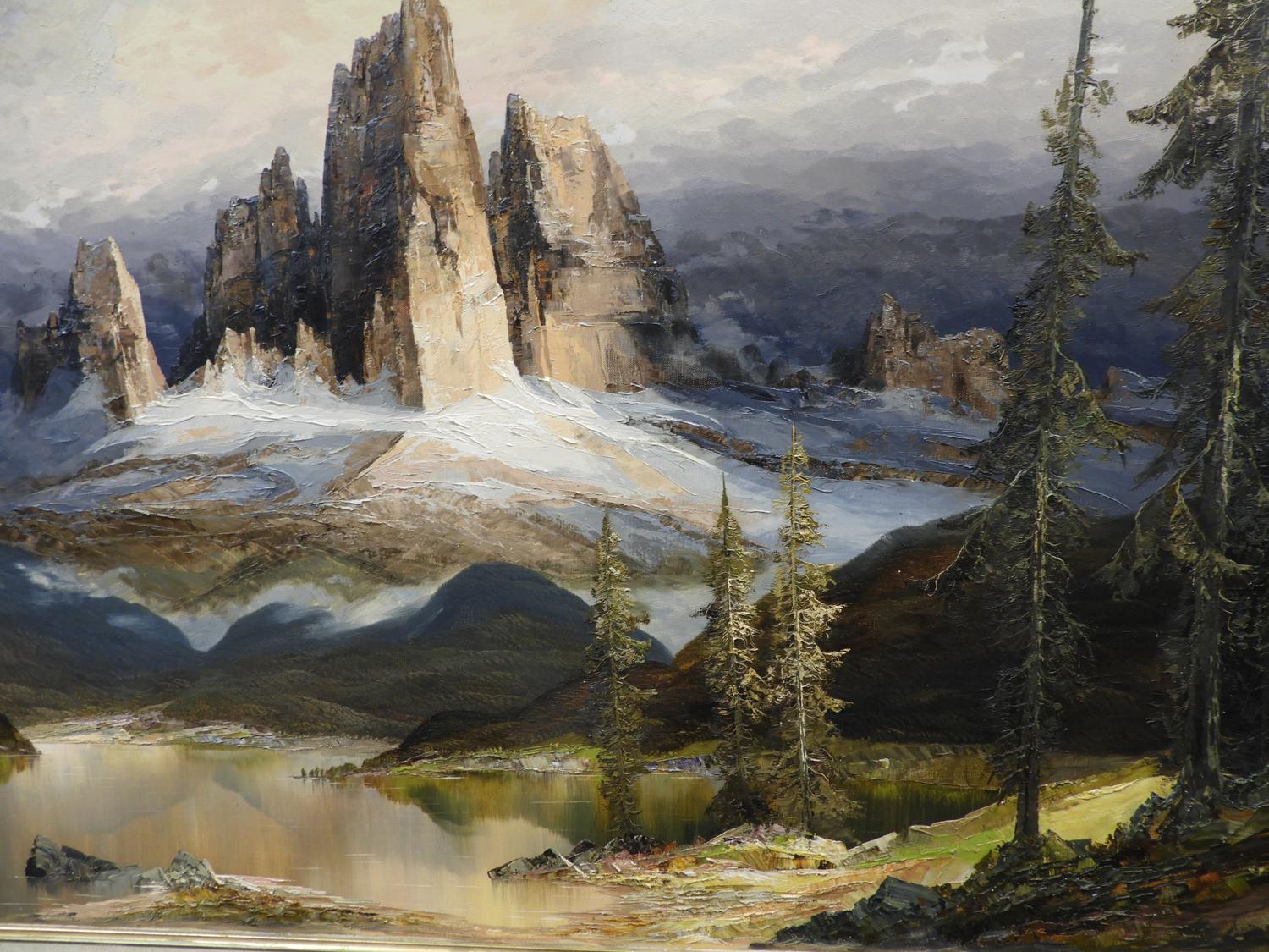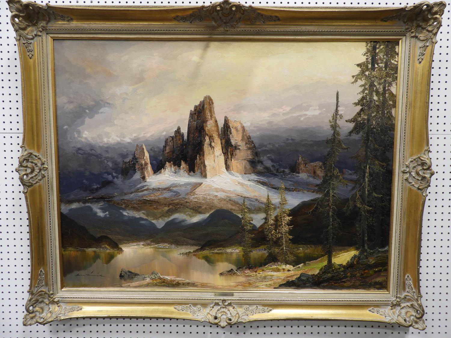 h. munnich, oil on canvas, 40" x 60", "mountain landscape".