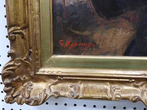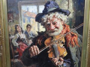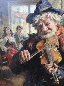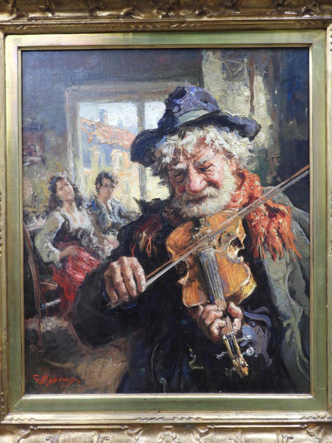 giovanni madonini (1915-1989), oil on canvas, 24" x 20", "old man with violin".