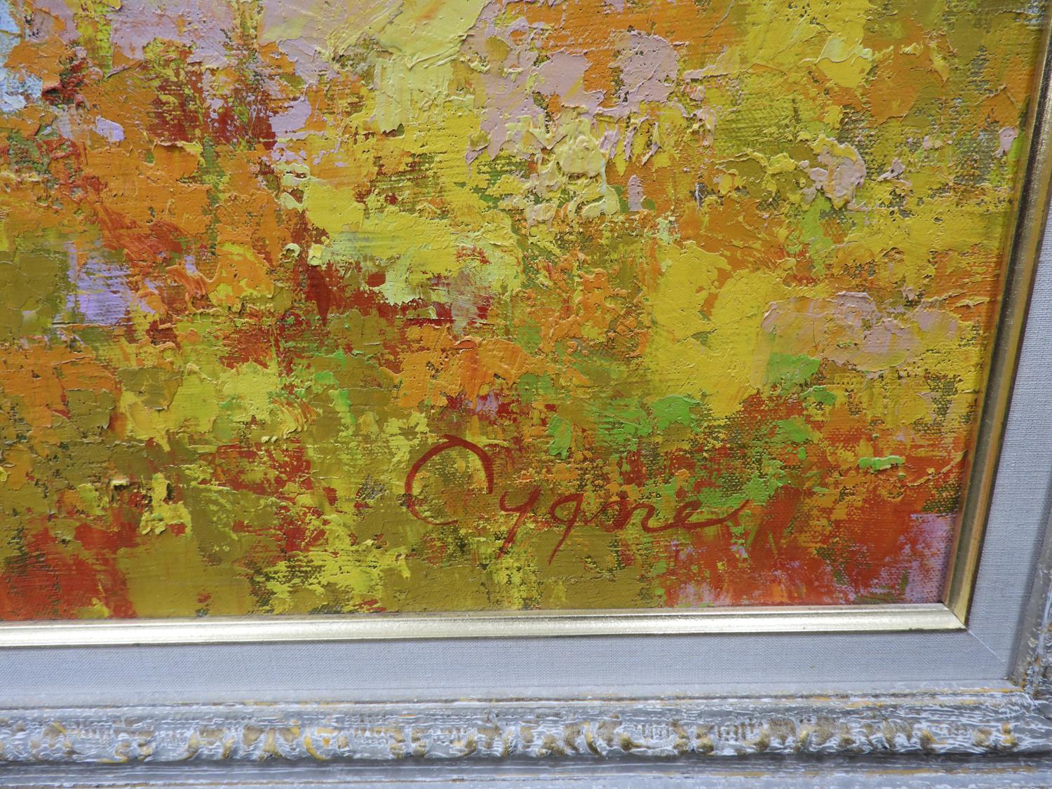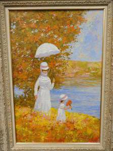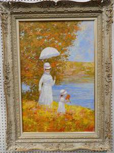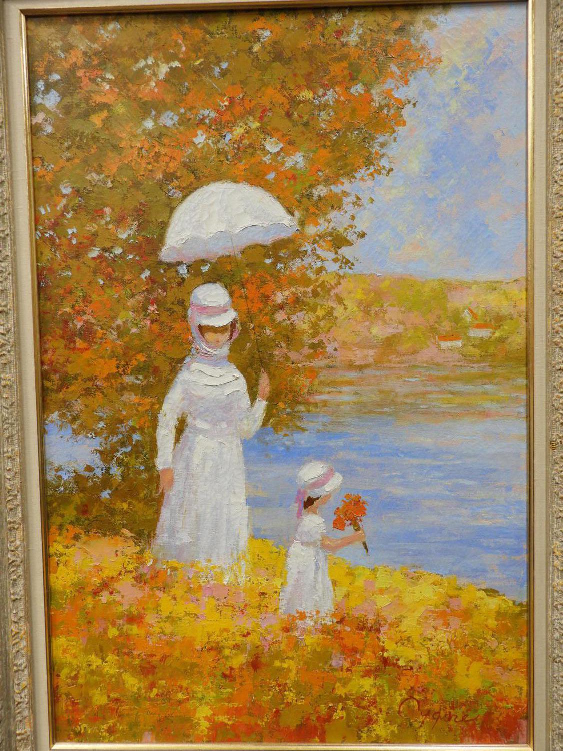 e.j. cygne (1929), oil on canvas, 36" x 24", "wowan with parisol and little girl".