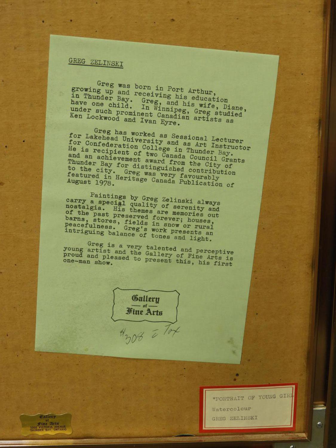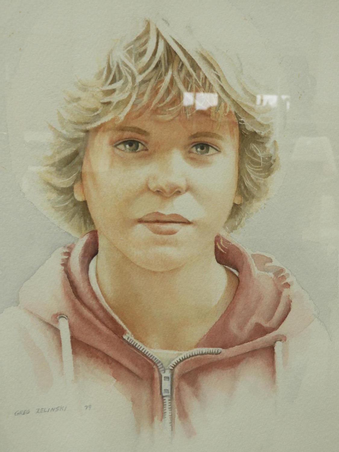 greg zelinsky (1950), d.1979, watercolour, 15" x 11", "portrait of a boy"