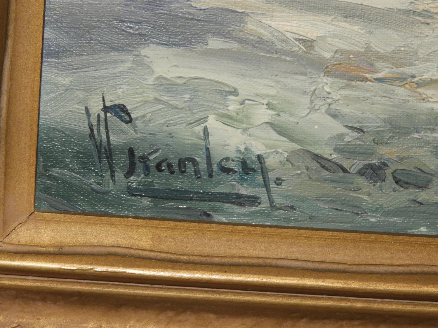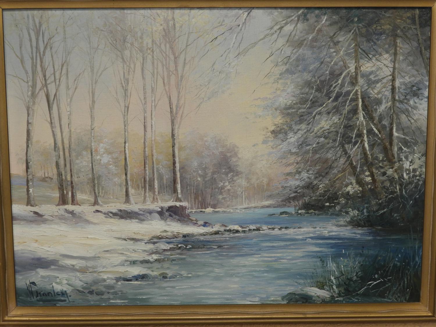 william stanley, oil on board, 16" x 22", "winter scene"