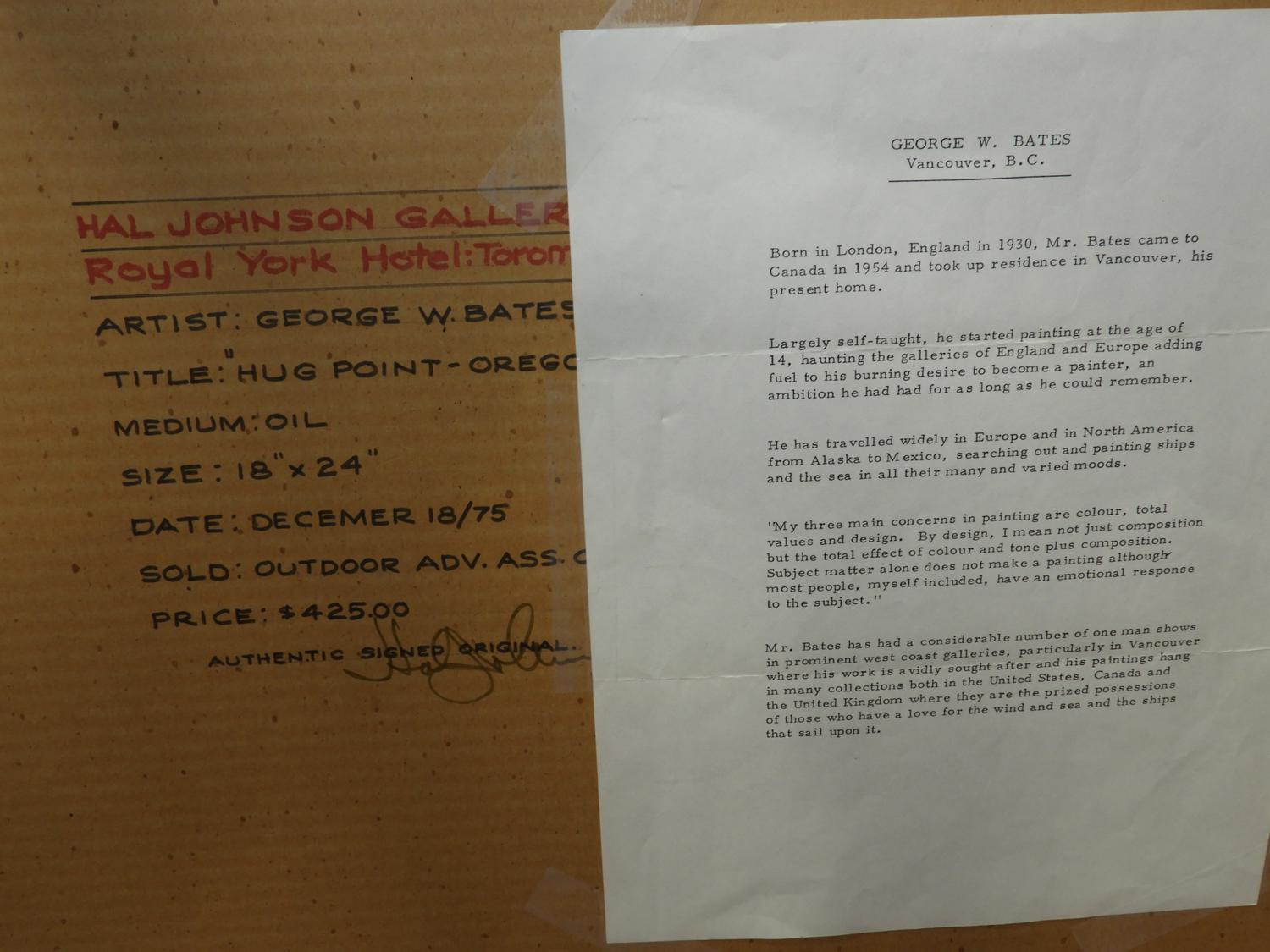 george william bates (1930), oil on board, 18" x 24", "jugo point, oregon"